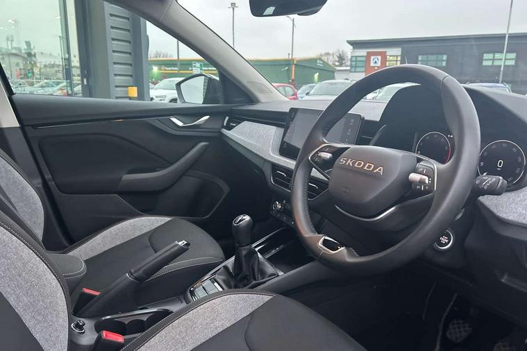Advanced driver attention and drowsiness monitor, Bluetooth, e-Call (emergency call), Front assist system, PAS, Rear parking sensors, Rear view camera, Speed limiter, Tailgate, Traffic sign recognition, Virtual Cockpit - 10.25" digital display, Voice control system, Wireless smartlink, 4 USB C ports, 8 Speakers, 9.2" Skoda navigation display, DAB radio, Auto dimming rear view mirror, Automatic headlamp activation with Coming home and Leaving home feature, Automatic high/low beam, Body colour bumpers, Body colour door mirrors and handles, Chrome moulding around grille, Front and rear electric windows, Full LED headlights, Heated rear window, LED 3rd brake light, LED brake lights, LED daytime running lights, LED front turning lights, LED high beam, LED low beam, LED taillights, Rear LED fog light, Rear side wing doors, Rear wiper, Tinted windows, Unique dark chrome design logo on alloy wheels, 12V socket in luggage compartment, 3 seat bench in 2nd row, Black / Grey armrest stitching, Black hotstamping, Cargo elements, Chrome inner door handles, Door inserts in satin black, Driver and passenger sun visors with vanity mirror, Dual zone climate control, Front and rear roof lights, Front centre armrest, Front head restraints, Glasses storage in roof liner, Height adjustable driver seat, Height adjustable passenger seat, Ice scraper, Illuminated glove compartment, Inner circulation control with pollen filter, ISOFIX for front passenger seat, Isofix preparation for back seats, Leather gearknob and handbrake lever, Loft cloth upholstery, Luggage net under rear parcel shelf, Manual lumbar support for front seats, Net package and top tether hooks in boot space, Pearl grey ceiling, Pocket on the back of both front seats, incl. mobile phone pockets, Single front passenger seat, Skoda lettering on steering wheel, Textile floor mats, Third rear headrest, Ticket holder, Top tether for front passenger seat, Umbrella in driver's door, 3x3 point rear seatbelts, ABS, Child locks, Curtain airbags and front side airbags, Disc brakes, Driver and front passenger airbags, ESP, Hill hold control, Manual leather parking brake, One tone horn, Passenger airbag switch off function, Seatbelt reminder for driver and front passenger, Tyre pressure monitoring system, Anti theft alarm system with interior monitoring, backup horn and towing protection, Anti-theft wheel bolts, Remote central locking with 2 remote folding keys, SAFE function for remote central locking, Decord pad, door inserts Kota uni,