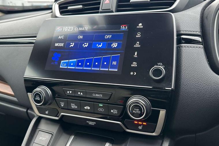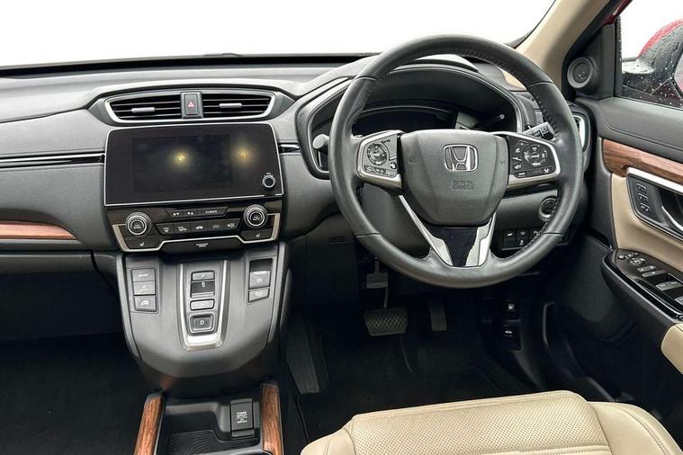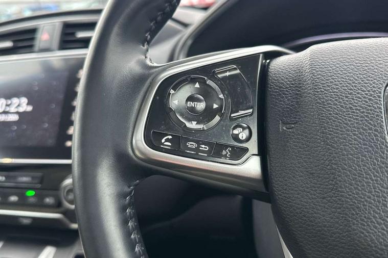 Adaptive cruise control, Agile handling assist, BLIS (Blind Spot Information System) with dual power heated blind spot mirrors, Bluetooth hands free telephone connection, Economy mode, Electric power steering, Emergency stop signalling system, Forward collision warning, Front and rear parking sensors, Hands free tailgate, Head up Display, Honda CONNECT with GARMIN Navigation + 7" touchscreen, DAB radio, Apple CarPlay, Android Auto, Aha app integration and internet browsing, Intelligent multi info display, Lane departure warning system, Lane keep assist system, Low speed following, Rear view camera, Road departure mitigation, Speed limiter, Traffic sign recognition, Vehicle stability assist, 2 USB sockets in rear, 2x USB sockets in front, 8 Speakers, DAB Digital radio, Steering wheel mounted controls, Subwoofer, Aspheric door mirrors, Auto dimming rear view mirror, Automatic headlights with dusk sensor, Body colour bumpers, Body colour door handles, Cornering light, Door mirrors tilt when reversing, Electric front windows/one touch facility, Electric rear windows + one touch facility, Electrically adjustable and heated door mirrors, Electrically retractable door mirrors, Front windscreen de-icer, High beam assist, LED daytime running lights, LED front fog lights, LED Headlights, LED rear lights, Panoramic opening glass sunroof, Rain sensor, Rear privacy glass, Rear wiper, Roof rails, Shark fin roof aerial, Welcome home function, 60/40 split folding rear seat, 8 way electrically adjustable drivers seat + mirror memory, Accessory sockets, Ambient interior lighting, Ambient light in roof, AWD emblem rear, Cargo hooks, Courtesy lights, Driver's electric adjustable lumbar support, Driver/passenger front seatback pockets, Driver/passenger sunvisors with illuminated vanity mirrors, Dual zone automatic climate control, Electric lumbar adjustment on passenger's seat, Footwell ambient lighting, Front centre armrest, Front map lights, Front passenger seat height adjust, Heated front seats, Heated rear seats, Heated steering wheel, Hybrid emblem, Illuminated glovebox, Instrument panel with garnish wood film, Isofix child seat preparation, Leather steering wheel, Leather upholstery, Paddle shift controls, Rear air vents, Rear centre armrest, Rear headrests, Rear reading lights, Silver interior door handles, Sunglasses holder with mirror, Tilt/telescopic adjustable steering wheel, Tonneau cover, Trunk light, 5 x 3 point seatbelts, ABS/EBD, Anti-whiplash front headrests, Brake assist function, Collision mitigation braking system, Deflation detection system, Driver airbag, Electronic parking brake with auto hold, Front and rear curtain airbags, Front side airbags, Hill start assist, Passenger airbag deactivate switch, Honda super locks, Immobiliser, Remote keyless entry, Security alarm, Ultrasonic sensor and tilt sensor, Tyre repair kit,