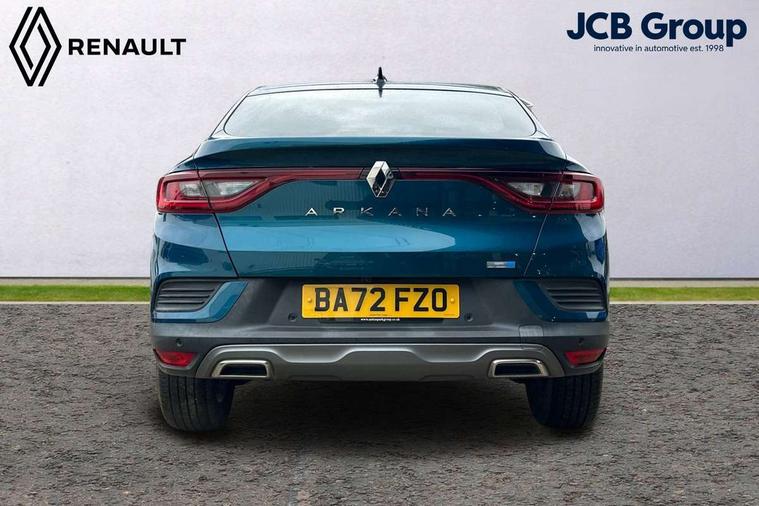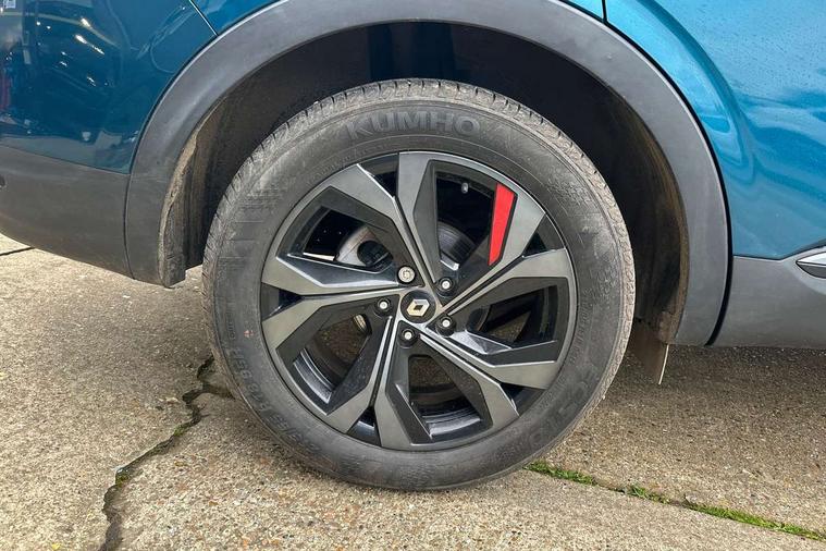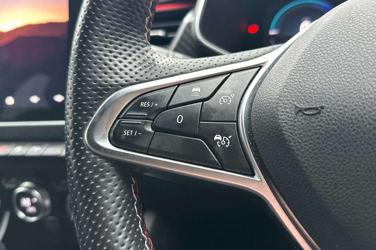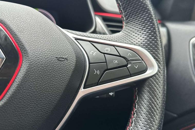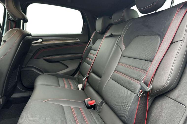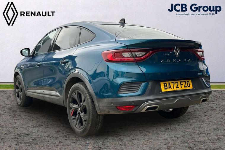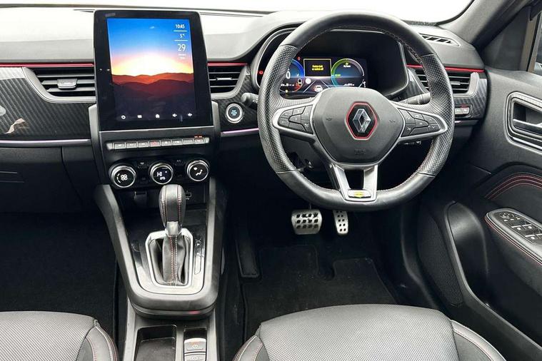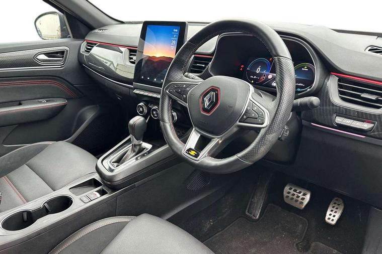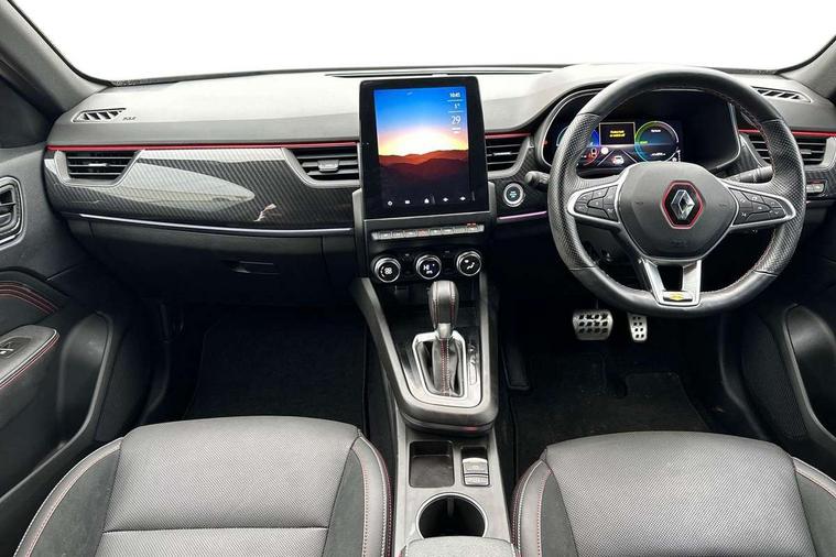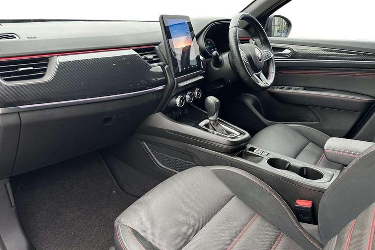 7" TFT Driver information display, Blind spot warning, Bluetooth system, EASY LINK 9.3" portrait touchscreen with navigation, Google search and traffic information, eCall emergency call system, Eco mode, EV button to activate pure mode, Front and rear parking sensors, Gear change indicator, Lane departure warning, Lane keep assist, Multi-sense - 3 driving modes and 8 ambient lighting, Rear cross traffic alert, Rear view camera, Renault automatic emergency assist, Smartphone integration compatible with Apple CarPlay and Android Auto, Traffic sign recognition with over speed prevention, Trip computer, Variable assistance electric power steering, Wireless phone charger, DAB radio, USB port, 3rd brake light, Auto dimming rear view mirror, Automatic headlights, Automatic high / low beam, Automatic windscreen wipers with rain sensor, Black side door protection with gun metal insert, Body coloured bumpers, C-shaped LED front signature lighting, Chrome decopart on wing (fender molding) with R.S. Line badge, Double chromed exhaust tailpipes elements, Extra tinted rear windows and tailgate, Frameless rear view mirror, Front and rear electric windows, Front bumper with F1 blade and honeycomb front grille, Front driver window with one touch facility and anti-pinch function, Front grille with chrome on upper part, Full LED headlights, Glossy black door mirror and lower window lining, Gun Metal front and rear skid plates, Heated rear window, R.S. Line badges on front wing and hatch door, Rain sensor, Rear windscreen wiper, Shiny black shark fin antenna, Side mirrors adjustable electrically, electrically foldable, with defrosting and temperature sensor, automatically foldable at vehicle closure, 3 seat bench in 2nd row, 60:40 split and fixed base rear seats, Aluminium pedals, Automatic climate control with combined filter, humidity sensor and AQS, Black interior roof lining, Carbon style dashboard, Central console with storage, Driver's seat height adjustment, Electrically adjustable front seats, Front and rear head restraints, Height and reach adjustable steering wheel, ISOFIX child seat fixing points on rear outermost seats, LED front and rear roof lights, Passenger seat height adjuster, R.S. line black suede-leather upholstery with red/grey stiching, R.S. Line perforated leather steering wheel with red/black harmony and R.S. Line badge, Rear air vents, Red inserts on air vents, Single front passenger seat, Parking Pack - Hands-free parking & flank protection - Arkana, Winter pack - Arkana, 3x3 point rear seat belts, ABS+EBA, Active emergency braking system, B Brake Mode - One pedal driving with increased regenerative braking, Distance warning alert, Driver airbag, Driver and passenger front and side airbag deactivation, Driver and passenger side airbags, Driver height adjustable seat belt, Electronic parking brake with auto hold, ESC (Electronic Stability Control), Front and rear no seatbelt warning sound, Front curtain airbags, Front head airbags, Hill start assist, Passenger airbag, Tyre pressure warning light, Anti drill door locks and locking fuel cap, Central door locking, Deadlocking system, Hands free keycard with Keyless access and start, RAID (Renault Anti-Intruder Device) automatic door locking, Rear side wing door and window child locking function (front driver door control panel), Superlocking, Thatcham alarm, 18" Silverstone diamond alloy wheels with red inserts,
