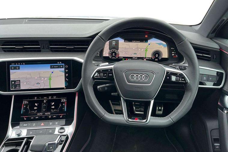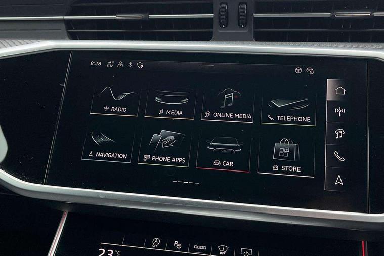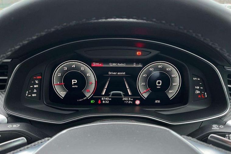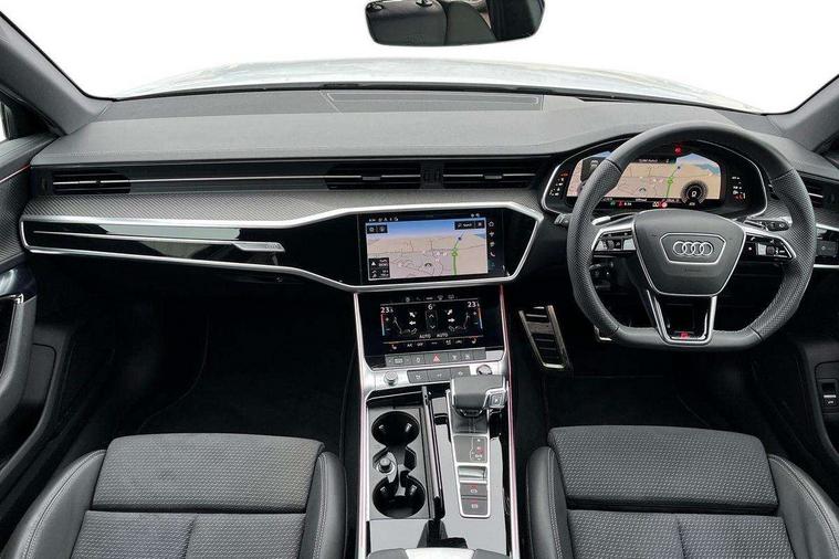 Audi connect safety and service (e-call), Audi connect with Amazon Alexa Integration, Audi drive select, Audi parking system plus - acoustic and visual park assist system for front and rear, Audi virtual cockpit, Automatic start/stop system with coasting functionality, Bluetooth interface, Camera based traffic sign recognition, Lane departure warning system, MMI navigation plus with 10.1" and 8.6" touch screens, Power operated tailgate, Progressive steering, Rear view camera, Service interval indicator, Smartphone interface includes wireless Apple carplay/Android Auto, Voice control system, Sports suspension, Audi front music interface, Audi sound system, Auxiliary input socket, DAB Digital radio, USB connection, Audi beam, Black roof rails, Body colour rear roof spoiler, Electric front/rear windows, Electrically adjustable heated and folding + automatically dimming exterior mirrors with memory function, Frameless auto dimming interior rear view mirror, Front intermittent wipers, Heat insulating darkened glass in side and rear windows, Heat insulating glass in windshield, LED rear lights with dynamic indicators, LED signature front daytime running light, LED third brake light, Matrix LED headlights, Matt black rear diffuser with diffuser strip and tailpipes in chrome, Matt black side air intake grille with inlay in matt aluminium, Omission of output/technology badging, Privacy glass, Radiator grille in anthracite black matt, single frame in chrome and horizontal struts in matt aluminium silver, Rain and light sensors, Rear side wing doors, Rear wiper, 2 zone deluxe electronic climate control, 40/20/40 split folding 3 rear seat bench in 3 parts with rear centre armrest, Audi phone box light, Black cloth headlining, Electrically adjustable front seats including seat height, fore/aft position, backrest angle and 4-way lumbar with memory for driver's seat, Front and rear floor mats, Front centre armrest, Front head restraints, Heated front seats, Height/reach adjust steering wheel, Illuminated door sill trims with S logo, Illuminated sun visors with vanity mirrors, Leather gear knob, Luggage compartment system, Rear headrests, Single front passenger seat, Stainless steel pedals and foot rest, Tool kit and car jack, Black styling package plus - A6 Black edition, LED Interior Ambient Lighting Pack - A6, Non smoking pack - A6, S line exterior style pack - A6, 3 point seatbelts on all seats, Airbags - Front side, front and rear including head, Audi pre-sense front, EBD - Electronic brakeforce distribution, Electromechanical parking brake, Electronic Stability Control (ESC) including ABS, ASR and EDL, Extended pedestrian protection measures, ISOFIX child seat mounting for front passenger seat and ISOFIX child seat mounting with Top Tether for outer rear seats, Manual child proof rear door locks, Seatbelt monitoring, Tyre pressure warning light, Warning triangle and first aid kit, Anti theft alarm with tow away protection, Anti-theft wheel bolts and wheel loosening detection, Immobiliser, Keyless Go, Remote central locking, Carbon twill inlays, 20" 10 spoke star black metallic audi sport alloy wheels in gloss turned finish,