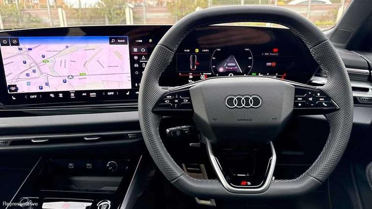 Audi application store, Audi assistant, Audi connect emergency call and service, Audi connect with Amazon Alexa Integration, Audi digital key, Audi drive select, Audi phone box with wireless charging, Audi virtual cockpit, Automatic start/stop system with coasting functionality, Bluetooth interface, Luggage compartment lid with Electric opening / closing, MMI navigation plus with high resolution 14.5" OLED touchscreen colour display, Power assisted steering, Service interval indicator, Smartphone interface includes wireless Apple carplay/Android Auto, Voice control system, Quattro with ultra technology, Sports suspension, Audi sound system impressive sound with 10 loudspeakers including centre speaker and subwoofer, 6-channel amplifier with a total output of 180 watts, DAB Digital radio, USB ports with charging function, Aluminium roof rails, Audi Matrix LED technology, Auto dimming rear view mirror, Automatic-dynamic headlight range control, Body colour door mirrors, Body coloured door handles, Dipped beam, main beam, position light, dynamic indicator and cornering light, Door mirrors - electrically adjustable, heated, folding and auto dimming on both sides, Dynamic light scenarios of the coming home/leaving home function when stationary, Electric front/rear windows, Frameless auto dimming interior rear view mirror, Front illuminated aluminium inlay door sill trims with S logo, Headlight cleaning system, LED headlights Plus incl. digital daytime running lights, turning light, all-weather light, motorway light, manouevring light and intersection light, LED rear lights pro incl. brake lights, tail lights, rear number plate lights, reversing lights, continuous light strip, LED third brake light, Privacy glass, Rain and light sensors, Rear and side windows with heat insulating glass, Rear side wing doors, Rear wiper, Roof spoiler, S line exterior styling, Sport exterior inc Radiator grille, air inlets and diffuser in scandium grey as well as inlay in diffuser in selenite silver, White rhombus logo projection light in exterior mirrors, Window trim strips in aluminium look, Windscreen with heat insulating and acoustic glazing, 3 seat bench in 2nd row, 3-spoke Sport leather steering wheel flat top and bottom with multifunction and shift paddles, 4 way electric lumbar support for driver and front passenger, 4 zone deluxe automatic climate control, 40:20:40 split folding rear seat bench with centre armrest and cup holders, Centre armrest, front- adjustable angle with four settings, Electrically adjustable front seats, Front head restraints, Heated front seats, i-Size child seat mounting on the front passenger side and outer rear seats, i-Size and top tether on the outer rear seats, Manual steering wheel adjustment, Net partition, Rear headrests, Single front passenger seat, Sport front seats, Stainless steel pedals and footrest, Steering wheel trim in chrome look, S emblem, steering wheel grips in perforated leather and contrasting stitching, Twin leather/artificial leather upholstery, Ambient lighting package plus - A6, Drive and Park assistance package - A6, Protective warning assistance package - A6, 3x3 point rear seat belts, Acoustic vehicle alerting system, Black seat belts, Convenience key with safelock, Driver and front passenger airbags, EBD - Electronic brakeforce distribution, Electric rear child safety lock, Electromechanical parking brake, Electronic Stability Control (ESC) including ABS, ASR and EDL, First aid kit with warning triangle and vests, Front passenger airbag deactivation, Seatbelt monitoring, Side airbags front with head airbag system and interaction airbag, Standard 18"steel disc brakes front and rear, Tyre pressure monitoring system, Anti theft alarm, Anti-theft wheel bolts, Immobiliser, Keyless Go, Remote central locking, Accents in the interior in aluminium look, Inlays in matt brushed aluminium with linear embossing, anthracite, Upper and lower interior elements in leatherette with contrasting stiching, Wraparound interior elements in artificial leather, Tyre repair kit,