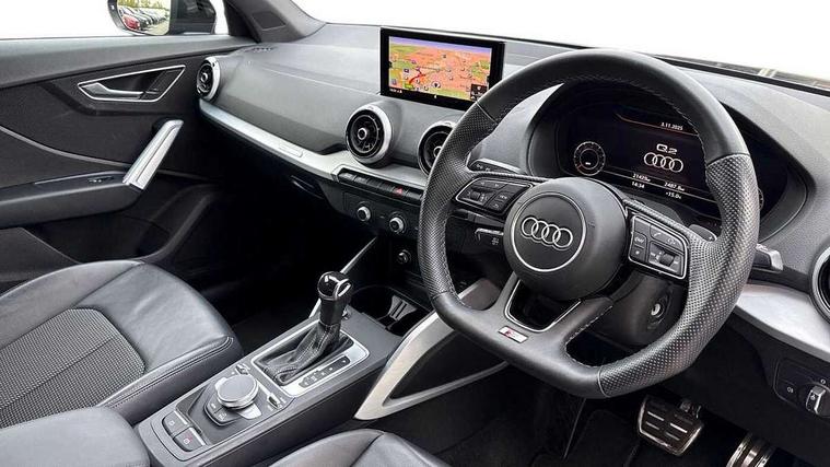 Audi connect navigation and infotainment includes innovative services, Audi connect remote and control connects your vehicle to your smartphone, Audi drive select - Power steering assistance + engine + gearshift, Audi drive select with efficiency, Audi smartphone interface, Audi virtual cockpit, Automatic start/stop system with recuperation, Bluetooth interface includes bluetooth audio streaming, Cruise control, E-call, MMI navigation plus with MMI touch, Power operated tailgate, Progressive steering, Rear parking sensors, 2 x SDXC card reader, 6 passive loudspeakers, DAB Digital radio, DVD Drive, Auto dimming rear view mirror, Black window trims, Bumper in full body colour paint finish, Electrically adjustable, folding, auto dimming and heated door mirrors with integrated LED side indicators, Front windscreen with grey tinted sunband, LED daytime running lights, LED headlights with LED rear lights, LED third brake light, Privacy glass - dark tinted rear and rear side windows from B-pillar backwards, Rear side wing doors, Rear wiper, Variable front intermittent wipers, Wheel arch trims in manhattan grey, 12v socket in front, 3 seat bench in 2nd row, 3 spoke flat bottomed multi-function leather sport steering wheel with gear shift paddles, 4-way electric lumbar support for front seats including seat height adjustment for both front seat, 60/40 split folding rear seat bench, Black cloth headlining, Front and rear head restraints, Front centre armrest, Front/rear floor mats, Height/reach adjust steering wheel, Illuminated door sill trims with S logo, ISOFIX child seat mounting in front passenger and rear outer seats, Single front passenger seat, Stainless steel pedals, Black styling pack - Q2, 3x3 point rear seatbelts, 6 airbags - Front, curtain and front side airbags, Electromechanical parking brake, Electronic stabilisation control including ABS, ASR and EDL, Front passenger airbag deactivation, Hill hold assist, Pre-sense front with pedestrian recognition, Seatbelt monitoring, Tyre pressure warning light, Warning triangle and first aid kit, Anti theft alarm, Anti theft wheel bolts, Electronically operated child locks, Remote central door locking, Aluminium interior element, Matt brushed aluminium trim inlays, Tool kit,