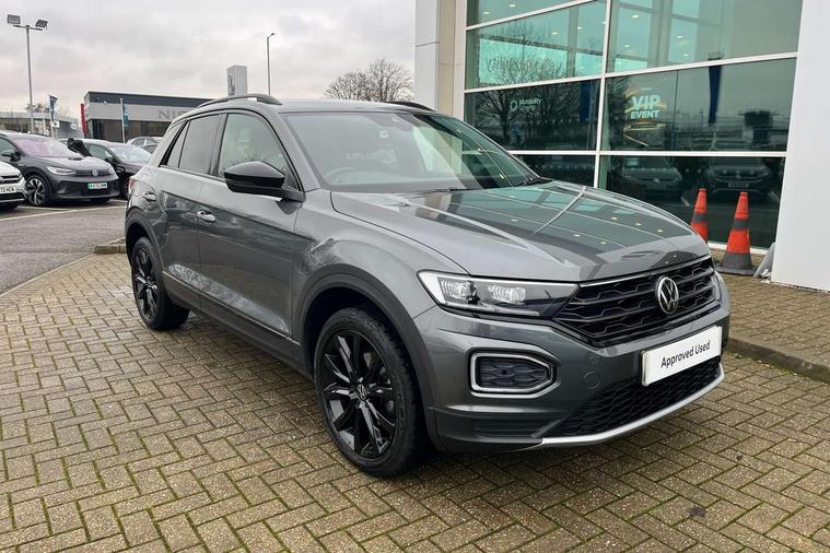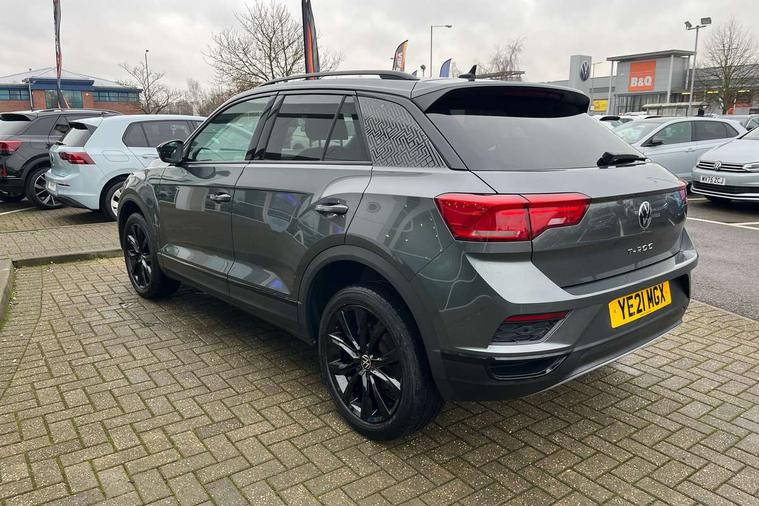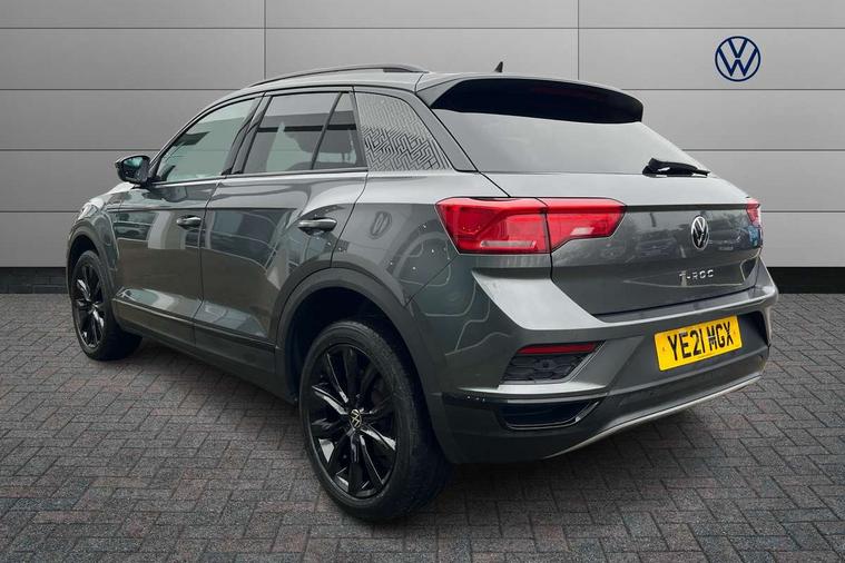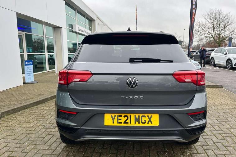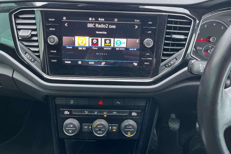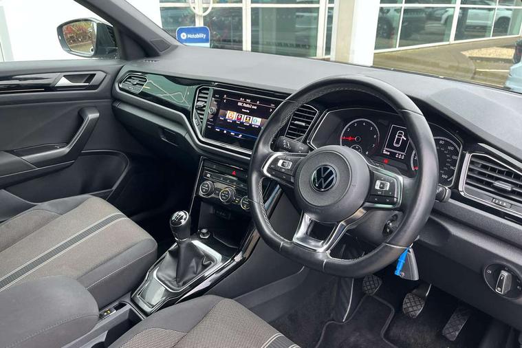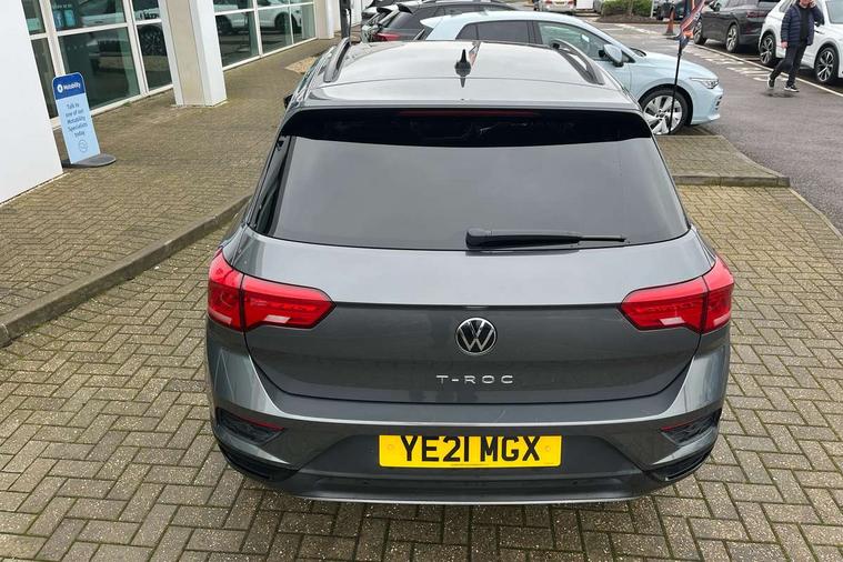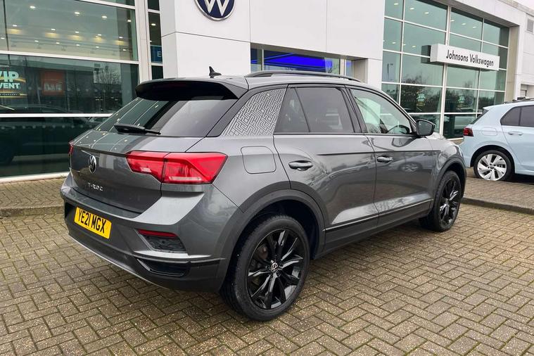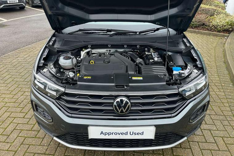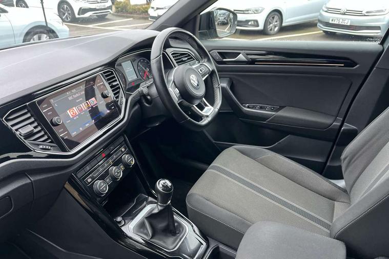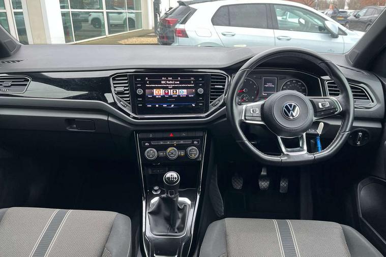 'Lights On' Reminder warning buzzer, Adaptive cruise control, Bluetooth telephone and audio connection for compatible devices, Car information display, Driver tips and journey analysis, Dusk sensor, Emergency call service, Lane assist with warning text instrument cluster, Modified key software - reduce switch off time for key status change to Long no motion, Multifunction camera, Multifunction computer with visual gear change recommendation for fuel consumption, Service interval indicator, Think blue trainer driver tips and journey analysis, Warning sound and light for doors and tailgate open, Warning sound and light for front seatbelts unfastened, Wireless app connect for apple carPlay, Battery regeneration during braking, Start/stop function with battery regeneration, DAB Digital radio, Diversity antenna for FM reception, Multi device interface (MDI) with USB connection, Music playback - MP3, WMA and AAC files, Premium USB cable in choice of either Apple or Android smartphone compatibility, SD card slot, Simultaneous pairing of 2 compatible mobile devices, Single CD player, glovebox mounted, SMS functionality - read, compose and send SMS messages using touch-screen display, Storage compartment with longitudinal and height adjustable in armrest and two rear air vents, Title and cover art display, USB-C Interface and USB charging socket, Auto dimming interior rear view mirror, Automatic coming/leaving home lighting function and daytime running lights, Automatic hazard lights activation under emergency braking, Black grained lower door protectors, Black grained wheel arches, Black roof rails, Body colour door handles, Body colour sports bumpers with silver metallic underbody fascia, Body coloured bumpers and radiator grille with chrome trim and front fog lamps with chrome bezel, Chrome trim on upper and lower radiator grille, Electrically foldable, adjustable and heated door mirrors with puddle lights and reverse activated kerb-view adjustment on passenger's door mirror, Exhaust tailpipes in black, External USB type C socket and charging sockets, Front and rear electric windows, Front windscreen wiper with intermittent wipe and 4 position delay, Fully galvanised body, Heated rear window, High level 3rd brake light, LED headlamps with automatic range adjustment and unique signature LED separate daytime running lights, LED rear number plate lights, LED tail lamp rear comination lamps, Privacy glass, Rain sensor, Rear tinted glass from B-pillar backwards approx 65% tinted, Rear wash/wipe with intermittent wipe setting, Trim strips on grille and vehicle side, Volkswagen roundel, 12V socket in centre console storage area, 3 rear head restraints, 4 load lashing points in luggage compartment, Black decorative trims, Black roof lining, Climate control - 2 zone electronic air conditioning with automatic air recirculation and allergy filter, Door and side trim panel, Drawer under drivers seat, Front centre armrest, Front cupholders x 2, Front seat back storage pockets, Glovebox, Height adjustable front seats, Height/reach adjust steering wheel, Instrument lighting, white adjustable panel illumination, Interior light in footwell, Isofix easy fit child seat preparation for 2 outer rear seats, LED interior light with switch off delay/dimmer and 2 front/rear LED reading lights, Load through provision with single cup holder when folded down, Luggage compartment cover, removable, Luggage compartment lighting, Split folding rear seat backrests with centre armrest, Storage compartment in left and right luggage area, Storage compartment in rear doors, Storage compartments in driver and front passenger doors, Sunvisors with illuminated vanity mirrors, Three spoke multi-function leather trimmed steering wheel and gearknob, White ambient lighting, Black decal on C-pillar pack - T-Roc, 3 rear three point seatbelts, ABS, Curtain airbags, Driver and front passenger safety-optimised head restraints, Drivers and front passengers airbags with passengers deactivation switch, Drivers seatbelt reminder, Electronic parking brake with auto hold, Electronic stability control (ESC) includes ASR, EDL, EDTC and trailer stabilisation function, Front assist with city emergency braking and pedestrian monitoring, Front seat side impact airbags, Predictive pedestrian protection, Rigid safety cell with front and rear crumple zones, Single tone horn, Three point height adjust front seatbelts + pretensioners, Tyre pressure loss indicator, Ventilated front and rear disc brakes, Volkswagen roadside assistance, Alarm with remote central locking and interior protection, Electronic engine immobiliser, Remote central locking with SAFELOCK, radio remote control with 2 remote control folding keys, Piano black decorative inserts in dash, centre console and door panel, 18" Arlo black diamond turned surface alloy wheels with low rolling resistance tyres and anti theft wheel bolts,