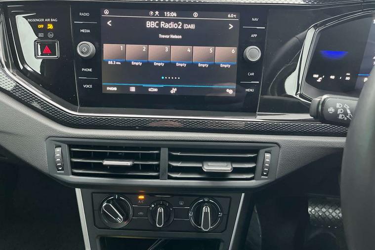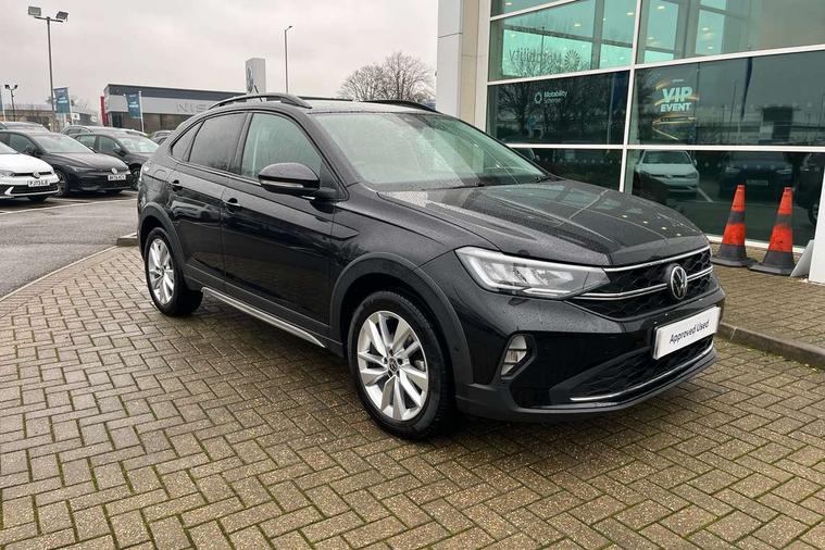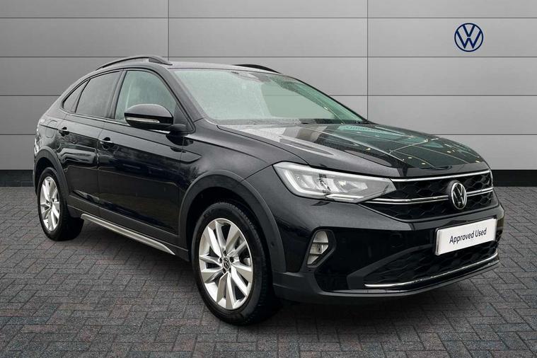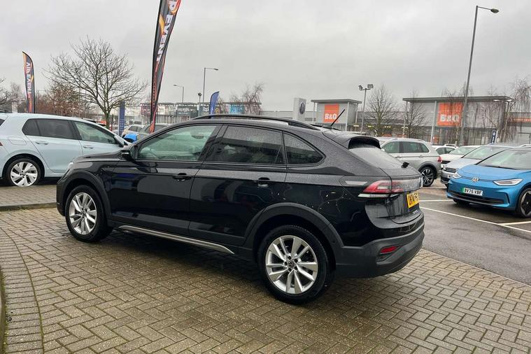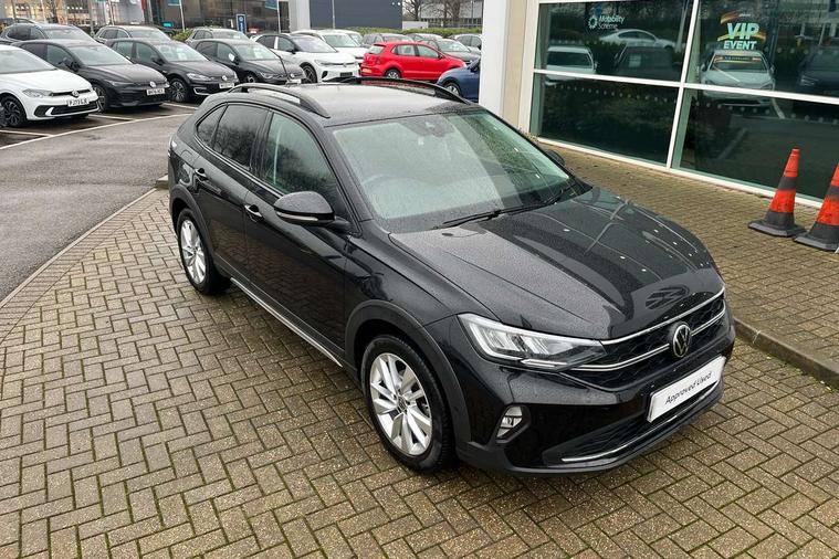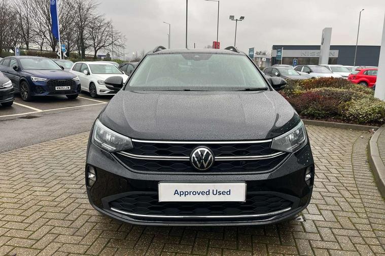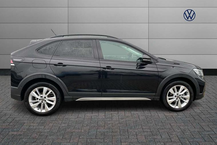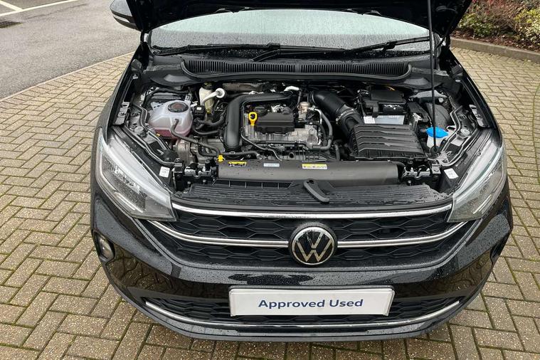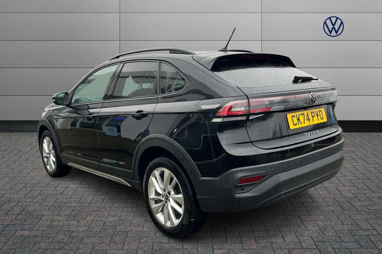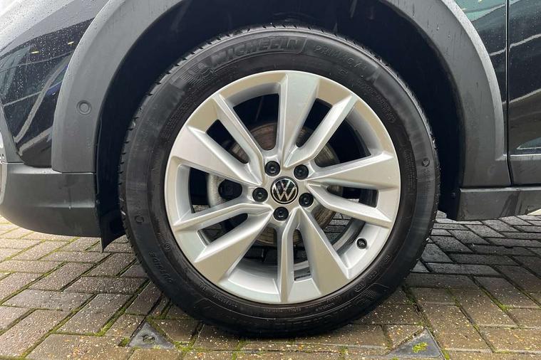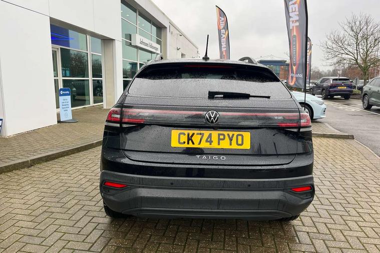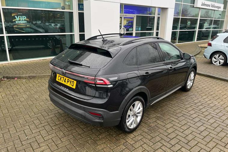 Adaptive cruise control, Advanced driver attention and drowsiness monitor, Dynamic road sign display, e-Call (emergency call), Power Steering, Rear view camera, Travel assist including emergency assist, Washer fluid level indicator, Wireless Charging including Bluetooth, Start-stop system with battery regeneration (recuperation - energy recovery during braking), WeConnect plus, Ambient lighting with logo projection, Aspherical driver's exterior mirror, Body coloured bumpers, Body coloured exterior mirror housings and door handles, Electric windows, External USB type C socket and charging sockets, Heat insulating glass windscreen, LED rear combination lamp, LED third brake light, Left convex exterior mirror, Power folding adjustable/heated exterior mirrors and front passenger exterior mirror lowering function, Rear fog light on one side, reversing light on both sides, Rear side wing doors, Rear wash/wipe with intermittent wipe setting, Side windows in heat-insulating glass, from B-pillar and rear window dark tinted, 'Slash/ Austin' Cloth upholstery, 12V socket in centre console, 2 front reading lights, 3 rear head restraints, 3 seat bench in 2nd row, Black carpets, Ceramique headliner, Child seat anchor for child seat system i-Size, 2x top tether and child seat anchor in front on front passenger side, Door and side trim panels in titan black, Driver and front passenger seat height adjustment, Front centre armrest, Handbrake lever handle in leather, Height and reach adjustable steering wheel, Leather trimmed gear knob, Leather wrapped multifunction steering wheel with paddle shift, Luggage compartment floor, Luggage compartment light, Lumbar support for driver's and front passengers seat, Seat covers in titanium black, Single front passenger seat, Split folding backrest with centre armrest and unsplit rear seat bench, Storage compartment under front seats, Sun visors with illuminated vanity mirrors, Titanium black instrument panel, Chrome Package - Taigo, Drivers assistance package - Taigo, Light and sight pack - Taigo, 2 x 3-point seatbelts/outer rear seats with ECE label, 3-point seat belts in front with pretensioner and height adjustment, 3-point seatbelt for centre rear seat, Driver and front passenger airbag with front passenger airbag deactivation, Driver and front passenger safety-optimised head restraints, Electronic stability control, Extended and predictive pedestrian/ cyclist protection, Front and rear disc brakes, Front curtain and side airbags with center airbag, Hill start assist, Manual rear child locks, Single tone horn, Tyre pressure loss indicator, Anti-theft alarm system with interior monitoring, backup horn, and towing protection, Keyless locking and starting system keyless access with safelock, Black (slush) Dashboard, Lava stone black gloss/matt decorative inserts in dash and front door panels, Low rolling resistance tyres,