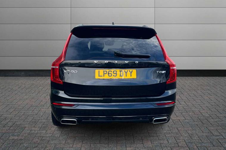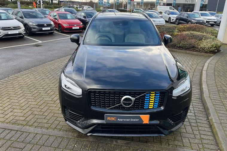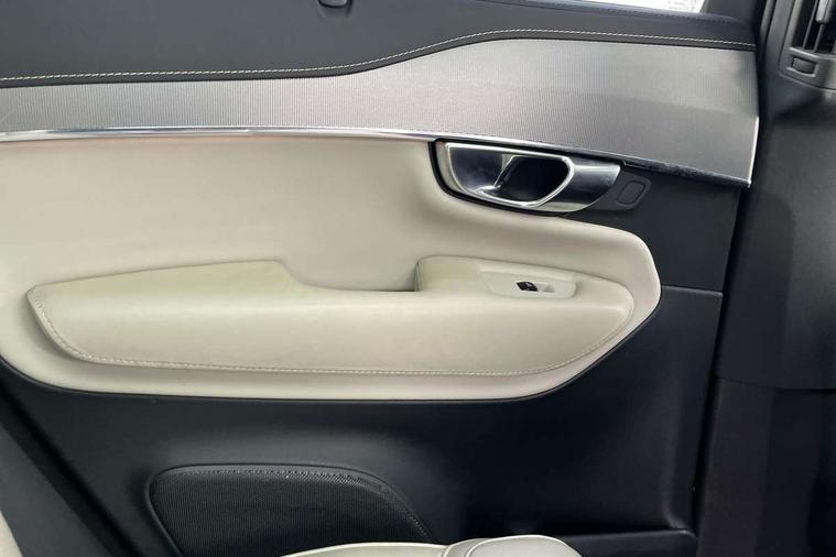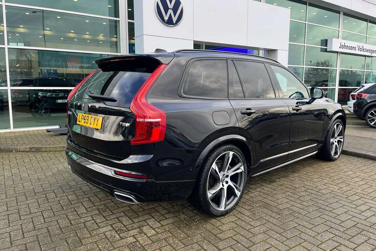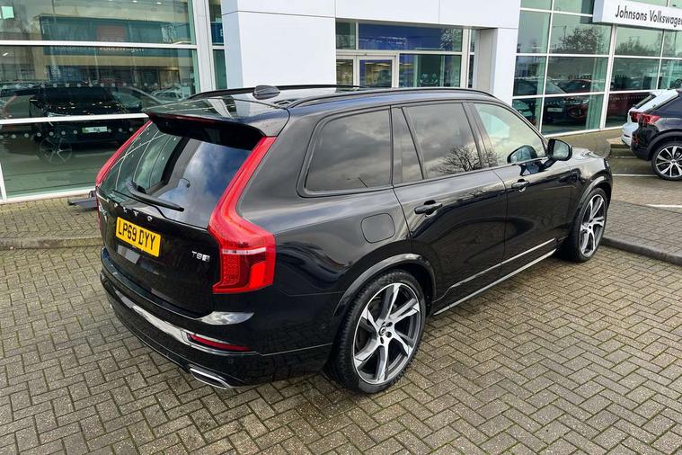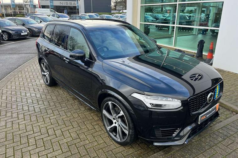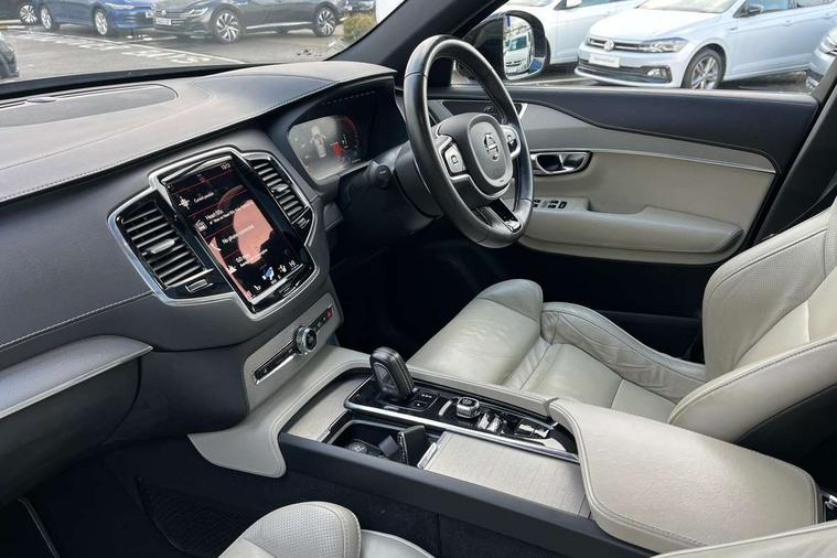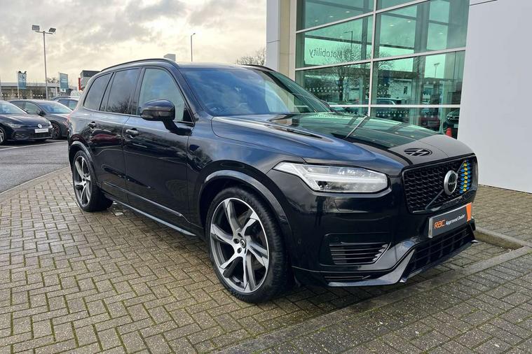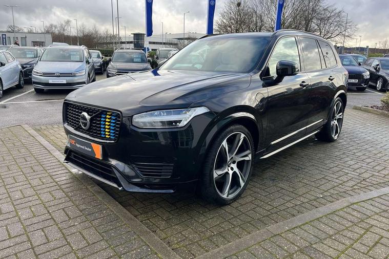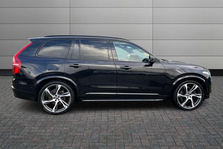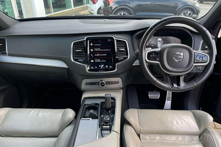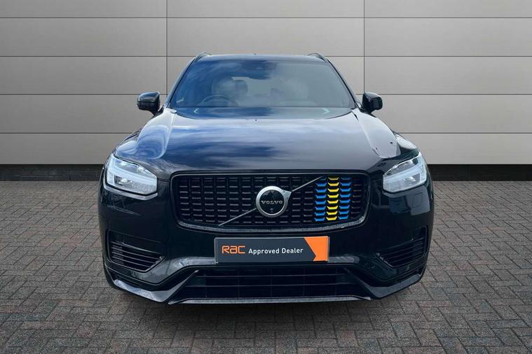 12.3" Active TFT crystal driver's instrument display, 9" centre console portrait touch screen, Adjustable steering wheel force, Bluetooth hands free telephone connection, Drive mode settings, Driver alert control with lane keeping aid, Front and rear park assist, Handsfree power tailgate opening and closing, Intellisafe assist - Adaptive cruise control with pilot assist, Oncoming Lane Mitigation, Sensus navigation with European mapping and traffic information, Service interval indicator, Speed limiter, Speed sensitive steering, Trip computer, Voice activated control for key functions, Volvo on call, Wireless internet connection, 8 speed automatic transmission with start/stop + manual change functions, Active four C chassis - four corner adaptive dampers with electronic air suspension, All wheel drive system, Electric rear axle drive, Lithium-ion battery, Recharging port located in nearside front wing, Touring chassis, DAB Radio (Digital Audio Broadcasting), Steering wheel audio controls, Steering wheel remote infotainment controls, Active bending headlights with adaptive shadow technology, Adaptive brake lights with high level LED brake lights, Auto dimming interior + exterior mirrors, Automatic headlight levelling system, Automatic LED Headlights + Active high beam incorporating daytime running lights, Body colour bumpers, Colour coordinated auto folding and heated power door mirrors, Dark tinted windows for rear side windows and cargo area, Dual integrated exhaust pipes with high gloss black surround, Front and rear power windows, High gloss black Deco lower front bumper, High gloss black door mirrors, High gloss black mesh front grille with silk metal surround, High gloss black window surround, Home safe and approach lighting, Integrated roof rails in high gloss black, Puddle lights, Rain sensor with automatic windscreen wiper activation, Rear wash/wipe with intermittent wipe setting, Roof antenna, Roof spoiler, Visible VIN plate, 12V socket in front + rear tunnel console, rear passenger compartment and cargo area, 2nd Row centre armrest with storage and cupholders, 3 spoke leather steering wheel and illuminated gear knob with chrome trim, 4 Zone electronic climate control + cooled glovebox, A-pillar parking ticket holder, Air conditioning for 3rd row of seats, Auxiliary fuel fired heater with pre conditioning functions, B Pillar ventilation, Bright metal luggage threshold, Cargo divider with grocery bag holder, Centre console cupholders and storage, Charge cable bag, Driver's side lower dashboard storage compartment, Front and rear door pocket and front cupholder illumination, Front footwell and side step illumination, Front headrests, Front seat cushion extensions, Heated front seats, Height/reach adjustable steering column, Illuminated front and rear R-Design tread plates, Illuminated luggage compartment, Illuminated tailgate, Illuminated vanity mirrors + ticket holder, Illumination lockable glovebox compartment, Load protection net, Multicolour theatre lighting, Nappa Leather Key Integrated Remote, Outboard armrest with cupholder and storage for third row passengers, Passenger seat electric height adjuster, Passenger seat lumbar support, Pollen filter, Power driver seat with multi directional lumbar support and memory for seat and exterior mirrors, Rear footwell and side step illumination, Rear headrests, Semi automatic load cover, Sports floor mats, Sports leather gear knob, Sports pedals, Sports steering wheel with gear shift paddles, Three 2nd row individual folding passenger seats with fore/aft adjustment, Two 3rd row individual folding passenger seats, Underfloor cargo storage, Winter pack including Head up display - XC90, 7 three point seatbelts, City safety includes pedestrian, cyclist and large animal detection and front collision warning with full auto brake, Drivers knee airbag, Dual stage driver/passenger airbags, First aid kit, Front and rear curtain airbags, Front seat side impact airbags, Front seats SIPS airbags, Hill descent control, Hill start assist, IC (Inflatable Curtains) - Full Length, Passenger airbag cut-off switch, Power parking brake with auto hold function, Run off Road Mitigation, Run off Road Protection, Seatbelt reminder and pretensioners for all seats, SIPS (Side Impact Protection System), Slippery road and hazard light alert, Stability and Traction Control with Spin control, Engine Drag Control and Corner Traction Control, Tyre pressure monitoring system, Vehicle deceleration control with Anti-lock Brake System, Electronic Brake Distribution and Emergency Brake Assist, Warning triangle, WHIPS whiplash protection system - front, Anti-theft alarm including immobiliser/volume sensor + level sensor, Key integrated remote control central locking + fuel flap with deadlocking system and auto open/close power windows, Keyless drive (includes keyless entry and keyless start) with remote tag, Locking wheel nuts, Private locking for glovebox and tailgate, Tailored Instrument Panel and Door Tops with Contrast Stitching, Tyre sealant kit + 12v compressor,