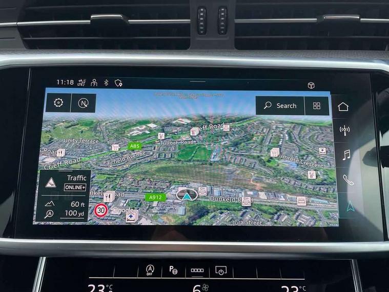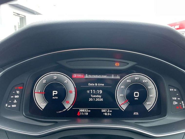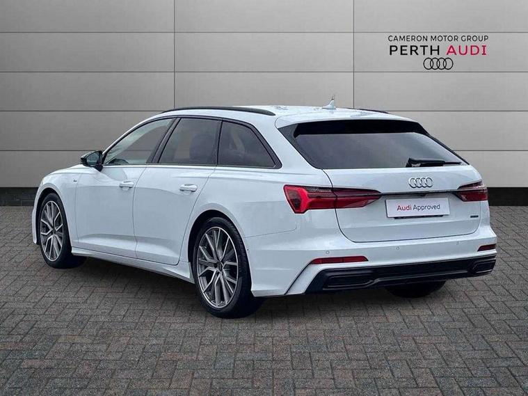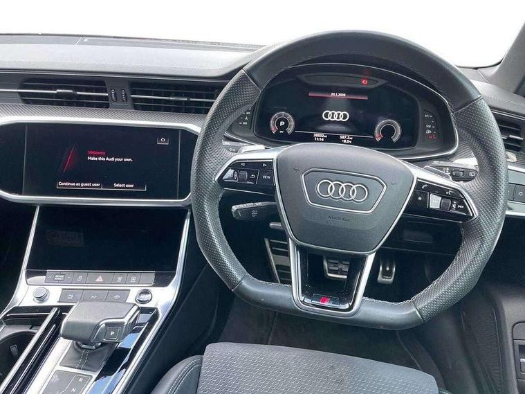 7" high resolution colour driver information display system, Audi connect safety and service (e-call), Audi connect with Amazon Alexa Integration, Audi drive select, Audi parking system plus - acoustic and visual park assist system for front and rear, Automatic start/stop system with coasting functionality, Bluetooth interface, Lane departure warning system, Power operated tailgate, Progressive steering, Rear view camera, Service interval indicator, Smartphone interface includes wireless Apple carplay/Android Auto, Voice control system, 12V Mild hybrid, 24 litre AdBlue tank, Diesel particulate filter, Quattro on demand, Sports suspension, Audi front music interface, Audi sound system, Auxiliary input socket, DAB Digital radio, USB connection, Black roof rails, Electric front/rear windows, Frameless auto dimming interior rear view mirror, Front intermittent wipers, Gloss black highlights on the exterior area of the Audi Single frame, Gloss black highlights on the front and rear bumpers, Gloss black highlights on the radiator grille, Gloss black highlights on the side windows trim strips, Headlight washers, Heat insulating darkened glass in side and rear windows, Heat insulating glass in windshield, LED signature front daytime running light, LED third brake light, Matrix LED headlights, Matt black rear diffuser with diffuser strip and tailpipes in chrome, Matt black side air intake grille with inlay in matt aluminium, Privacy glass, Rain and light sensors, Rear roof spoiler, Rear side wing doors, Rear wiper, Signature rear LED light design, 2 zone deluxe electronic climate control, 4 way electric lumbar support for driver and front passenger, 40/20/40 split folding 3 rear seat bench in 3 parts with rear centre armrest, Black cloth headlining, Black front and rear carpet floor mat, Black steering wheel insert, Electrically adjustable front seats with driver memory, Front centre armrest, Front head restraints, Heated front seats, Height/reach adjust steering wheel, Illuminated door sill trims with S logo, Illuminated sun visors with vanity mirrors, ISOFIX child seat mounting and Top Tether with front passenger airbag deactivation, Leather gear knob, Luggage compartment system, Rear headrests, Single front passenger seat, Stainless steel pedals and foot rest, LED Interior Ambient Lighting Pack - A6, Non smoking pack - A6, Technology pack - A6, 3 point seatbelts on all seats, Airbags - Front side, front and rear including head, Audi pre-sense front, Black seatbelts, EBD - Electronic brakeforce distribution, Electromechanical parking brake, Electronic Stability Control (ESC) including ABS, ASR and EDL, Extended pedestrian protection measures, Manual child proof rear door locks, Seatbelt monitoring, Tyre pressure warning light, Warning triangle and first aid kit, Anti theft alarm with tow away protection, Anti-theft wheel bolts and wheel loosening detection, Immobiliser, Keyless Go, Remote central locking, Carbon twill inlays, 20" 5 V spoke star design Audi sport cast aluminium alloy wheels in matt grey look,