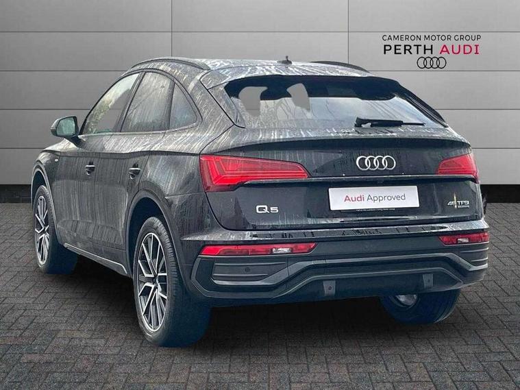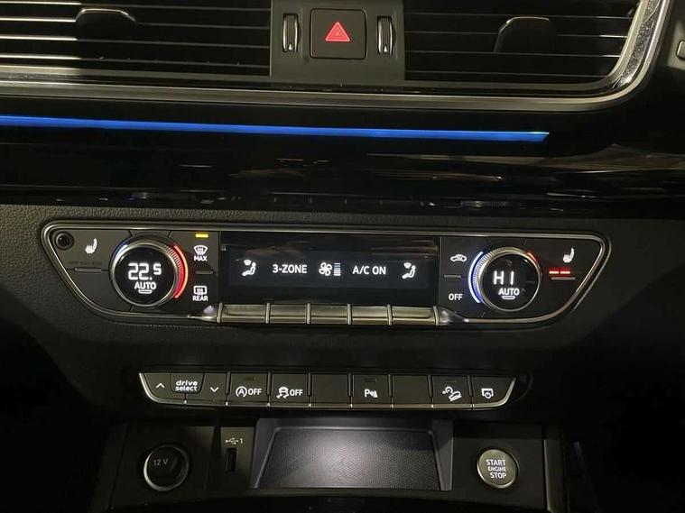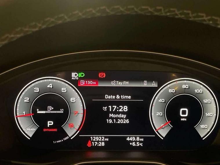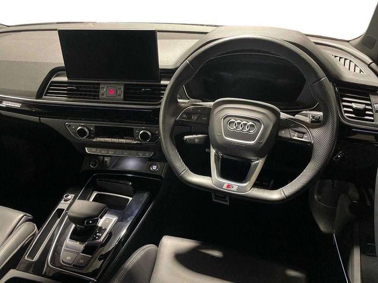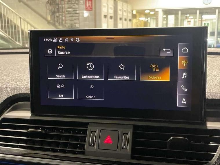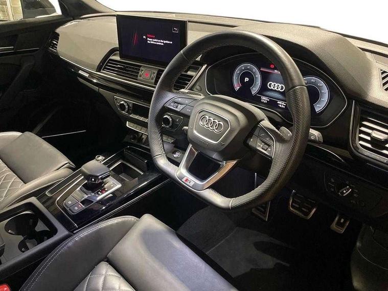 Acoustic front and rear parking sensor, Advanced key with electric hands free boot opening system, Audi connect safety and service (e-call), Audi connect with Amazon Alexa Integration, Audi drive select, Audi virtual cockpit plus with 12.3" screen and three different layout designs, Audi wireless smartphone interface, Automatic start-stop system with coasting functionality and efficiency programme, Bluetooth interface, Electro - mechanical power assisted steering, MMI navigation plus with 10.1" touch screen, Power tailgate, Reversing camera, Service interval indicator, Voice control system with Audi hotword activation "Hey Audi", 70 litre fuel tank, Quattro on demand, S line sports suspension, 2 x USB charging port with aux input socket, Bang + Olufsen sound system, DAB Digital radio, Acoustic windscreen, Audi beam with Audi rings logo, Audi matrix LED headlights with dynamic front and rear indicators, Audi rings at front and rear in black, Audi rings decal on rear doors, Auto dimming door mirrors, Auto dimming frameless rear view mirror, Automatic headlight adjustment, Automatic headlights and windscreen wipers, Black roof rails, Body colour underbody protection, Chrome plated exhaust trims, Daytime running lights, Door sills in Selenite silver, Electric adjustable/heated/folding door mirrors, Front air inlet surrounds in anthracite black, Front and rear electric windows, Headlight washers, High gloss black B pillar trims and triangular rear door trim, High level LED brake light, Rear chrome trim strip below lights, Rear privacy glass and rear side windows, Rear side wing doors, Rear spoiler, Rear wiper, Roof bars, Without model and engine badging at rear, 3 rear headrests, 4 way electric lumbar support for driver and front passenger, 40:20:40 split folding 3 rear bench seat in 2nd row with rear centre armrest, Black cloth headlining, Comfort front centre armrest, Contrast stitching on seats, steering wheel and gear lever gaiter, Deluxe 3 zone electronic climate control, Electrically adjustable front seats, Fine Nappa leather upholstery with diamond pattern contrast stitching + front sport seats with S embossed logo, Front head restraints, Front/rear floor mats, Gear lever in black leather, Heated front seats, Height/reach adjustable steering column, Illuminated door sill trims with S logo, Rear seat bench plus-adjust for forwards/backwards position/backrest angle, cupholders in the armrest, load through hatch and remote backrest release, Removable luggage compartment floor, Single front passenger seat, Stainless steel pedals, Sunvisors with vanity mirrors, Trunk roller cover, Black styling package - Q5 Edition 1, Extended LED Interior multi coloured Lighting Pack - Q5, 3 point seatbelts on all seats, 6 airbags - Driver, front passenger, curtain and side airbags, Electrically operated child locks on rear doors, Electromechanical parking brake, Electronic stabilisation control including ABS, ASR and EDL, First aid kit with warning triangle and vests, Front and rear brake calipers painted in red, Front passenger airbag deactivation, Hill descent control, Hill hold assist, ISOFIX child seat mounting for front passenger seat and ISOFIX child seat mounting with Top Tether for outer rear seats, Multi collision brake assist, Pop-up bonnet for pedestrian protection, Pre sense city, Seat belt force limiter, Seatbelt monitoring, Tyre pressure warning, Anti theft alarm, Anti-theft wheel bolts, Keyless Go access/ignition system, Remote central locking, Air vents inserts and centre console in gloss black, Piano black finish inlay,