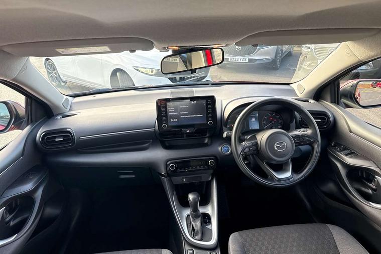 Adjustable speed limiter, Analogue speed display meter, Apple car play/Android Auto, Drive mode selection and paddle shift, Dynamic radar cruise control, E-call with GPS, Emergency stop signalling system, Engine start/stop button, EV drive mode, Hybrid system indicator, Integrated bluetooth, Lane tracing assist includes Lane centering, Lane departure alert, Steering assist and Vehicle sway warning, Multi-information display, PAS, Pre-collision system enhanced with emergency steering assist, Reversing camera, Road sign assist - RSA, Service indicator, Tailgate, Trip computer, i-stop, AM/FM/DAB radio with 6 speaker audio system and 8" colour screen centre display, Steering wheel mounted audio/bluetooth controls, Automatic high beam - AHB, Black lower window garnish, Body coloured electrically adjustable heated door mirrors, Body coloured front bumper, Body coloured rear bumper with satin black lower mouldings, Coming/leaving home lighting function, Dusk sensing headlights, Front and rear electric windows, Gloss black rear roof spoiler, Halogen front fog lights, Halogen headlights with manual headlight levelling and Halogen daytime running lights, LED rear combination light with halogen turn signals, LED third brake light, Rain sensing front wipers with adjustable sensitivity and speed, Rear side wing doors, Rear wiper, Satin black front grille, Shark fin antenna, 12V power outlet, 3 seat bench in 2nd row, 60/40 split rear seats, Climate control air conditioning, Cloth upholstery, Door panel in soft touch material, Driver, front passenger and two rear door storage, Driver, Front passenger and two rear grab handles with coathooks, Drivers seat manual slide recline and height adjustment, Drivers/front passengers with covered vanity mirrors, Front centre armrest, Front centre storage with two cupholders, Front head restraints, Glovebox, Interior courtesy light, ISOFIX child seat anchorage points attached on outer rear seats, Leather handbrake, Leather steering wheel and gear knob, Luggage compartment light, Single front passenger seat, Three height adjustable rear head restraints, Tilt/telescopic adjustable steering wheel, USB input, 2x3 point front seatbelts with pre-tensioners, 3 point seatbelts on all rear seats, Anti-lock braking system (ABS), Collision mitigation braking system, Driver and passenger central airbags, Dynamic stability control + Traction control, Electronic parking brake with auto-hold and auto-disengage function, ESP, Front and rear curtain airbags, Front driver, passenger and rear seat seatbelt warning, Front dual stage driver and single stage front passenger airbags, Front side airbags, G-Vectoring control plus, Hill start assist control (HAC), Manual child lock in rear doors, Passenger airbag cut-off switch, Regenerative braking system, Tyre pressure monitoring system, Deadlocking system, Smart keyless entry, Thatcham approved immobiliser and alarm, 15" Alloy wheels, Emergency tyre repair kit,
