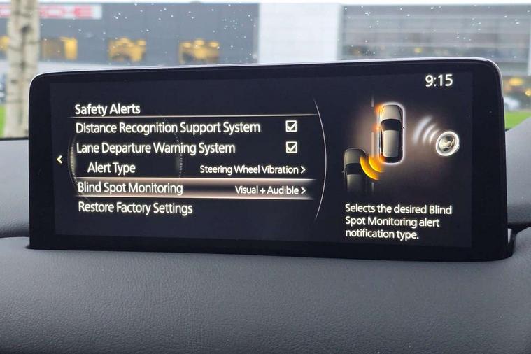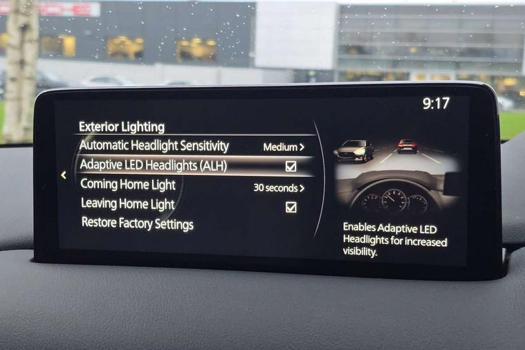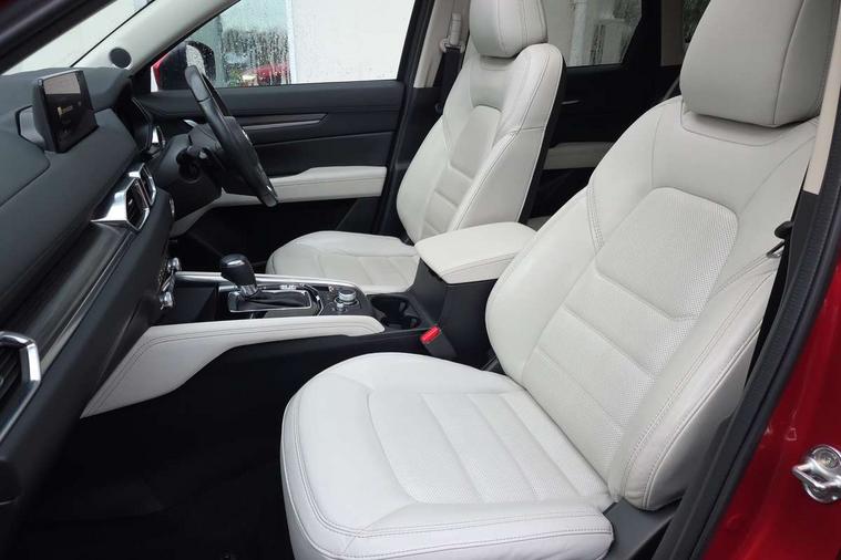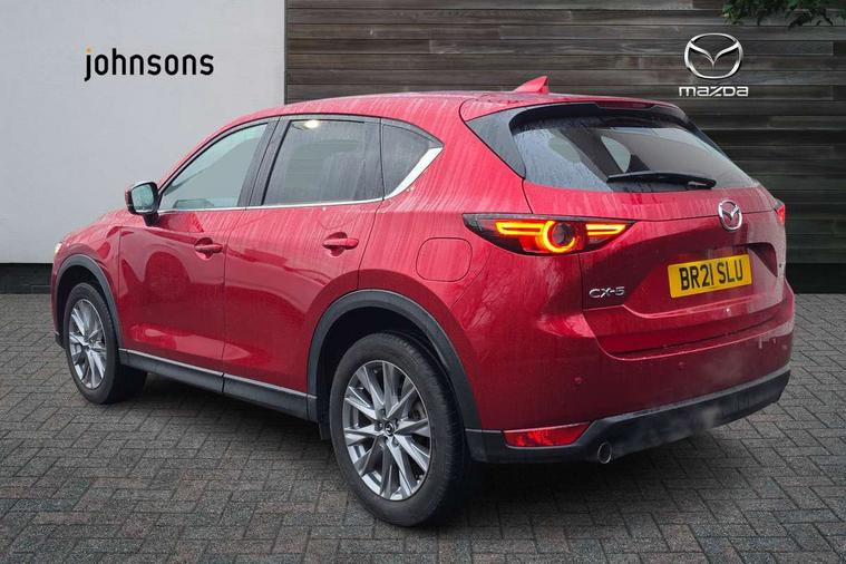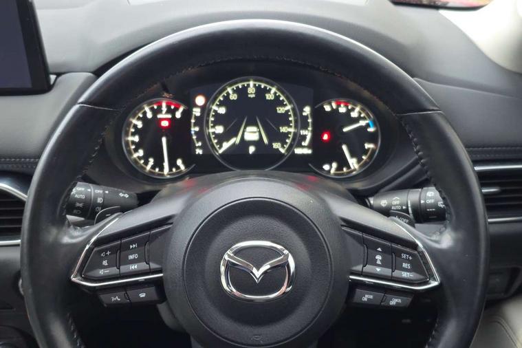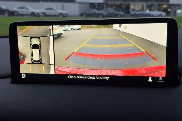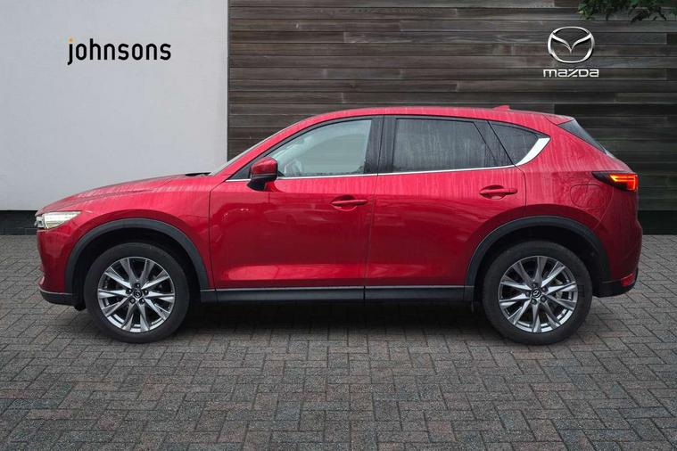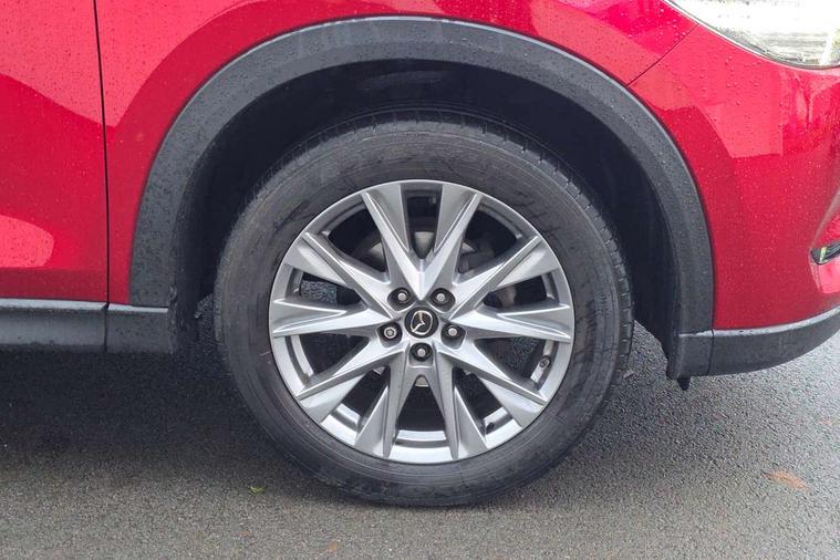 10.25" display with Mazda Connect infotainment, 7" colour TFT display, Apple car play/Android Auto, Blind spot monitoring with rear cross traffic alert, Bluetooth connectivity with voice control, Collision prevention assist, Colour head up display, Connected services, Electric power steering, Emergency stop signalling system, Engine start/stop button, Forward collision warning, Front and rear parking sensors, Integrated navigation system, Intelligent speed assist, Lane departure warning system, Lane keep assist, Power tailgate, Radar cruise control with Stop and Go, Reversing camera, Service indicator, Traffic sign recognition, Trip computer, i-stop, 2 USB sockets in rear, 2x USB sockets in front, AM/FM radio, Bluetooth audio streaming, Bose premium sound system with 10 speakers, DAB Digital radio, Multimedia Commander including separate volume dial, Steering wheel mounted audio controls, Adaptive front lighting system, Auto dimming rear view mirror, Body colour door mirrors, Body colour roof spoiler, Body coloured front bumper with black lower mouldings, Body coloured rear bumper with black lower mouldings, Coming/leaving home lighting function, Door mirror integrated indicators, Dual exhaust pipes, Dusk sensitive headlamps, Electric adjustable/heated/folding door mirrors, Electric front/rear windows/one touch facility, High beam assist, Intermittent rear wash/wipe, LED daytime running lights, LED front fog lights, LED Headlights, LED third brake light, Power tilt/slide sunroof, Privacy glass, Rain sensing front wipers, Scuff plates, Shark fin roof aerial, Signature LED rear combination lights, Windscreen wiper de-icer, 2 cupholders, 3 grab handles with rear coat hook, 40:20:40 Karakuri fold-flat seat system, 6 way electric adjustable passenger seat, 8 way electric driver seat with lumbar support + memory, Driver/passenger front seatback pockets, Driver/passenger sunvisors + illuminated vanity mirrors (drivers with ticket holder), Dual zone climate control, Front and rear door pockets, Front centre armrest, Front centre console storage box, Heated front seats, Heated steering wheel, Height adjustable head restraints, Humidity sensor, Illuminated glovebox, Interior dome light with integral spotlight, Interior incandescent lighting, ISOFIX child seat anchorage points attached on outer rear seats, Karakuri tonneau cover, Leather steering wheel/gearknob/handbrake grip, Leather upholstery, LED interior illumination, Light roof lining, Luggage compartment lighting, Rear air vents, Rear centre armrest with 2 cupholders, Rear headrests, Rear power outlet, Rear seat recline, Sunglasses holder, Tilt/height adjustable steering wheel, 3 point front seatbelts with pre-tensioners, 3 rear 3 point seatbelts, ABS, Advanced Smart City Brake Support - SCBS, DSTC-Dynamic Stability and Traction Control, Dual front airbags, Electronic brake force distribution, Electronic parking brake with auto hold, Front and rear curtain airbags, Front passenger airbag deactivation, Front side airbags, G-Vectoring control, Hill hold assist, Seatbelt reminder front and rear, Smart brake support with forward obstruction warning, Tyre pressure monitoring system, Automatic door locking when moving off, Deadlock, Immobiliser, Power door locks, Remote central locking, Smart keyless entry, Thatcham Cat.1 alarm, Upper dashboard and door trim in wood grain metal, 19" Silver alloy wheels, Tyre repair kit,