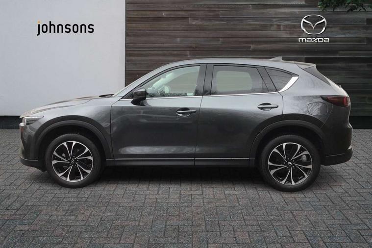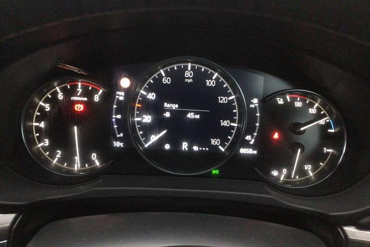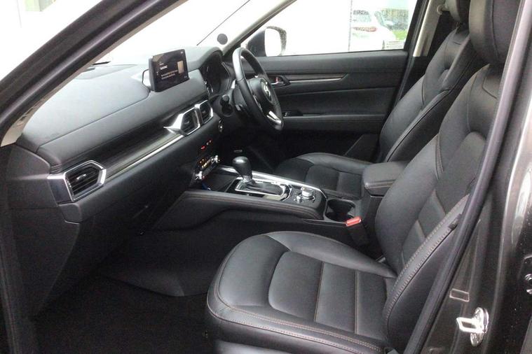 10.25" display with Mazda Connect infotainment, 7" colour TFT display, Advanced blind spot monitoring, Bluetooth connectivity with voice control, Collision prevention assist, Connected services, Cruising Traffic Support, Drive mode selector, Electric power steering, Emergency stop signalling system, Engine start/stop button, Forward collision warning, Front and rear parking sensors, Integrated navigation system, Intelligent speed assist, Lane departure warning system, Lane keep assist, Power liftgate, Qi wireless phone charging, Radar cruise control with Stop and Go, Rear cross traffic alert, Reversing camera, Service indicator, Traffic sign recognition (TSR), Trip computer, Windscreen projected colour active driving display (HUD) with memory, Wireless apple car play/android Auto, Cylinder Deactivation, i-stop, AM/FM radio, Bluetooth audio streaming, Bose premium sound system with 10 speakers, DAB Digital radio, Multimedia Commander including separate volume dial, Steering wheel mounted audio controls, Adaptive front lighting system, Auto dimming rear view mirror, Automatic headlights, Black inlay dashboard panel, Body colour door mirrors, Body colour roof spoiler, Body coloured front and rear black lower bumper mouldings, Coming/leaving home lighting function, Door mirror integrated indicators, Dual chrome tailpipes, Electric front/rear windows with one touch auto up/down, Front grille in gloss black finish with chrome signature wing, Gloss black B and C pillars garnish, High beam assist, Intermittent rear wash/wipe, LED auto levelling, LED daytime running lights, LED front fog lights, LED Headlights, LED third brake light, Power folding and heated door mirrors, Power tilt/slide sunroof, Privacy glass (rear side windows only), Rain sensing front wipers, Rear side wing doors, Satin black side mouldings, Scuff plates, Shark fin antenna, Signature LED rear combination lights, Variable intermittent front wash/wipe, Vinyl with wood grain metal inlay door trim panel, Windscreen wiper de-icer, 12v electrical power outlet, 3 seat bench in 2nd row, 3 stage heated front seats, 40:20:40 Karakuri fold-flat seat system, 6 way electric adjustable passenger seat, 8 way electric driver seat with lumbar support + memory, Cargo room flat floor board with waterproof undertray, Driver seat power slide, recline and height adjustment, Driver, Front passenger and two rear grab handles with coat hooks, Driver/passenger front seatback pockets, Driver/passenger sunvisors + illuminated vanity mirrors (drivers with ticket holder), Dual zone climate control, Folding centre armrest with 2 cup holders, Front and rear door pockets, Front centre storage with two cupholders, Front passenger seat power slide, recline and height adjustment, Heated steering wheel, Humidity sensor, Illuminated glovebox, Interior dome light with integral spotlight, ISOFIX child seat anchorage points attached on outer rear seats, Karakuri tonneau cover, Leather upholstery, Leather wrapped steering wheel and gear knob, Light roof lining, Luggage compartment LED lighting, Luggage compartment power outlet, Paddle shifts, Rear air vents, Rear headrests, Rear seat recline, Roof mounted sunglasses holder, Single front passenger seat, Three height adjustable head restraints, Tilt/height adjustable steering wheel, USB Connectivity (2x front Type-C, 2x rear Type-B), White interior LED illumination lighting, 3 point front seatbelts with pre-tensioners, 3 rear 3 point seatbelts, ABS, Advanced Smart City Brake Support - SCBS, Child locks on rear doors, Driver and front passenger side airbags, DSTC-Dynamic Stability and Traction Control, Dual front airbags, Electronic brake force distribution, Electronic parking brake with auto hold, ESP, Front and rear curtain airbags, Front passenger airbag deactivation, G-Vectoring control, Hill hold assist, Seatbelt reminder front and rear, Single stage passenger airbags, Smart brake support with forward obstruction warning, Tyre pressure monitoring system, Automatic door locking when moving off, Deadlock, Immobiliser, Power door locks, Remote central locking, Smart keyless entry, Thatcham Cat.1 alarm, 19" diamond cut black alloy wheels, Tyre repair kit,