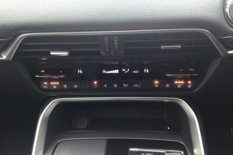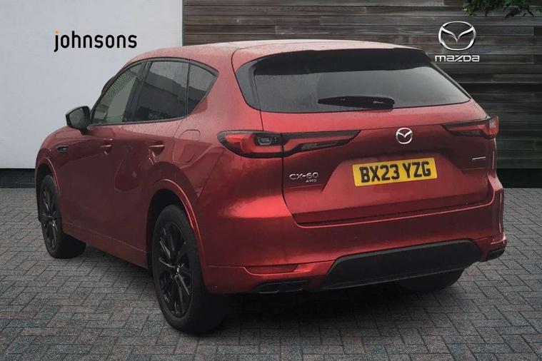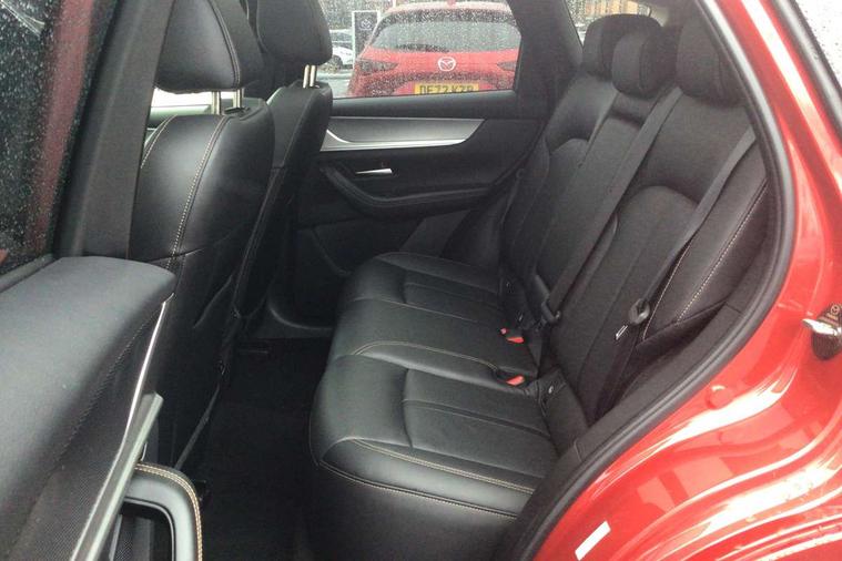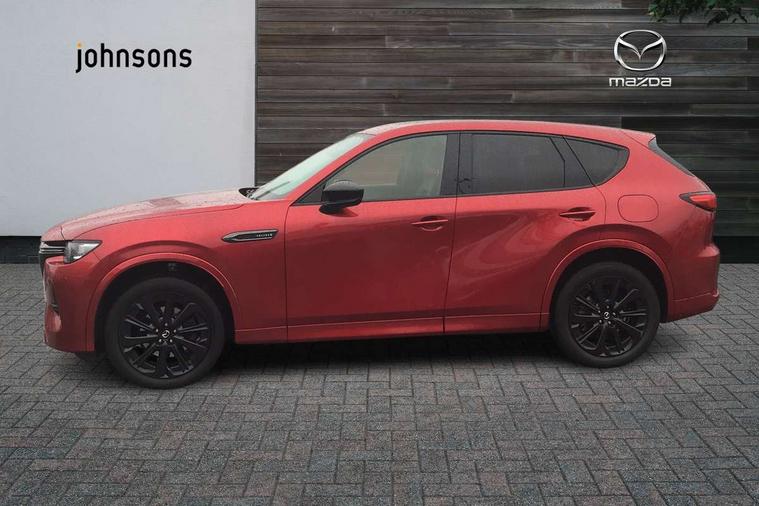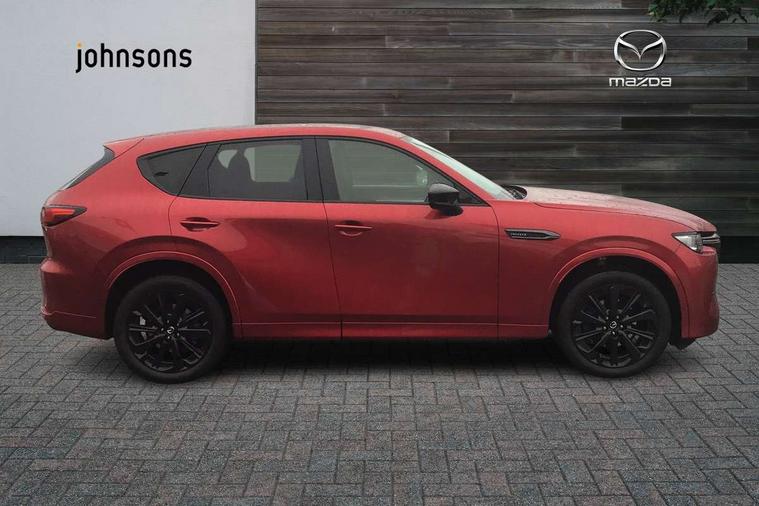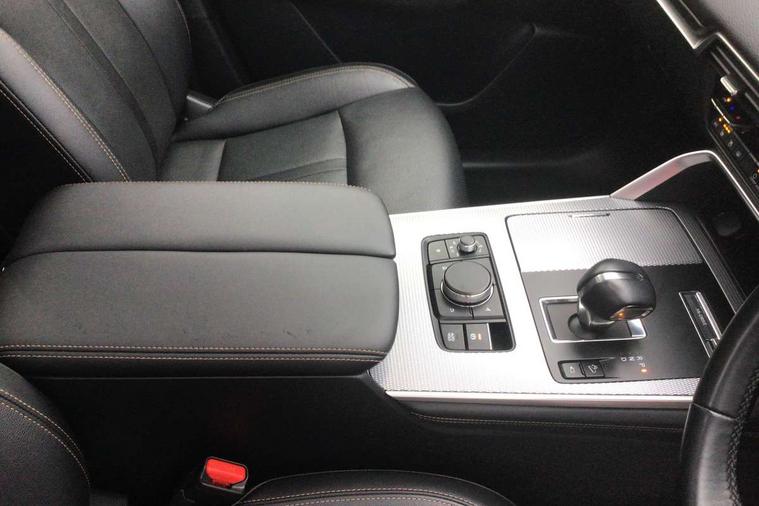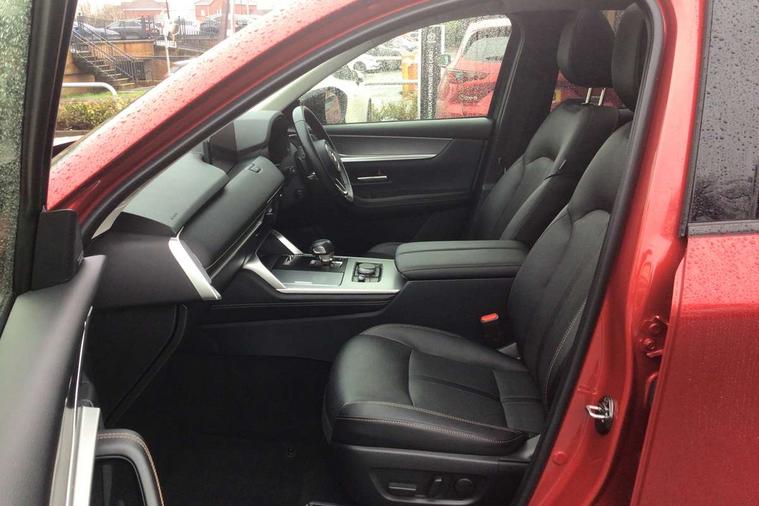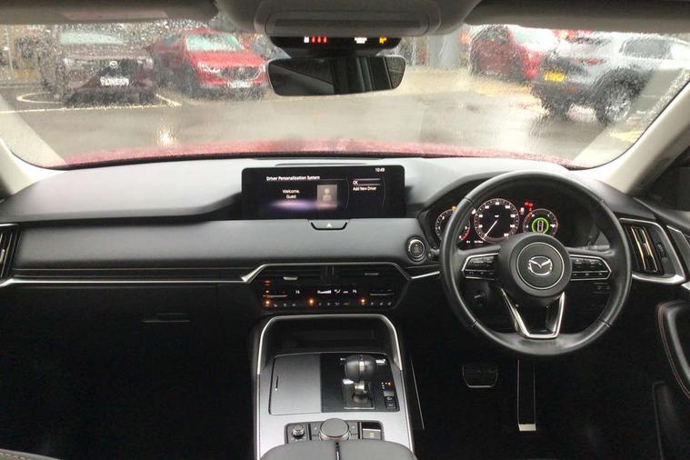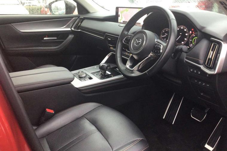 Emergency lane keeping with blind spot assist, Low washer fluid warning light, 12.3" Colour entertainment centre display with mazda connect infotainment, 12.3" TFT Colour display, Adjustable speed limiter, Black faux leather vinyl dashboard with titanium piping, Blind spot assist, Blind spot monitoring with rear cross traffic alert, Cruise control, Distance alert system, Driver attention alert system, Driver Monitoring with personal identification, E-call with GPS, Emergency stop signalling system, Exit warning function, Front and rear parking sensors, Ingress / Egress support and automatic driver position guide, Integrated bluetooth, Intelligent speed assist, Kinematic posture control, Lane keep assist system (LAS) with Lane departure warning system (LDWS), Mazda Driver Personalisation System, Mazda Navigation System with european mapping, Multimedia Commander, PAS, Power lift gate with handsfree function, Power start/stop button, Reversing camera with static guide lines, Speed alert, Traffic sign recognition, Trip computer, Windscreen projected colour active driving display, Wireless apple car play/android Auto, Internal Combustion Engine Sound Emulator, Mi-Drive (Normal, Sport, Off-road, Towing and EV mode), Paddle shift, AM/FM and DAB radio, Bose surround sound system with 12 Speaker, Bose center point, Bass match and audio pilot technology, Steering wheel mounted audio/bluetooth controls, USB-C inputs (x2 front and x2 rear), Auto dimming driver's door mirror, Automatic headlight levelling, B-pillar and C-pillar garnishes in gloss black finish, Body colour roof spoiler, Body coloured bumpers, Body coloured wheel arch and side mouldings, Coming/leaving home lighting function, Dark plated headlight lense, Dark plating finish signature wing in front grille, Dark plating front side garnish, Differentiated front bumper design to accentuate the intake, Dusk sensing headlights, Electric front/rear windows with one touch auto up/down, Electrically adjustable, heated auto power folding door mirrors with memory, Frameless auto dimming interior rear view mirror, Front kodo turn signal, Front wiper de-icer, Gloss black door mirrors, Headlight washers, High beam control, Honeycomb radiator grille in gloss black, LED 3rd brake light, LED headlamps, LED rear signature combination lamps, Rain sensing front wipers with adjustable sensitivity and speed, Rear side wing doors, Rear wiper, Roof pillars and roof lining finished in lighter colour to soften the overall look, Signature LED daytime running lights, Silver decoration panel, 12v power outlet - front, 12V socket in boot, 3 height adjustable rear headrests, 3 seat bench in 2nd row, 40/20/40 split folding rear seats with quick levers in the boot, Ambient lighting, Cargo net, Chrome interior trim accents with steering wheel centre bezel, surround of engine start / stop button and glove box handle, Door panel trim vinyl leather with armrest, Driver and front passenger two rear grab handles with rear coat hooks, Driver and front passenger visors with covered vanity mirror and driver ticket holder, Driver seat electric tilt, slide, recline, height and lumbar adjustment, Driver, front passenger and two rear door pockets, Driver/passenger front seatback pockets, Dual zone climate control air conditioning with rear air vents, Electric telescopic and tilt adjustment steering wheel, Folding rear centre armrest with two cup holders, Front centre storage with two cupholders, Front down lamp with front and rear foot lamps, Front headrests, Front passengers seat electric slide, recline, height and lumbar adjustment, Front seat ventilation with 3-stage setting, Glovebox illumination, Heated front seats with 3 stage setting, Heated leather wrapped steering wheel, Heated outer rear seats with 3-stage setting, ISOFIX child seat anchorage points attached on outer rear seats, Karakuri tonneau cover, Leather upholstery, Leather wrapped gear shift knob, LED illumination luggage compartment, Practical and spacious front centre armrest storage, Rear seat recline function for rear passenger comfort, Remote fold down rear seats, Remote pre-heating/cooling, Roof mounted sunglasses holder, Single front passenger seat, 3 point ELR front seat belts x2 with pretensioners, 3 point ELR rear seat belts, Active bonnet, Anti-lock braking system (ABS), Drivers knee airbag, DSC - Dynamic Stability Control, Electronic parking brake with auto disengage function and auto hold function, Front and rear curtain airbags, Front dual stage driver and single stage front passenger airbags, Front passenger airbag cut-off switch, Front side airbags, Front smart city brake support, Hill decent control, Hill launch assist, Manual rear child locks, Seatbelt reminder for driver/front passenger and rear seats, Traction control, Tyre pressure monitoring system (TPMS), Remote central locking with deadlocking and automatic door lock when driving, Smart keyless entry, Thatcham accredited alarm and immobiliser, Black centre console panel, Dashboard panel - Black Vinyl, 20" Black metallic alloy wheels, Emergency tyre repair kit,