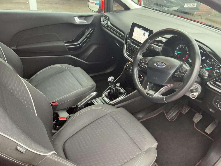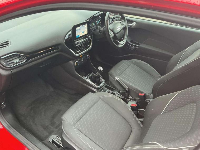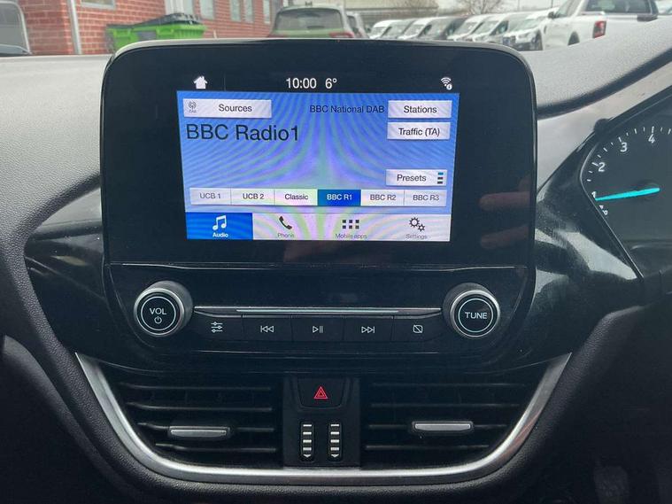 Immobiliser, MyKey system, Remote central locking, Thatcham Cat.1 alarm, Auxiliary input socket, Ford SYNC 3 DAB radio, apple car play and android auto with voice control, Steering wheel mounted controls, USB connection, 3 point seatbelts on all rear seats, ABS+EBA, Curtain airbags, Driver and passenger airbags, Drivers knee airbag, ESP + traction control, Front passenger airbag deactivation, Front side airbags, Hill start assist, Seatbelt warning, Tyre pressure monitoring system, Automatic headlights, Body colour bumpers, Body colour door handles, Body colour electric adjustable heated door mirrors, Body colour rear spoiler, Chrome beltline trim, Cornering front fog lights, Electric front windows/one touch facility, LED daytime running lights, Quickclear heated windscreen, Rear wiper, Tinted glass, Upper front grille chrome surround, 12V Accessory socket in centre console, 3 spoke leather steering wheel, 60/40 split folding rear seat, Adjustable head restraints, Ambient lighting, Boot carpet, Chrome inner door handles, Cloth upholstery, Footwell illumination, Front map reading lights, Front seat and rear pockets, Height adjustable driver's seat, Illuminated glovebox, Leather gear knob, Leather trimmed handbrake handle, Load area light, Luxury woven headliner, Manual air conditioning, Overhead console with sunglasses holder, Pollen filter, Rake/reach adjustable steering wheel, Rear centre head restraint, Bluetooth system, Electric power steering, Lane keep assist, Speed limiter, SYNC Emergency Assistance, Trip computer,