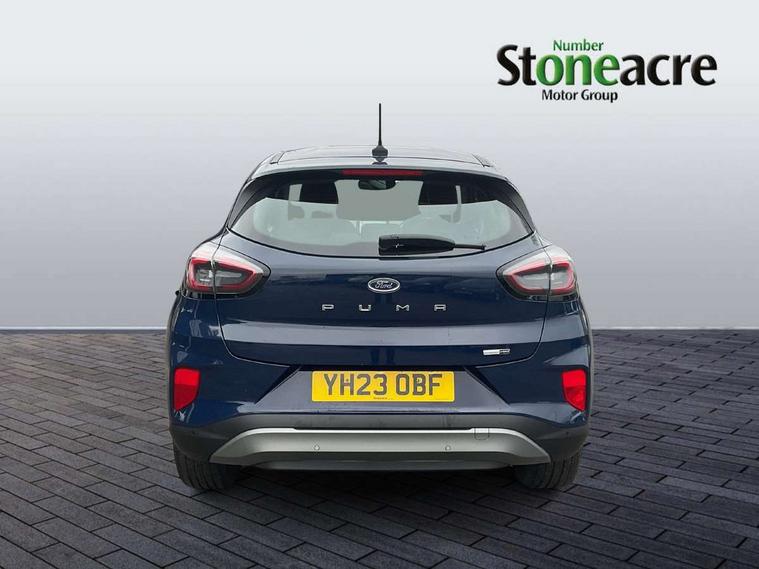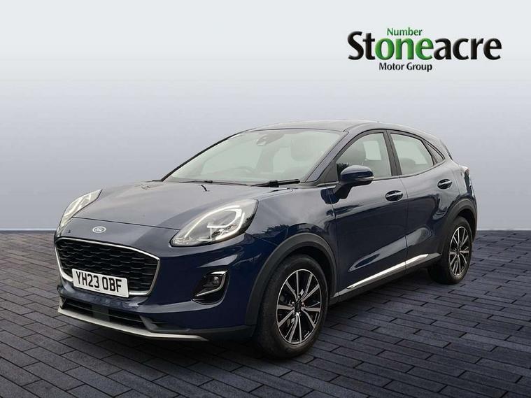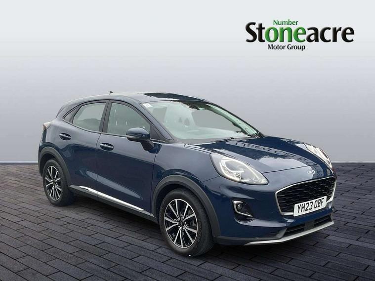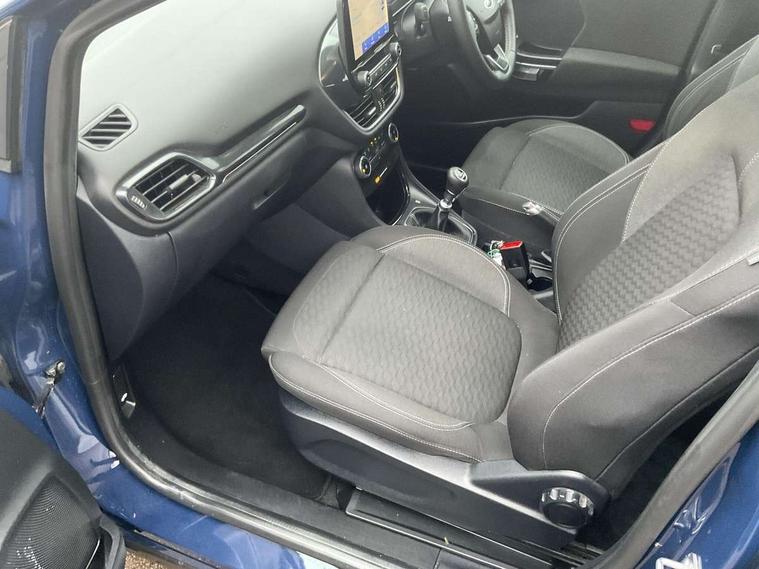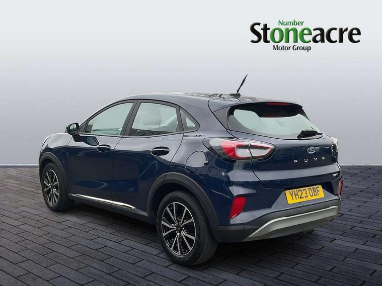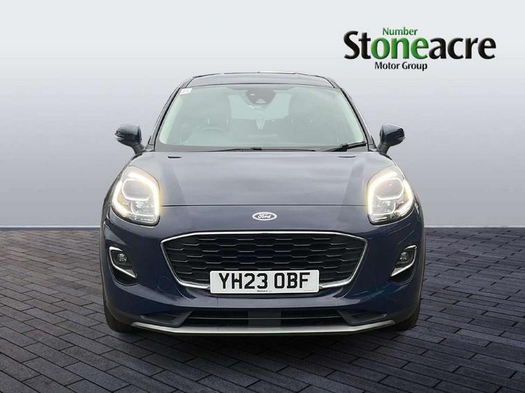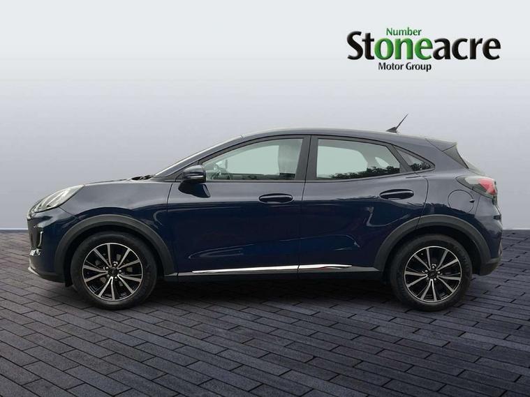 Driver impairment monitor, Emergency call service, Ford easy fuel, Lane keeping aid with lane departure warning, Power assist steering, Power start button, Rear parking sensor, Selectable drive modes(Normal, Eco, Sport, Slippery and Trail), Speed sign recognition, Standard suspension, Automatic headlights with auto high beam, Automatic rain sensing wipers, Body colour rear spoiler, LED rear lamps, Power foldable heated door mirrors with puddle lamps, Projector headlamps with LED day time running lights and front fog lamps, Quickclear heated windscreen, Rear side wing doors, Rear wiper, Third brake light, 3 seat bench in 2nd row, Centre console with armrest and stowage, Electronic automatic temperature control (EATC), Ford megabox extended bootspace, Front and rear head restraints, Front floor mats, Manual 2 way passenger seat adjustment, Manual 4 way driver seat adjust with lumbar adjustment, Sensico leather steering wheel/gear knob/handbrake, Single front passenger seat, Titanium cloth upholstery, Ford SYNC 3 navigation pack - Puma, 3 rear seatbelts, Child safety lock, Electronic stability control (ESC) and hill start assist, Pedestrian/cyclist detection & post-collision braking, Pre collision assist system, Tyre pressure monitoring system (TPMS), Thatcham alarm, 17" 10 spoke absolute black machined finish alloy wheel,