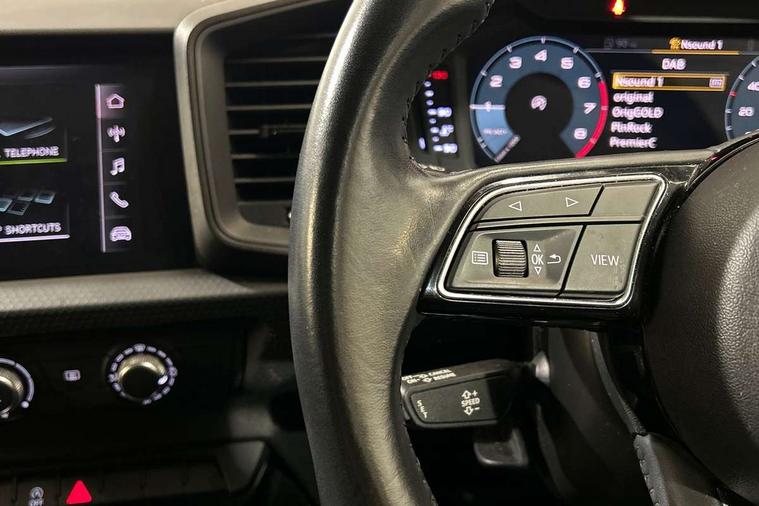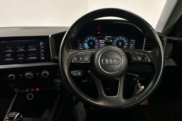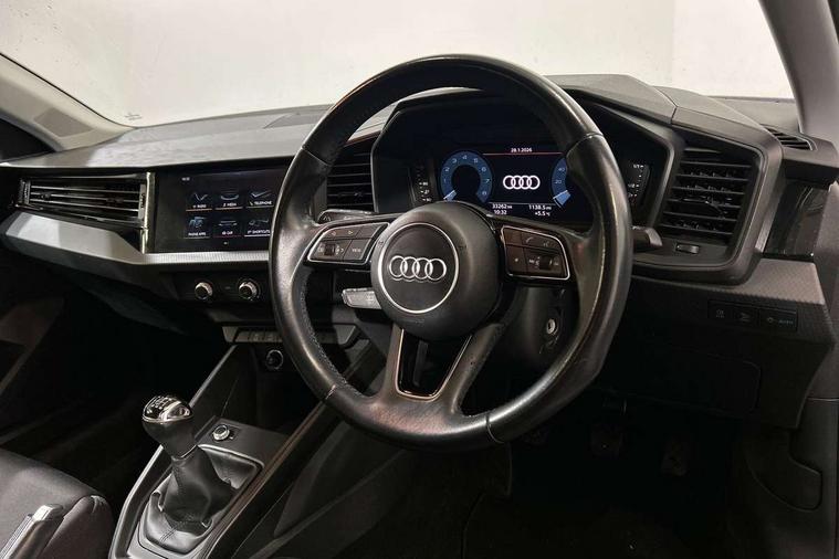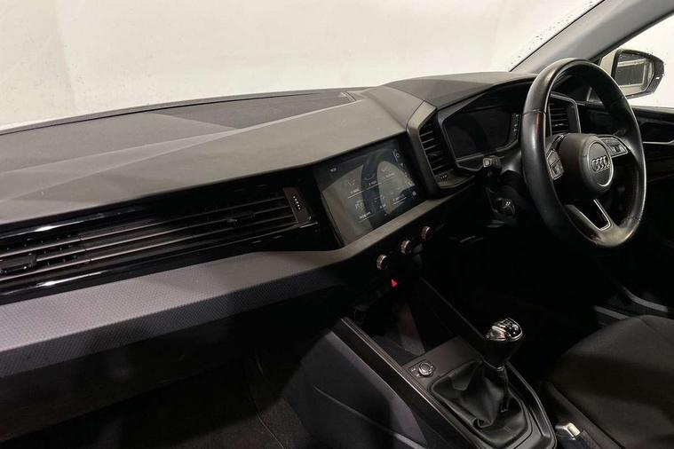 Black accent areas including air vents, door handle recesses and centre console in black, Black inlays polygon structure, 15" 5 arm design alloy wheels, Anti theft alarm, Anti theft wheel bolts and loose wheel warning, Audi pre-sense front with pedestrain and cyclist recognition, Immobiliser, Locking wheel bolts, Remote central locking with 2 remote folding keys, 1 x SDXC card reader, 1 x USB type C and 1 USB type A charging points, 6 passive loudspeakers, DAB Digital radio, MMI radio plus with 8.8" colour MMI display screen and MMI touch, 3x3 point rear seatbelts, Brake assist function, Driver and front passenger airbag with front side and head airbags, Electronic Stability Control including ABS, EBD, ASR and EDL, Front and rear seatbelt reminder, Front passenger airbag deactivation switch, Hill hold assist, Seatbelt height adjustment for front seats, Seatbelt monitoring, Tyre pressure warning light, Warning triangle and first aid kit, Auto dimming rear view mirror, Body coloured bumpers, Body coloured door mirrors, Electric front and rear windows, Front side air inlets with front spoiler lip and rear diffuser in matt black grained, Heat insulating glass windscreen and side windows, Heated rear windscreen, LED headlights with LED rear lights + dynamic rear indicators, Matt black radiator grille, Rain and light sensors, Rear fog lights, Rear wiper, 12V socket in centre console with two cup holders, 3 rear seats, 3 spoke leather multifunction plus steering wheel, Delta cloth upholstery, Driver and passenger seat with manual height adjust with forward and backwards adjustment, Front head restraints, Front/rear floor mats, Height and reach adjustable steering wheel, Illuminated glovebox, ISOFIX child seat mounting in front passenger and rear outer seats, Leather gear knob with aluminium trim, Leatherette handbrake grip, Luggage compartment light with front and rear reading lights, Rear head restraints, Split folding rear seats, Standard seats, Titanium grey cloth headlining, 10.25" Digital instrument cluster display screen, Audi connect safety emergency and service including E-call, Audi smartphone interface, Automatic start/stop system, Bluetooth interface, Electromechanical power steering, Lane departure warning system, Service interval indicator, Speed limiter, Voice control system, Washer fluid level indicator, Dynamic suspension,
