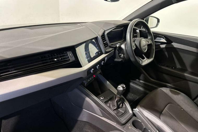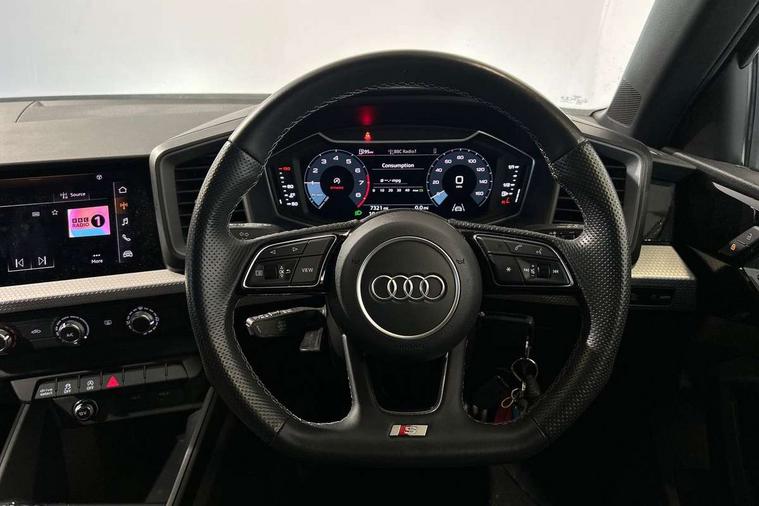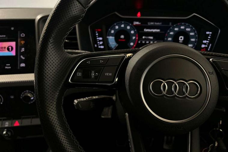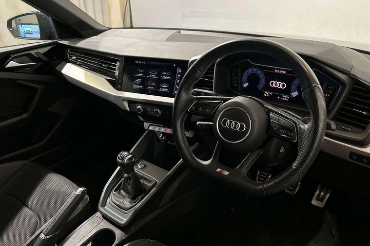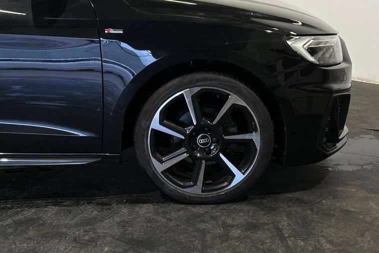 10.25" Digital instrument cluster display classis style instrument dials + speed, odometer, time, outside temperature, telephone menu + fuel level warning, Audi connect safety emergency and service including E-call, Audi drive select - power steering assistance + engine, Audi smartphone interface with connect compatible smartphone via USB directly MMI display + Nav, music, third party apps controlled via MMI controller, Automatic start/stop system, Bluetooth interface, Cruise control, Driver's information system, Electromechanical power steering, Emergency services call system, Lane departure warning system, Service interval indicator, Speed limiter, Voice control system, Washer fluid level indicator, Sports suspension, 1 x SDXC card reader, 2 x USB type C connection points, DAB Digital radio, MMI radio plus with 8.8" colour MMI display screen and MMI touch, Auto dimming rear view mirror, Black door mirrors, Black side skirts, Body coloured bumpers, Door sill trims with aluminium inlays and logo, Electric front and rear windows, Electrically adjustable, heated, folding door mirrors with integrated LED side indicator, Front side air inlets in grained matt black and C frame in titanium black, Heat insulating glass windscreen and side windows, Heated rear windscreen, High level LED brake light, LED headlights with LED rear lights + dynamic rear indicators + headlight adjustment and high beam, turning light + LED daytime running lights, Radiator protective grille frame in matt aluminium silver, Rain and light sensors, Rear diffuser strip in matt titanium black, Rear fog lights, Rear side wing doors, Rear wing door, Rear wiper, Side front spoiler lips in grained matt black, 12V socket in centre console with two cup holders, 3 rear seats with headrests, 3 seat bench in 2nd row, 3 spoke flat bottomed multi-function plus leather steering wheel with S badging, grips in preforated leather and contrast stitching, 40:60 Split folding rear seat or folded fully, Black cloth headlining, Driver and passenger seat with manual height adjust with forward and backwards adjustment, Front and rear black floor mats with contrast stitching in fine silver, Front head restraints, Front passenger seat, Height and reach adjustable steering wheel, ISOFIX child seat mounting for front passenger and outer rear seats including top tether attachment point of outer rear seats, Leather gear knob with aluminium trim, Luggage compartment light with front and rear reading lights, Manually adjustable lumbar support in front seats, Stainless steel pedals, Black styling pack - A1 Sportback Black Edition, LED interior lighting pack - A1, Luggage compartment pack - A1, 3x3 point rear seatbelts, Audi pre-sense front with pedestrain and cyclist recognition, Brake assist function, Driver and front passenger airbag with front side and head airbags, Electronic Stability Control including ABS, EBD, ASR and EDL, Front passenger airbag deactivation switch, Hill hold assist, Manual rear child locks, Seatbelt height adjustment for front seats, Seatbelt monitoring, Tyre pressure warning light, Warning triangle and first aid kit, Anti theft alarm, Anti theft wheel bolts and loose wheel warning, Immobiliser, Remote central locking with 2 foldaway keys, Aluminium trim for control switches, air vents and digital instrument cluster, Silver grey inlays polygon structure in diamond paint finish, Structured grey accent areas including air vents, door handle recesses and centre console in quartz paint finish, 18" 7 spoke rotor design alloy wheels in gloss anthracite black, diamond cut finish,