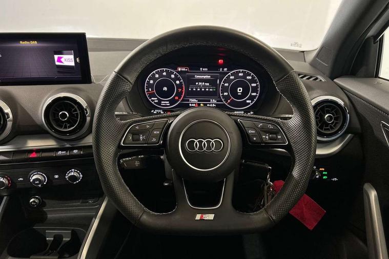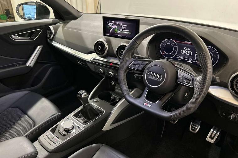 Audi connect navigation and infotainment includes innovative services, Audi connect remote and control connects your vehicle to your smartphone, Audi drive select, Audi drive select with efficiency, Audi smartphone interface, Audi virtual cockpit, Automatic start/stop system with recuperation, Bluetooth interface includes bluetooth audio streaming, Cruise control, E-call, MMI navigation plus with MMI touch, Power operated tailgate, Progressive steering, Rear parking sensors, 2 x SDXC card reader, 6 passive loudspeakers, DAB Digital radio, DVD Drive, Auto dimming rear view mirror, Black window trims, Bumper in full body colour paint finish, Electrically adjustable, folding, auto dimming and heated door mirrors with integrated LED side indicators, Front windscreen with grey tinted sunband, LED daytime running lights, LED headlights with LED rear lights, LED third brake light, Privacy glass - dark tinted rear and rear side windows from B-pillar backwards, Rear side wing doors, Rear wiper, Variable front intermittent wipers, Wheel arch trims in manhattan grey, 12V socket in front, 3 seat bench in 2nd row, 3 spoke flat bottomed multi-function leather sport steering wheel, 4-way electric lumbar support for front seats including seat height adjustment for both front seat, 60/40 split folding rear seat bench, Black cloth headlining, Front and rear head restraints, Front centre armrest, Front/rear floor mats, Height/reach adjust steering wheel, Illuminated door sill trims with S logo, Single front passenger seat, Stainless steel pedals, Black styling pack - Q2, 3x3 point rear seatbelts, 6 airbags - Front, curtain and front side airbags, Electromechanical parking brake, Electronic stabilisation control including ABS, ASR and EDL, Front passenger airbag deactivation, Hill hold assist, Pre-sense front with pedestrian recognition, Seatbelt monitoring, Tyre pressure warning light, Warning triangle and first aid kit, Anti theft alarm, Anti theft wheel bolts, Manual child locks, Remote central door locking, Aluminium interior element, Matt brushed aluminium trim inlays, Tool kit,