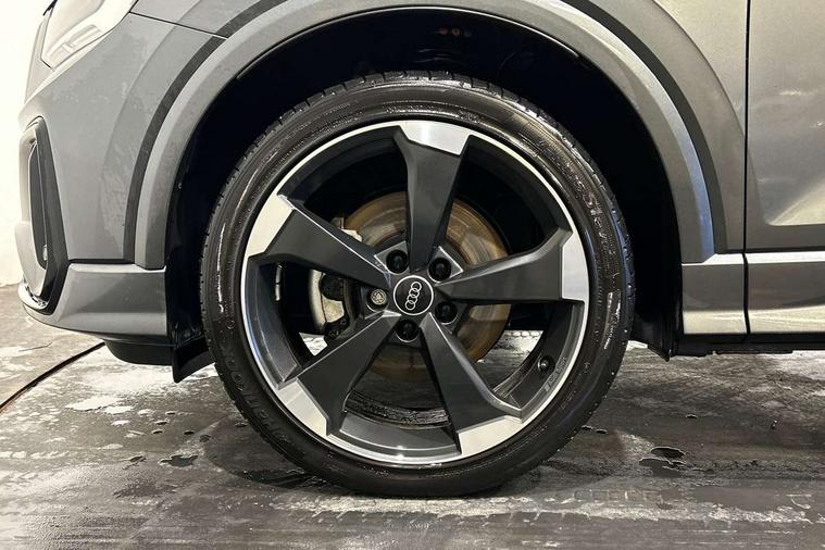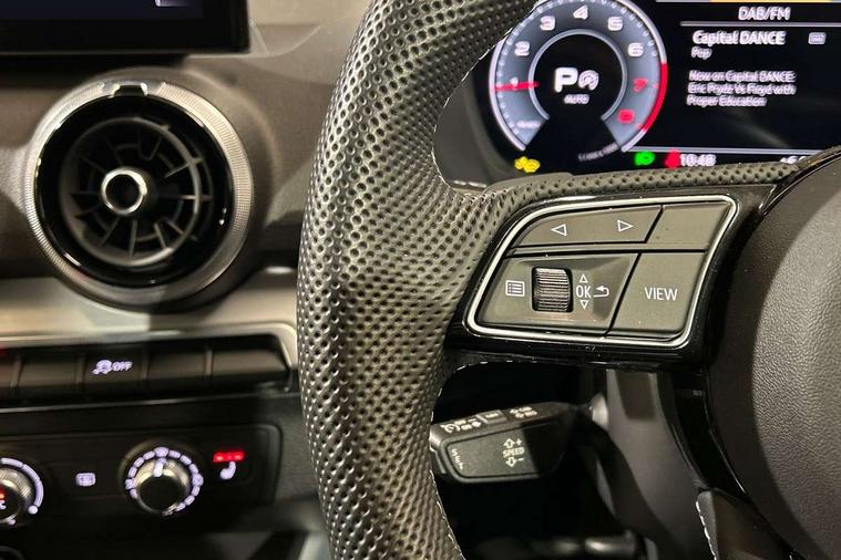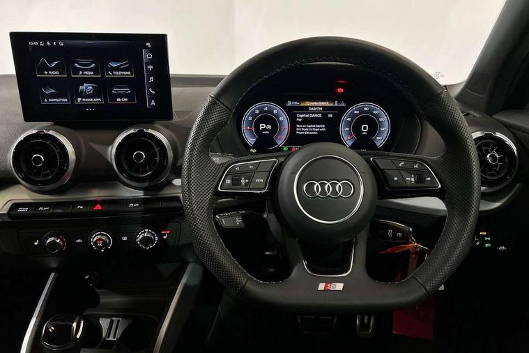 3D map display, Audi connect navigation and infotainment includes innovative services, Audi connect remote and control connects your vehicle to your smartphone, Audi drive select: S tronic - power steering assistance + engine + gearshift (modes: comfort, auto, dynamic, efficiency, individual), Audi smartphone interface - Apple carplay/Android Auto, USB connect, 2xSDXC card readers, voice control for navi, telephone, music and 3rd party apps, Audi virtual cockpit, Automatic start/stop system with recuperation, Bluetooth interface includes bluetooth audio streaming, Camera based traffic sign recognition, Cruise control, Distraction and Fatigue warning, E-call, Jukebox hard drive memory for music (10GB), Lane departure warning, MMI navigation plus with 8.8" touchscreen, Natural voice recognition, Power operated tailgate, Progressive steering, Rear parking sensors, Sport suspension, 6 passive loudspeakers, DAB Digital radio, USB type C port, Audi beam, Auto dimming rear view mirror, Black window trims, Bumper in full body colour paint finish, Electrically adjustable, folding, auto dimming and heated door mirrors with integrated LED side indicators, Front windscreen with grey tinted sunband, LED daytime running lights, LED headlights with dipped beam, high beam, position lights, indicators, LED rear lights, LED third brake light, Privacy glass - dark tinted rear and rear side windows from B-pillar backwards, Rear side wing doors, Rear wiper, Variable front intermittent wipers, Wheel arch trims in manhattan grey, 12V socket in front, 3 seat bench in 2nd row, 3 spoke flat bottomed multi-function leather sport steering wheel with gear shift paddles, 4-way electric lumbar support for front seats including manual seat height adjustment for both front seats, 60/40 split folding rear seat bench, Black carpets, Black cloth headlining, Front and rear head restraints, Front centre armrest, Front sport seats, Front/rear floor mats, Height/reach adjust steering wheel, Illuminated door sill trims with S logo, ISOFIX child seat mounting in front passenger and rear outer seats, Manual air conditioning, Single front passenger seat, Stainless steel pedals, Black styling pack - Q2, 3x3 point rear seatbelts, 6 airbags - Front, curtain and front side airbags, Electromechanical parking brake, Electronic stabilisation control including ABS, ASR and EDL, Front passenger airbag deactivation, Hill hold assist, Pre-sense front with pedestrian recognition, Seatbelt monitoring, Tyre pressure warning light with visual and acoustic warning, Warning triangle and first aid kit, Anti theft alarm, Anti theft wheel bolts, Electronically operated child locks, Remote central door locking, Aluminium interior element, Black dashboard, Gloss black centre console, Matt brushed aluminium trim inlays, Tool kit,