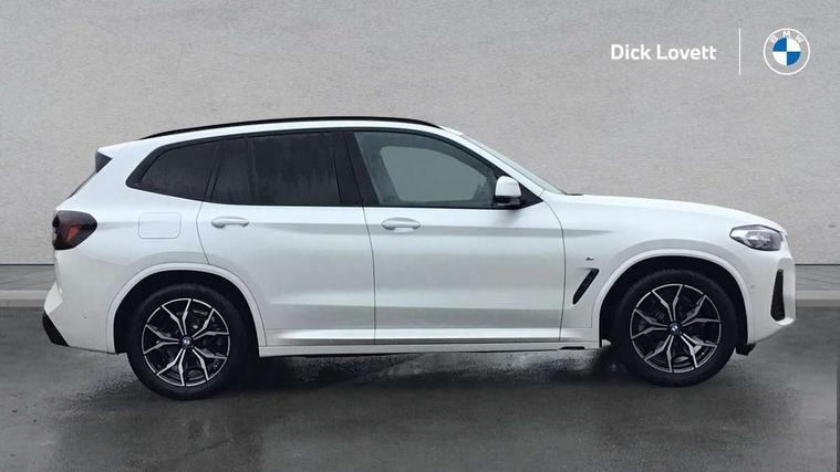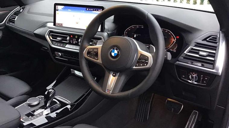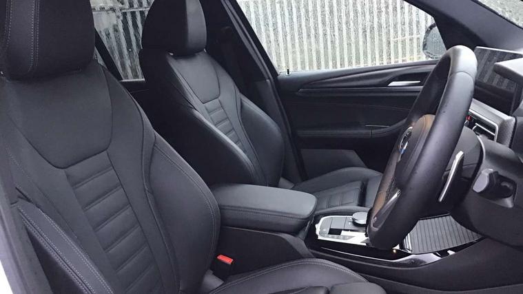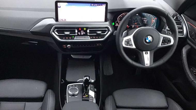 Active Guard, Attentiveness assist, BMW Live Cockpit Professional nav system including 12.3" instrument display + 12.3 high resolution control display, BMW Online services, BMW Teleservices, Brake pad wear indicator in front and rear, Check Control warning system for monitoring of lights and door/luggage compartment open warning, Condition based service - BMW service history, electronic service booklet, integrated owner's handbook, Connected drive services, Cruise control with brake function + speed limiter, Electric boot lid, Front/rear Parking distance control, iDrive Controller with 8 favourite buttons, Instrument cluster with speedometer with mph readout, tachometer, fuel gauge and oil temperature gauge, Lights on warning by audio warning signal when ignition is switched off, Oil sensor for level and grade, warning by check control system, On board computer - average speed+fuel consumption, service interval, clock/date, odometer/trip meter, outside temperature display and ice warning, Optimum shift indicator, Personal Profile - automatic lock when driving away selectable, Stop/start system, Variable sports power steering, Automatic transmission with gearshift paddles, Diesel particulate filter, Drive performance control with ECO PRO comfort + sport mode, Incorrect fuelling protection, Larger capacity fuel tank, M sport suspension, Multi-link rear suspension, Performance Control, BMW professional radio/CD/MP3, DAB tuner, Acoustic glazing, Automatic windscreen wipers and automatic headlight, Black finish on B pillars, Body colour door handles, Body colour electric adjust heated aspherical door mirrors, Body colour roof mouldings, Body coloured bumpers, Direction indicator, side repeaters, integrated in exterior mirrors, Dynamic brake lights, Exhaust tailpipes - dual, round, split left and right with chrome finisher, Fingertip control / anti-trap function on electric window, Folding wing mirrors with auto dimming, Follow me home headlights, Front and rear bumper system with replaceable deformation elements, Front and rear electric windows, Gloss chrome tailpipes finishers, Green tinted heat insulating glass, Heated windscreen washer jets, High beam assistant, High gloss black shadow line roof rails, High gloss shadowline exterior trim in decorative moulding side frame/recess cover/guide rail/B, C pillars/mirror frame and triangle with mirror base, High level 3rd brake light incorporating LED Technology, Interior rear view electrochromatic mirror with automatic anti dazzle function, LED tail lights, Lightweight engineering, M aerodynamic bodystyling, Model designation, Rear side wing doors, Rear wing door, Rear wiper, Shark fin antenna, Side exterior M designation badges, Visible VIN plate, Welcome lighting, Windscreen wipers with adjustable interval, 12V power socket in front centre console, 3 rear headrests, 3 zone automatic air conditioning, 4 lashing points to secure luggage, 40:20:40 split folding rear seat with loading system, 5 seats, Ambient lighting, Anthracite headlining, Automatic interior light when door is opened/ignition switched off or via remote key, Foldable storage floor with compartment, Four grab handles integrated in roof lining, Front and rear bottle holders integrated into door trim storage compartments, Front and rear side armrests integrated into door trim, Front centre armrest with storage compartment, Front footwell lights, Front head restraints, Front sports seats, Front/rear courtesy lights with soft on/off dimming, Front/rear reading lights, Heated front seats, Isofix rear child seat preparation, Leather gear knob, Luggage area underfloor compartment, Luggage compartment lighting, M sport leather steering wheel, Multifunction steering wheel, Parcel shelf removeable and storable under boot floor, Reach and rake adjustable steering column, Rear centre armrest with 2 cupholders, Removable / retractable luggage cover, Seat backrest width adjustment, Slope adjustable rear seats, Storage compartment in rear centre console and front/rear door trims, Sun visors with vanity mirrors and ticket pocket, Toolkit located in luggage compartment, Two front cupholders with removable oddments tray/lid, Vernasca leather upholstery, Connected pro pack - X3, Driving assistant pack - X3, ADB - Automatic Differential Brake, Anti-lock braking system (ABS) with brake assist, Automatic Stability Control (ASC), Battery safety cut-off, BMW emergency call, Brake drying, Brake energy regeneration, Braking pre-tensioning, Child locks on rear doors, Cornering brake control (CBC), Crash Sensor - activation of central locking release, hazard warning light and interior lighting, Deactivation of fuel pump in the event of a crash, Driver and front passenger front and side airbags with passenger deactivation and ITS front and rear head airbags, DSC+, Dynamic brake control, Dynamic Traction Control - DTC, Electromechanical parking brake, Hill descent control, Hill start assist, Seatbelt security check for front seats, Side impact protection, Three point seatbelts to all seats with front and outer rear pyrotechnic belt tensioners and seat belt force limiters, Two tone horn, Tyre pressure sensor, Ventilated front and rear disc brakes, Warning triangle and first aid kit, Central locking switch for all doors, fuel filler cap and luggage compartment, Electronic engine immobiliser, Locking wheel nuts, Remote control including two integrated key - one button for open/close all lockable content, windows and separate button for open luggage compartment, Remote control Thatcham category 1 alarm, Start/stop button with Comfort Go keyless engine start and auto Start/stop deactivation button, Low rolling resistance tyres,