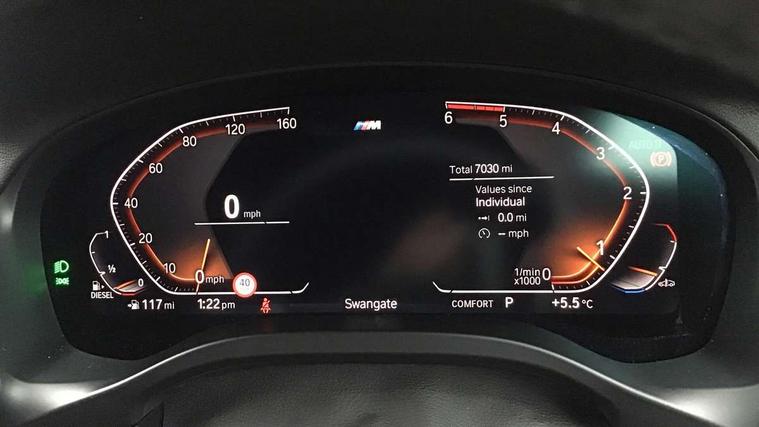 Active Guard Plus incl front collision warning with brake intervention, Attentiveness assist, Automatic operation of tailgate, BMW ConnectedDrive online services, BMW Live Cockpit Professional Nav with 12.3" instrument display + 12.3" control display, Intelligent Voice Assist, BMW OS 7, HDD, 2USB, 4G LTE connect, BMW Teleservices, Brake pad wear indicator in front and rear, Check Control warning system for monitoring of lights and door/luggage compartment open warning, Condition based service - BMW service history, electronic service booklet, integrated owner's handbook, Driving experience switch, Electric bootlid, iDrive touch controller with turn and press function, Instrument cluster with speedometer with mph readout, tachometer, fuel gauge and oil temperature gauge, Instrument panel in sensatec material, Language version English, Lights on warning by audio warning signal when ignition is switched off, Oil sensor for level and grade, warning by check control system, On board computer - average speed+fuel consumption, service interval, clock/date, odometer/trip meter, outside temperature display and ice warning, Optimum shift indicator, Park distance control (PDC), Personal Profile - automatic lock when driving away selectable, Servotronic system, Variable sports power steering, Automatic transmission with gearshift paddles, Common rail technology, Diesel particulate filter, Double joint spring strut front axle, Drive performance control - ECO PRO, comfort and sport modes, EU6 emissions management, Five link rear suspension, Larger capacity fuel tank, M sport suspension, Multiple control arm rear axle, Performance Control, Twin scroll turbocharger with variable vane geometry, 2x USB Type C ports in front centre console for charging and data transfer, 2x USB Type C ports in rear centre console for charging, BMW professional radio/CD/MP3, DAB tuner, Acoustic glass, Automatic parking function on passenger's side exterior mirror, Automatic windscreen wipers and automatic headlight, Black finish on B pillars, Body colour door handles, Body colour mirror caps, Body colour roof mouldings, Body colour roof spoiler, Body coloured bumpers, Chrome exhaust tailpipes in split left and right, Chrome kidney grille with high gloss black vertical slats, Direction indicator, side repeaters, integrated in exterior mirrors, Door sill strips, Dynamic brake lights, Electric folding wing mirrors with auto dimming, Electric front and rear windows with fingertip open/close + anti-trap facility and comfort closing function, Electrically adjustable and heated door mirrors, Electro-chrome auto-dimming rear view mirror, Electrochromic driver side exterior mirror, Energy absorbing foam within the front bumper, Follow me home headlight function, Front and rear bumper system with replaceable deformation elements, Full LED L shape 3D tailights, Glacier silver metallic matt in side sills, Gloss chrome tailpipes finishers, Green tinted heat insulating glass, Headlight beam throw control, Heated windscreen washer jets, High gloss black front door sill finishers with BMW designation, High gloss shadow line exterior trim, LED High level third brake light, LED rear lights, Lightweight engineering, M designation side exterior badges, Mirror base in black matt, Model designation, Rain sensor + automatic driving lights control, Rear side wing doors, Rear wiper, Reversing lights, Shark fin antenna, Tinted passenger side exterior mirror, Visible VIN plate, Windscreen wipers with adjustable interval, 12V power socket in front centre console, 12V power socket in front storage compartment, 3 seat bench in 2nd row, 3 zone automatic air conditioning, 40/20/40 split folding rear seats with backrest, Anthracite headlining, Foldable storage floor with compartment, Front and rear bottle holders integrated into door trim storage compartments, Front and rear door exit lights, Front and rear footwell lighting, Front and rear side armrests integrated into door trim, Front centre armrest with storage compartment, Front passenger seat, Front sports seats, Front/rear reading lights, Heated front seats, Height adjustable front/rear head restraints, Leather gear knob, Lockable glove compartment, Luggage compartment lighting, M Sport multifunction leather steering wheel, Make-up mirror lights, Microfilter and active carbon filter, Parcel shelf removable and storable under boot floor, Reach + rake adjustable steering column, Rear centre armrest with 2 cupholders, Storage compartment in rear centre console and front/rear door trims, Storage compartment lighting in front center armrest, Storage tray and compartment with cover in centre console, Sunvisors with vanity mirrors and ticket pocket, Three rear headrests, Through loading system, Toolkit located in luggage compartment, Two front cupholders with removable oddments tray/lid, Two lashing eyes in luggage compartment, Velour floor mats, Visual exit area and front and rear door recognition, Welcome light (no extra light) with illumination in the colour white, Ambient lighting pack - X4, Connected package pro - X4, M Aerodynamic pack - X4, Non Smokers pack, 3 point seatbelts on all seats, ADB - Automatic Differential Brake, Anti-lock braking system (ABS) with brake assist, Automatic Stability Control (ASC), Battery safety cut-off, BMW emergency call, Brake drying, Brake energy regeneration, Braking pre-tensioning, Child proof locking system in rear door, Child seat ISOFIX attachment rear outer seats, Cornering brake control (CBC), Crash Sensor - activation of central locking release, hazard warning light and interior lighting, safety battery terminal clamp and trigger e-Call, Deactivation of fuel pump in the event of a crash, Driver and front passenger knee airbag, Driver and passenger side airbags, body protection at side and airbags deploy from seat backrests, Driver/front passenger airbag, Dynamic brake control, Dynamic stability control + (DSC+), Dynamic Traction Control - DTC, Electromechanical