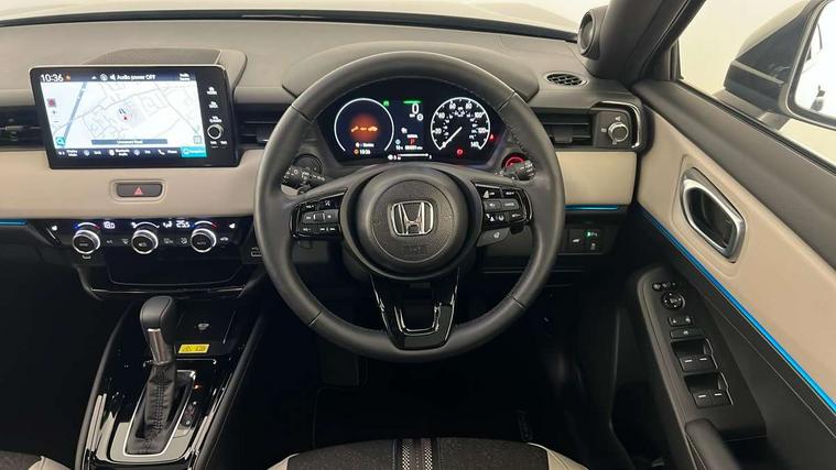 7" TFT instrument cluster, Adaptive cruise control, Adjustable speed limiter, Agile handling assist, BLIS (Blind Spot Information System) with Cross Traffic Monitor, Bluetooth hands free telephone connection, Drive modes select (Eco, normal and sport), Driver attention monitoring system, eCall emergency system, Econ mode, Emergency stop signalling system, Forward collision warning, Front parking sensors, Handsfree power tailgate with walkaway close, Honda CONNECT with Navigation 9" touchscreen, AM/FM/DAB, Apple Carplay and Android Auto, live traffic info, Idle stop, Intelligent speed limiter, Lane departure warning, Lane keep assist, Low speed following, Multi info display, Multi view camera, Power meter, Rear parking sensors, Road departure mitigation, Tachometer, Traffic jam assist, Traffic sign recognition, Variable gear ratio electric power steering, WiFi connectivity, Wireless apple carplay, Wireless charger, Vehicle stability assist, 10 speakers includes premium audio, centre speaker, front tweeter and subwoofer, 2 USB sockets in rear, 2x USB Front socket (1 data & 1 charge), Steering wheel mounted remote controls, Adaptive driving beam, Auto dimming rear view mirror, Auto headlight adjuster, Automatic headlights, Automatic headlights with on/off timer, Coming/leaving home function, Automatic rain sensing wipers, Body colour bumpers, Body colour tailgate spoiler, Body coloured door handles, Dark colour roof lining, eHEV emblem, Electric front and rear windows, Electrically adjustable, heated and folding door mirrors, Exclusive styling in black lower bumper, fog garnish and bumper skid garnish, black lower door garnish with blue accent/trio colour oranment on grille, Exclusive styling in Piano black front console garnish, blue stripe garnish on door and instrument panel, blue stiches on seats, Exterior mirror tilt for reverse, Fixed panoramic glass roof, Headlight washers, Heated front windscreen, Heated rear window, High gloss window garnish, LED 3rd brake light, LED cornering lights, LED daytime running lights, LED front fog lights, LED front sequential turn, LED headlamps, Privacy glass, Rear side wing doors, Rear wiper, Red and clean lens LED rear lights, Shark fin antenna, Two tone roof, Variable front intermittent wipers, Windscreen shadeband, 3 rear headrests, 3 seat bench in 2nd row, 60/40 split folding rear seat, Accessory sockets in front, Ambient lighting on roof, Blue interior panels, Cargo net hooks, Courtesy lights, Driver seat back pocket, Driver's seat manual height adjust, Driver/passenger sunvisors with illuminated vanity mirrors, Dual automatic air conditioning, Front head restraints, Front map lights, Front seat armrests, Genuine leather shift knob, Genuine leather steering wheel, Heated front seats, Heated steering wheel, Isofix points, Luggage floor box, Magic seats, Meter illumination light, Normal pedals, Paddle shift controls, Passenger seat back pocket, Rear centre armrest, Rear reading lights, Rear ventilation, Silver interior door handles, Single front passenger seat, Synthetic leather and fabric upholstery, Tilt/telescopic adjustable steering wheel, Tonneau cover, Trunk light, 3x3 point rear seatbelts, ABS+EBD+Brake assist, Automatic brake hold, Collision mitigation braking system, Collision mitigation throttle control, Deflation detection system, Driver and front passenger airbags, Driver SRS airbag (single stage inflation), Electric child locks, Electronic parking brake, Front and rear curtain airbags, Front and rear safety belts with Emergency Locking Retractor, Front side airbags, Hill descent control, Hill start assist, Low speed brake system, Paddle deceleration control, Passenger SRS airbag cut-off device, Regenerative braking system, Whiplash lessening front headrests, Immobiliser, Mirrors and windows key fob operation, Remote central locking with 2 remote folding keys, Security alarm, Smart entry and start system, Superlocking, Tyre repair kit,