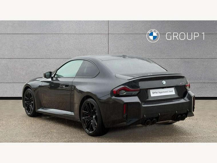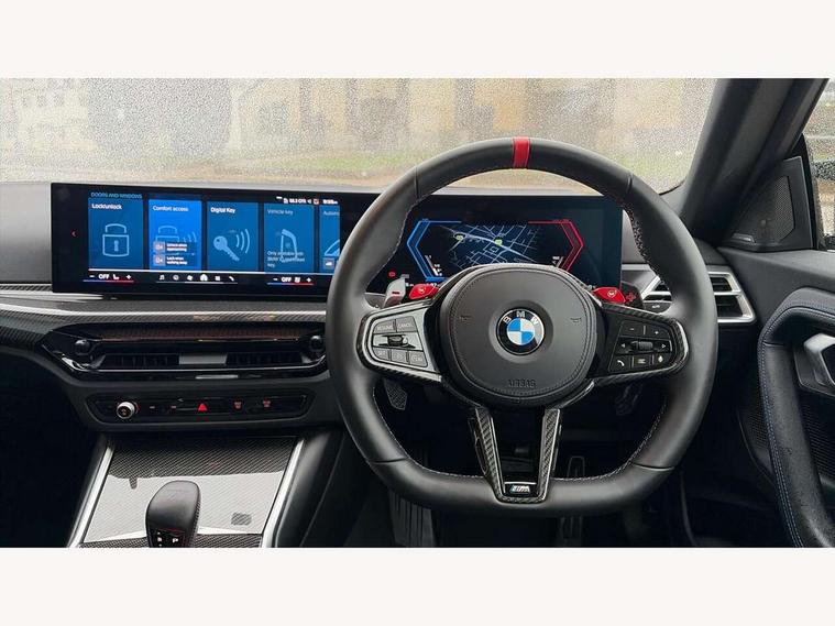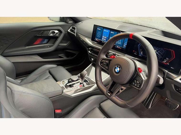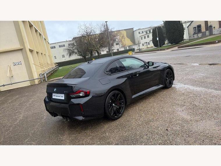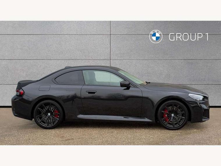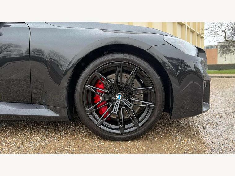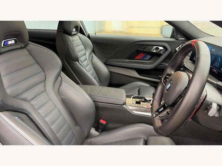 Active Guard, BMW ConnectedDrive online services, BMW legal emergency call, BMW Live Cockpit Professional including Full colour Head up display with configurable HUD contents, BMW Teleservices, Check control system, Configurable dashboard display, Control Infotainment, Digital owner's manual, Drive off assistant, Driver attention warning, Engine start button, Exterior temperature display, Flat tyre monitor, Language version English, Oil sensor for level and grade, On board diagnostics, On board documentation English, PAS, Service interval indicator, Shifting point display, Start/stop system, Storage for wireless charging, Travel data recorder, Trip computer, Voice control for audio, climate, telephone, navigation, Widescreen display, M Adaptive suspension, M Drive Professional including track mode, laptimer, traction control & Drift analyser, M Sport differential, M steptronic sport transmission with drivelogic, DAB tuner, Harman/Kardon surround sound audio system with 464W power digital amplifier, 9 channels and 14 speakers, Harman/Kardon surround sound system, Personal eSim, Adaptive LED Headlights, Automatic headlamp activation, Automatic headlamp levelling, Door mirror integrated indicators, Dynamic brake lights, Electric adjustable heated door mirrors, Electrochromic interior rear view mirror, Exterior mirrors with memory function and automatic parking function, Fading support, Follow me home headlights, Front and rear bumper system, Front electric windows, Headlight beam throw control, Heat protection, sun protection glazing, High beam assistant, LED 3rd brake light, LED daytime running lights, LED indicator lights, LED number plate light, LED rear lights, M high gloss shadowline extended, M high gloss shadowline exterior trim in mirror triangle cover, mirror cover panel, mirror bezel and window border, M lights shadowline, Rain sensor, Rear boot, Sun protection glass, Trailer stabilisation logic, Variable front intermittent wipers, 12V power socket in front centre console with blanking plug, 2 cupholders, 2 rear head restraints, 2 rear seats, 3 spoke leather M multi-function steering wheel, Ambient lighting, Black velour front and rear floor mats, Compartment in front of cupholder, Driver and front passenger heated seats, Driver/passenger electric lumbar adjustment, Electrically adjustable front seats - driver seat with memory, English handbook, Folding rear seat head rests, Front and rear door exit lights, Front and rear footwell lights, Front centre armrest, Front door pockets with bottle holders, Front door sill strips with aluminium inlays and M2 labelling, Front interior light, Front M Sport seats, Front reading lights, Glove compartment, Glovebox light, Heated steering wheel, Height adjustable front headrests, Illuminated armrest storage compartment, Isofix child seat for two outer rear seats, Luggage compartment lighting, M Accent Surfaces Illuminated: Highlighters in the door trim inlay panels and light module in the instrument cluster with M stripes, M Anthracite headlining, Manually adjustable steering column, Rear armrest, Single front passenger seat, Storage compartment in rear doors, Storage tray and compartment with cover in centre console, Through loading system with 40/20/40 split folding rear seat, Two zone automatic air conditioning, Vanity mirror lights, BMW Live cockpit plus pack - M2, Comfort access pack - M2, Connected package professional - M2, Driving Assistant package - M2, Interior and exterior mirror package - M2, Parking assistant package - M2, Storage compartment package - M2, 4 x 3 point seatbelts, ABS/EBD, Automatic Stability Control (ASC), Cornering brake control (CBC), Crash sensor, Curtain airbags, Dry braking, DSC - Dynamic Stability Control, Dynamic brake control, Electromechanical parking brake, Emergency door unlock, First aid kit, Front airbags for driver and front passenger, Front passenger airbag deactivation, Head airbags for all 4 outer seats, Height adjustable front seatbelts, M seat belts, PC iBrake (Post crash approach control warning with light braking function), Seatbelt pretensioners with load limiters, Seatbelt reminder, Side airbags for driver and front passenger, Tyre pressure monitoring system, Warning triangle, Alarm system, Drive away door locking, Immobiliser, Locking wheel bolts, Remote central locking, Tyre repair kit,