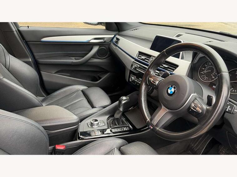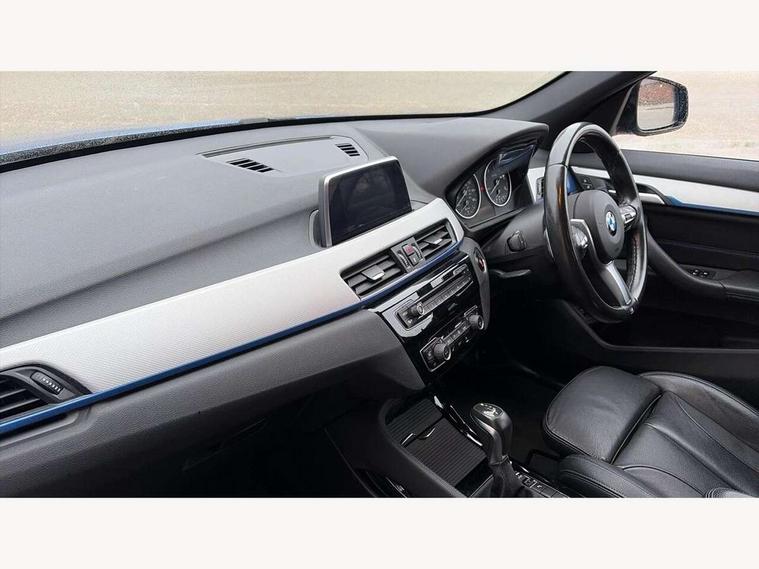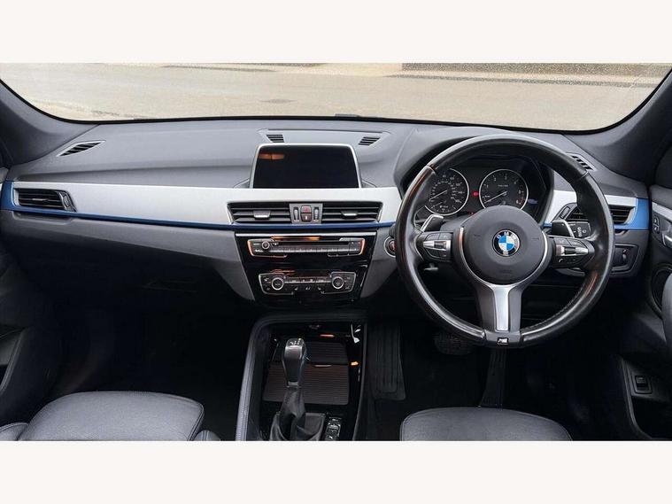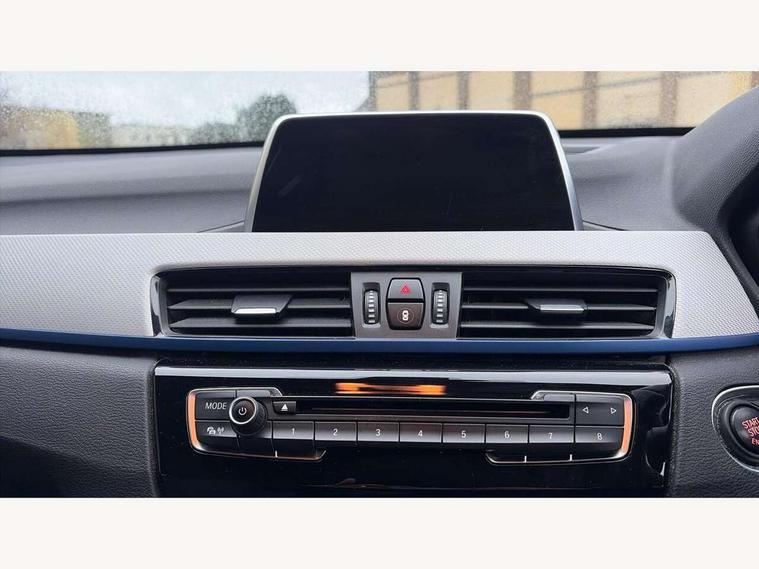 Active Guard incl speed limiting and lane departure functions with auto steering, and front collision warning with brake intervention, Ambient temperature display, Attentiveness assist, Automatic tailgate opening, BMW Online services, BMW remote services, BMW Teleservices, Lights on warning, On board computer, Outside temperature gauge, Real time traffic information, Service interval indicator, Speed limiter, Stop/start button, Tyre puncture warning system, Diesel particulate filter, Electronic differential lock, Performance Control, 2 USB ports in centre console, BMW professional radio with CD player, DAB Digital radio, USB/audio interface, Adaptive LED Headlights, Adjustable headlights, Body colour bumpers, Body colour door handles, Body colour door mirrors, Chrome tailpipe finisher, Electrically adjustable and heated door mirrors, Fingertip control / anti-trap function on electric window, Follow me home headlights, Front and rear electric windows, Front fog lights, Heat insulating tinted glass, Heated windscreen washer jets, kidney grille with high gloss black vertical slats, LED daytime running lights, M door entry sills, Rain sensor including auto headlights activation, Rear window wash/wipe, Twin chrome exhaust tailpipes x2, Welcome home function, 12v power point in centre console, 12V power socket in passenger footwell, 3 rear headrests, 3 spoke sport nappa leather steering wheel, 4 grab handles, Anthracite headlining, Boot light, Centre console with cupholders, Driver/passenger sunvisors with ticket holders, Drivers folding storage compartment, Dual zone automatic air conditioning, Front and rear door armrests, Front centre armrest/sliding cover, Front passenger isofix child seat attachment, Front sports seats, Front/rear adjustable head restraints, Heated front seats, Illuminated glovebox, Isofix rear child seat preparation, Leather gearknob/gaiter/handbrake grip, LED ambient lighting in door trim, Luggage area underfloor compartment, Luggage compartment lighting, Multifunction steering wheel, Rake/reach adjustable steering wheel, Sliding/split/reclining 40/20/40 rear seat with 60/40 split rear seat base, Steering wheel gearshift paddles, Velour floor carpets, Extended storage package - X1, 3 rear 3 point seatbelts, ABS/EBD, Audio/visual collision warning system, Automatic Stability Control (ASC), BMW emergency call, Cornering brake control (CBC), Crash Sensor - activates hazard/interior lighting + unlocks doors, Driver/Front Passenger airbags, Driver/front passenger side airbags, DSC - Dynamic Stability Control, Dynamic brake control, Dynamic Traction Control - DTC, Electronic parking brake, Front and rear head airbags, Front passenger airbag deactivation, Front seatbelt force limiters, Hill start assist, Pyrotechnically pre-tensioned front seatbelts, Rear door child safety locks, Seatbelt warning, Tyre pressure monitor, Warning triangle and first aid kit, Auto door lock when driving, Central locking including boot and fuel flap with deadlocks, Engine immobiliser, Locking wheel nuts, Remote control Thatcham category 1 alarm, High gloss black centre console, Low rolling resistance tyres,