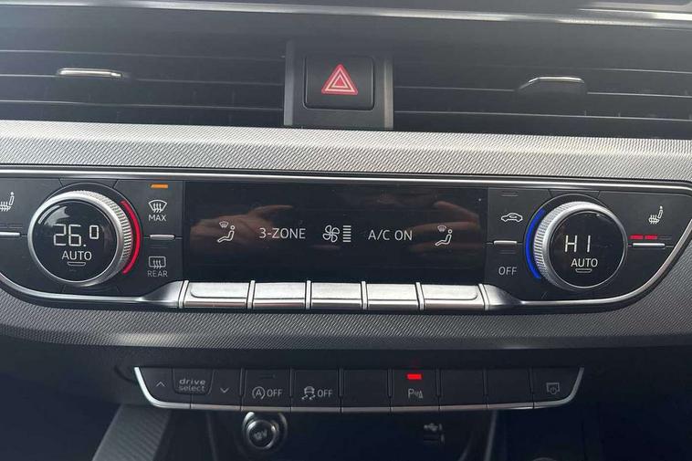 Audi connect safety and service (e-call), Audi drive select, Audi parking system plus with front and rear sensors, Audi smartphone interface, Audi virtual cockpit, Automatic start-stop system with coasting functionality and efficiency programme, Bluetooth interface, Cruise control system with speed limiter, Electromechanical power steering, MMI Navigation plus with MMI touch includes 10.1" high resolution colour MMI display, 3D map, Power operated tailgate, Rear view camera, Voice control system, Comfort dynamic suspension, 2 USB charging ports, 8 passive loudspeakers, DAB digital radio reception, Aluminium roof rails, Auto dimming rear view mirror, Body coloured door mirrors, Electrically folding auto dimming/adjustable/heated door mirrors with LED side indicators and kerb view function for passenger side, LED headlights and rear lights with LED daytime running lights, New design rear diffuser, Rain and light sensors, Windscreen with acoustic glazing, 3 spoke high multi-function leather sports steering wheel with paddle shift, 4 way electric lumbar support for driver and front passenger, 40/20/40 split folding 3 rear seat bench in 3 parts with rear centre armrest, Deluxe 3 zone electronic climate control, Door sill trims with aluminium inlay, Electric load area cover, Front and rear head restraints, Front centre armrest, Heated front seats, Interior lighting, ISOFIX child seat mounting and top tether, Manual seat adjustment, High gloss package - A4, 3 rear seatbelts, 6 airbags - Driver, front passenger, curtain and side windows, Electronic Stabilisation Control (ESC) including ABS, ASR and EDL, Hill hold assist, Multi collision brake assist, Pop-up bonnet for pedestrian protection, Pre sense city, Seatbelt monitoring, Warning triangle and first aid kit, Anti theft alarm, Anti theft wheel bolts, Keyless Go, Tool kit, Tyre repair kit,
