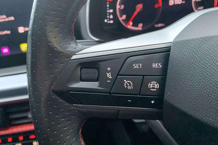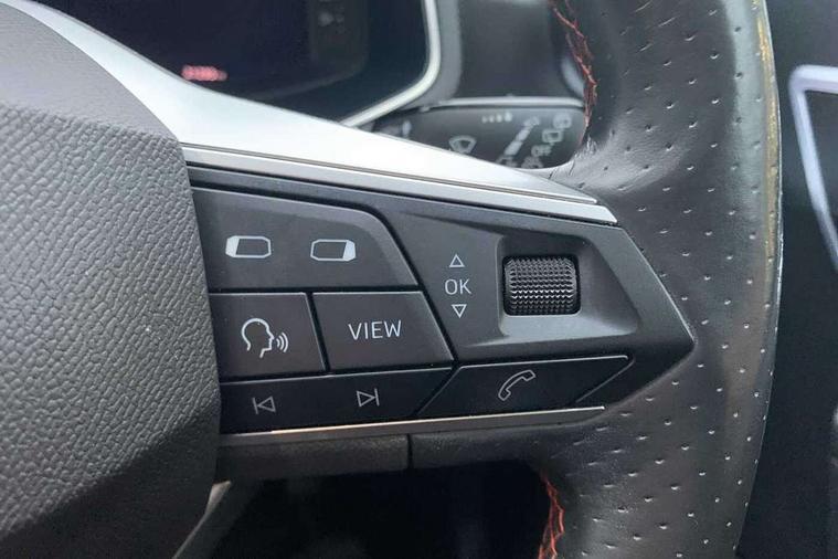'Lights On' Reminder warning buzzer, 9.2" touchscreen navigation system with type C USB socket, Voice control and DAB/AM/FM radio, Auto start and stop system, Bluetooth audio streaming with handsfree system, Digital clock, Digital cockpit, E-call, Full link smartphone integration with mirror link, wireless apple carplay, Google android auto + USB Type C cable for apple and android devices, Lane assist, Low fuel warning light, Outside temperature gauge, Power Steering, Seat connect with safety, service, remote and online, SEAT drive profiles and ECO function, SEAT logo boot release, Speed limiter, Trip computer, Sports suspension, Auxiliary input socket, Radio/MP3 player, SD card slot, Steering wheel mounted controls, Anti theft roof antenna, Auto dimming rear view mirror, Automatic rain sensing wipers, Black door mirrors, Body colour bumpers, Body colour door handles, Brilliant black window surrounds, Dark tinted rear windows, Electric adjustable/heated/folding door mirrors, Electric front windows, Electric headlight adjustment, Electric rear windows, Front/rear fog lights, FULL LED automatic headlights with dynamic headlight range control, coming and leaving home, LED daytime running lights, LED tail lights, Rear side wing doors, Rear spoiler with FR twin exhausts, Rear wiper, Third brake light, 3 seat bench in 2nd row, 60/40 split folding rear seat, Ambient interior lighting, Chrome detailing and black headlining, Comfort seats, Dual zone climate control with combination filter, Front courtesy lights, Front cupholders x 2, Front reading lights, Gear shift indicator, Glovebox, Height adjustable front and rear headrests (five), Height adjustable front seats, Height/reach adjust steering wheel, Illuminated air vent surrounds, Illuminated boot, Instrument lighting with brightness control, Isofix, Leather multifunction flat bottomed sports steering wheel, Microsuede cloth upholstery, Passenger sunvisor, Single front passenger seat, Storage pockets on back of front seats, Sunvisors with mirror and driver side card holder, 3 point seatbelts on all 3 rear seats, ABS, Active front headrests, Child locks on rear doors, Electronic stability control, Energy recovery system, Front assist forward collision warning and autonomous emergency braking, Front driver and passenger side airbags with curtain airbag and front passenger airbag deactivation, Hill hold control, Multi-Collision braking, Seat belt reminder for front and rear seats, Tiredness recognition system, Tyre pressure monitoring system, Electronic engine immobiliser, Locking wheel bolts, Perimeter alarm and interior monitoring with backup horn and tow away protection, Remote central locking + deadlocks, 18" Performance machined alloy wheels in black and grey,