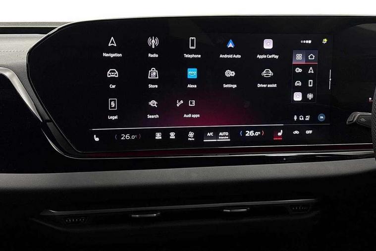 Adaptive cruise control, Advanced driver attention and fatigue montior, Audi application store, Audi assistant, Audi connect emergency call and service, Audi drive select, Audi smartphone interface, Audi virtual cockpit plus with 11.9" OLED colour display, Automatic start/stop system with coasting functionality, Camera based traffic sign recognition, Intersection assist, Lane departure warning, MMI navigation plus with high resolution 14.5" OLED touchscreen colour display, Park assist plus, Parking system plus with 360 display, Progressive steering with servotronic, Rear view camera, Swerve assist and turn assist, Traffic sign based speed limiter, Sports suspension lowered by 20mm, 2 USB-C ports in both the front and rear, Audi sound system impressive sound with 10 loudspeakers including centre speaker and subwoofer, 6-channel amplifier with a total output of 180 watts, DAB digital radio reception, Smartphone compartment with wireless charging, Aluminium window trims, Auto dimming rear view mirror, Body colour door mirrors, Door mirrors - electrically adjustable, heated, folding and auto dimming on both sides, Front and rear electric windows, Front door sill trims with aluminium inlays, illuminated with 'S' logo, High beam assist, LED headlights Plus incl. digital daytime running lights, turning light, all-weather light, motorway light, manouevring light and intersection light, LED rear lights pro incl. dynamic rear indicators and illuminated light strip with animated coming and leaving home function, LED third brake light, Privacy glass, Rear and side windows with heat insulating glass, Rear boot, Rear side wing doors, S Line badges on the front wings, S line bumpers, radiator grille and diffuser in phantom black and diffuser insert in matt anthracite, White rhombus logo projection light in exterior mirrors, Windscreen with acoustic glazing, 3 rear headrests, 3 seat rear bench, 3 spoke leather steering wheel with multi-function buttons with touch control, flattened on top and bottom, with S badging and contrast stitching, 3-zone automatic climate control, 40:20:40 split folding rear seat bench with centre armrest and cup holders, Comfort front centre armrest, Front and rear floor mats, Front seats with manual adjustment for position and 4-way electric lumbar support, Front sport seats with integrated headrest and S embossed logo, Headlining in black cloth, Heated front seats, i-Size child seat mounting on the front passenger side and outer rear seats, i-Size and top tether on the outer rear seats, Luggage compartment lid, electrically opening and closing, Manual steering column height and depth adjustment, Single front passenger seat, Stainless steel pedals and footrest, Steering wheel grips in perforated leather and shift paddles, Ambient lighting package plus - A5, 3x3 point rear seat belts, Driver airbag, Electric child safety locks, First aid kit with warning triangle and vests, Front emergency brake assist, Front passenger airbag, Front passenger airbag deactivation, Front side airbags with head airbag system and front interaction airbag, Hill hold assist, Seat belt monitoring with rear seat occupant reminder, Tyre pressure loss indicator, Anti theft alarm, Anti-theft wheel bolts, Keyless Go, Accent surfaces and control buttons in gloss black, Black dashboard with contrast stitching, Inlays in matt brushed aluminium with linear embossing, anthracite, Softwrap in leatherette with contrast stitching, Upper and lower interior elements in leatherette, Tyre repair kit,