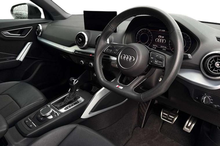 Audi connect navigation and infotainment includes innovative services, Audi connect remote and control connects your vehicle to your smartphone, Audi drive select, Audi drive select - Power steering assistance + engine + gearshift, Audi drive select with efficiency, Audi smartphone interface, Audi virtual cockpit, Automatic start/stop system with recuperation, Bluetooth interface includes bluetooth audio streaming, Cruise control, E-call, MMI navigation plus with MMI touch, Power operated tailgate, Progressive steering, Rear parking sensors, 2 x SDXC card reader, 8 passive loudspeakers, DAB Digital radio, DVD Drive, Auto dimming rear view mirror, Black window trims, Bumper in full body colour paint finish, Electrically adjustable, folding, auto dimming and heated door mirrors with integrated LED side indicators, Front windscreen with grey tinted sunband, LED daytime running lights, LED headlights with LED rear lights, LED third brake light, Privacy glass - dark tinted rear and rear side windows from B-pillar backwards, Rear side wing doors, Rear wiper, Variable front intermittent wipers, Wheel arch trims in manhattan grey, 12V socket in front, 3 seat bench in 2nd row, 3 spoke flat bottomed multi-function leather sport steering wheel with gear shift paddles, 4-way electric lumbar support for front seats including seat height adjustment for both front seat, 60/40 split folding rear seat bench, Black cloth headlining, Front and rear head restraints, Front centre armrest, Front/rear floor mats, Height/reach adjust steering wheel, Illuminated door sill trims with S logo, ISOFIX child seat mounting for front passenger with airbag deactivation and outer rear seat including top tether attachment point for outer rear seats, Single front passenger seat, Stainless steel pedals, Black styling pack - Q2, 3x3 point rear seatbelts, 6 airbags - Front, curtain and front side airbags, Electromechanical parking brake, Electronic stabilisation control including ABS, ASR and EDL, Hill hold assist, Pre-sense front with pedestrian recognition, Seatbelt monitoring, Tyre pressure warning light, Warning triangle and first aid kit, Anti theft alarm, Anti theft wheel bolts, Electronically operated child locks, Remote central door locking, Aluminium interior element, Matt brushed aluminium trim inlays, Tool kit,