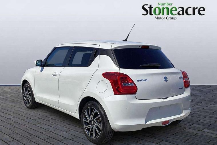 Adaptive cruise control with Stop and Go, Automatic start/stop system, Blind spot monitoring, Colour LCD information display, Digital clock, Driver monitoring system, eCall, Fuel consumption display (average/instantaneous) and range display, Intelligent speed control support, Lane departure prevention, Lane departure warning system, Lane keeping assist (LKA), Low fuel level warning light, Navigation system, Outside temperature display, PAS, Rear cross traffic alert, Rear parking camera, Rear parking sensors, Remote fuel cap release, Smartphone integration with Apple CarPlay and Android auto, Suzuki connect, Tailgate, Traffic sign recognition, Weaving alert, 4 speakers + 2 tweeters, 9-inch infotainment display, Auxiliary input socket, Bluetooth audio streaming, DAB Digital radio, Steering wheel audio controls, USB Type A and C, 'Guide me home' headlamps, 1 speed with intermittent rear wiper + washer, 2 speeds front wiper with intermittent + washer, Automatic headlights, Black coloured A & B pillars, Black Upper and lower front grille, Body colour door mirrors and handles, C pillar trim moulding, Door mirrors with built-in turn signal lamp, Electric door mirrors, Electric folding door mirrors, Electric front windows, Electric rear windows, Green tinted glass, Heated door mirrors, High beam assist, LED daytime running lights, LED High mounted stop light, LED number plate light, LED position lamps, LED projector headlamps, LED rear combination lamp, Manual headlamp level control, Rain sensor, Rear fog lights, Rear privacy glass, Rear side wing doors, Rear spoiler, Side spoiler, 1 cup holder in rear, 12V Accessory socket in front console, 2 cup holders in front, 2 Isofix seat anchors, 3 bench rear seats in 2nd row, 3 rear head restraints, 3 spoke leather covered steering wheel, 60/40 split rear seats, Accessory socket, Automatic air conditioning, Centre console storage, Centre lower box, Child seat tether anchorages x 2, Chrome handbrake release button, Chrome interior door handles, Cloth upholstery, Door pockets with bottle holder, Driver/passenger sunvisors with ticket holders + vanity mirrors, Front cabin lights, Front headrests, Front map light, Front passenger side assist grip, Gearshift paddles, Glovebox, Heated front seats, Heater, Height adjustable driver's seat, Luggage area lamp, Painted interior door trim ornament, Parcel shelf, Passenger seat back pocket, Pollen filter, Rear assist grips x2, Rear heater duct, Single front passenger seat, Tilt adjustable steering wheel, Tilt/telescopic adjustable steering wheel, 3 point ELR seatbelts for centre seat, 3 point ELR seatbelts front and rear, ABS+EBD+Brake assist, Curtain airbags, Driver airbag, Dual sensor brake support, ESP + traction control, Front and rear seatbelt reminder, Front passenger airbag, Front passenger airbag deactivation, Front seat seatbelts shoulder height adjuster, Front seatbelt pretensioners with force limiters, Hill hold control, Rear child proof door locks, Rear seatbelts with pre-tensioners and load limiters, Side airbags with incorporated into front seats, Tyre pressure indicator, Deadlocks, Freewheeling key cylinders, Immobiliser, Keyless entry and start, Light - on and Key in reminder, Locking wheel nuts, Remote central locking, Painted instrument panel ornament, 16" Polished alloy wheels, Emergency flat tyre repair kit,