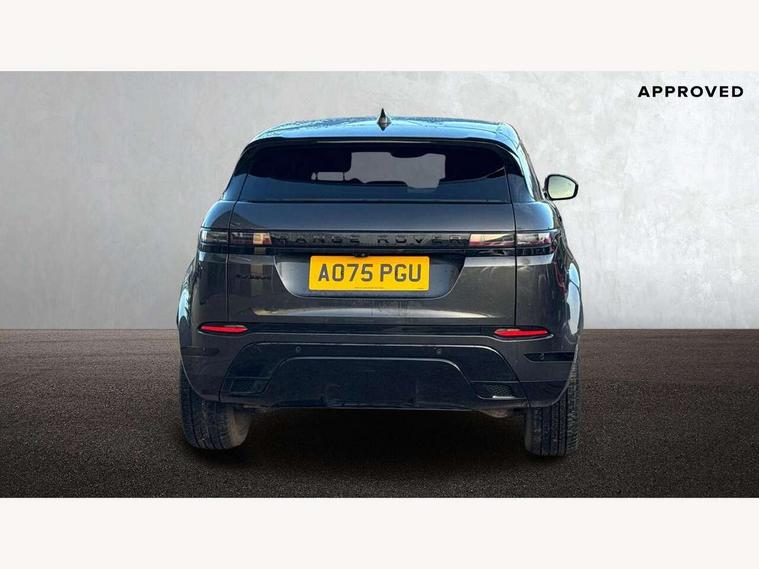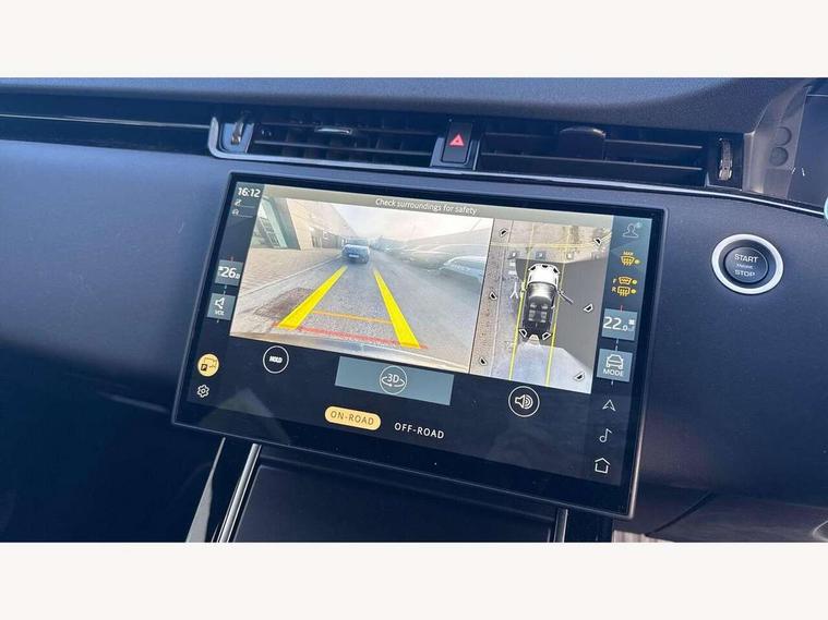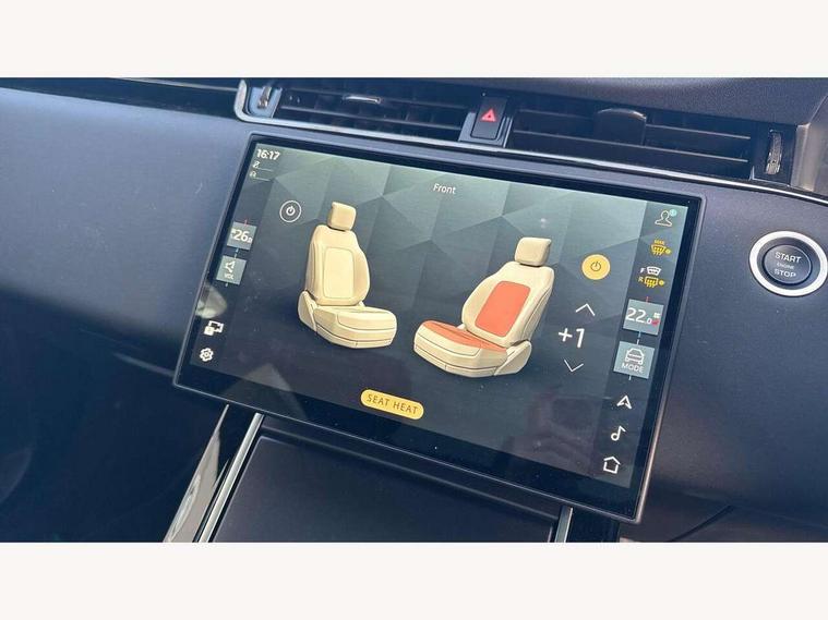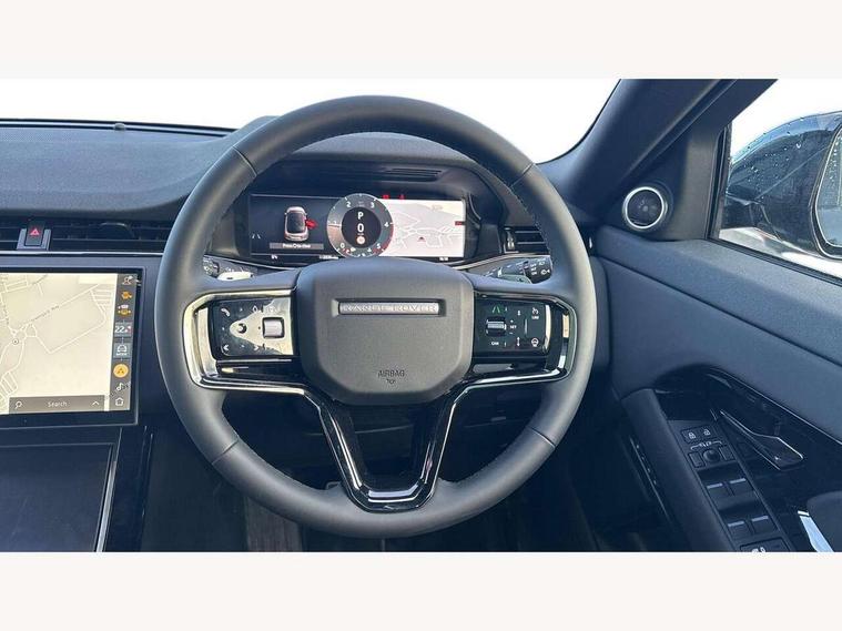 11.4" touch screen, 3D 360 degree surround camera with wade sensing, Adaptive cruise control, Android Auto, Apple car play, Blind spot assist, Bluetooth connectivity, Brake pad wear indicator warning light, Driver condition monitor, eCall emergency system, Eco mode, Electronic power assisted steering (EPAS), Front and rear parking sensors with auto brake, InControl remote, Interactive driver display, Land Rover InControl apps, Lane keep assist, Pivi pro connected includes diamond pivi variant, smart settings, connected navigation pro, nuance speech licence, Powered tailgate/boot lid, Rear collision monitor, Rear traffic monitor, Tailgate, Traffic sign recognition with adaptive speed limiter, Voice control system, Wireless device charging, All terrain progress control, Diesel exhaust fluid (DEF) large tank, Efficient Driveline, Large fuel tank, Terrain Response 2, Digital Audio Broadcast radio-DAB, Steering wheel mounted controls, Acoustic laminated windscreen, Auto headlights, Auto high beam assist, Automatic headlight levelling, Electric windows with one touch open/close and anti trap, Flush deployable exterior door handles, Front and rear recovery eyes, Heated rear window with timer, Heated washer jets, Heated windscreen, LED headlights with signature DRL and LED tail Lights, Power fold, auto-dimming, heated door mirrors with approach lights and auto dimming driver side, Rain sensing windscreen wipers, Rear animated directional indicators, Rear fog lights, Rear side wing doors, Rear wiper, Side repeater indicators in mirror, Tailgate spoiler, Third brake light, Winter wiper park position, 12 way driver memory and 10 way passenger electric front seats with 2 way manual headrest + 4 way lumbar support, 40:20:40 split folding rear seats with centre headrest and armrest, Ambient interior lighting, Bright metal pedals, Carpet mats, Chrome tread plates with range rover branding Includes stainless steel loadspace scuff plate with etched graphic, Customer configurable single point entry, Front and rear cupholders, Heated front seats, Heated steering wheel, Isofix system on outer rear seats, Manually adjustable steering column, Overhead lighting console, Overhead stowage for sunglasses, Passive front head restraints, Rear air vents, Rear head restraints, Satin chrome gearshift paddles, SE Grained leather upholstery, Single passenger seat, Standard steering wheel with Moonlight Bezel, Sunvisors with illuminated vanity mirrors, Twin sliding front centre armrest, Power socket pack 2 - Evoque, 3 rear 3 point seatbelts, Anti-lock braking system (ABS), Brake hold function, Customer configurable autolock, DSC - Dynamic Stability Control, Electronic brake force distribution, Electronic parking brake, Electronic traction control, Emergency braking, Front and rear seatbelt reminder, Hill descent control, Hill launch assist, Low traction launch, Occupant protection assist, Passenger seat occupant detector, Power operated child locks, Roll stability control, Six airbags - Driver and passenger airbags/driver knee airbag/front side airbag and curtain airbags, Torque vectoring brake, Tyre pressure monitoring system, Alarm, Immobiliser, Intrusion sensor, Keyless entry, Locking wheel nuts, All season tyres,
