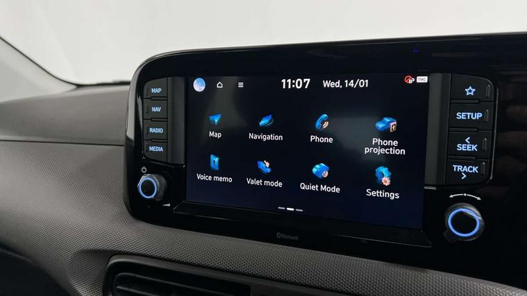 8" Touchscreen satellite navigation including mapcare and LIVE services, Apple car play/Android Auto, Bluelink mobile remote connectivity, Bluetooth connectivity with voice recognition, Cruise control, Driver attention alert system, eCall emergency call system, Forward Collision-Avoidance Assist (FCA) - Pedestrian/Cyclist, Full-width 4.2" LCD instrument cluster, Intelligent speed limit assist, Lane departure warning system with lane keep assist - LKAS, Lane follow assist, PAS, Rear parking sensors, Rear view camera with guidelines, Roadside assistance, Start/Stop function, Tailgate, Trip computer, 2 front/2 rear speakers, Front and rear USB-C ports, Front USB connection, Leading vehicle alert (LVA), Steering wheel audio, phone and cruise controls, 1 speed non intermittent rear windscreen wiper, Black finish on B pillars, Body colour door handles, Body coloured bumpers, Body coloured door mirrors, Electric front windows, Electric rear windows, Electrically adjustable and heated door mirrors, Flat metal emblem, Front grille in matte black, Front intermittent wipers, Halogen headlights, Headlights inner with Black Blade design, Heated rear window, High beam assist, Indicator light on door mirrors, LED daytime running lights, Rear roof spoiler with integrated LED brake light, Rear side wing doors, 12v power outlet - front, 3 seat bench in 2nd row, 60/40 split folding flat to floor rear seats, Auto light control, Bottle holders in front/rear doors + front centre console, Cabin and luggage compartment interior lighting, Cloth upholstery, Driver + passenger vanity mirrors, Driver's seat height adjustment, Driver/passenger sunvisors with ticket holders, Floor mats, Front door pockets, Front Head Restraints - Vertical and Horizontal Adjustment, Glove compartment, Height adjustable steering column, Isofix child seat preparation, Leather wrapped steering wheel and gear knob, Manual air conditioning, Rear door pockets, Single front passenger seat, Vertical adjustment rear head restraints, 3x3 point rear seatbelts, Airbags - front, front side and curtain airbags, Anti-lock brake system (ABS), Autonomous emergency braking (AEB) with forward collision warning system, Brake assist function, Childproof rear door locks, Electronic stability control, Front and rear seatbelt reminder, Front seatbelt pretensioners, Hill start assist control (HAC), Passenger airbag deactivate switch, Traction control, Tyre pressure monitoring system, Immobiliser, Perimeter alarm, Rear occupant alert, Remote central locking, Second remote key, Speed sensitive auto door locking, 15" Alloy wheels, Temporary mobility kit (TMK),