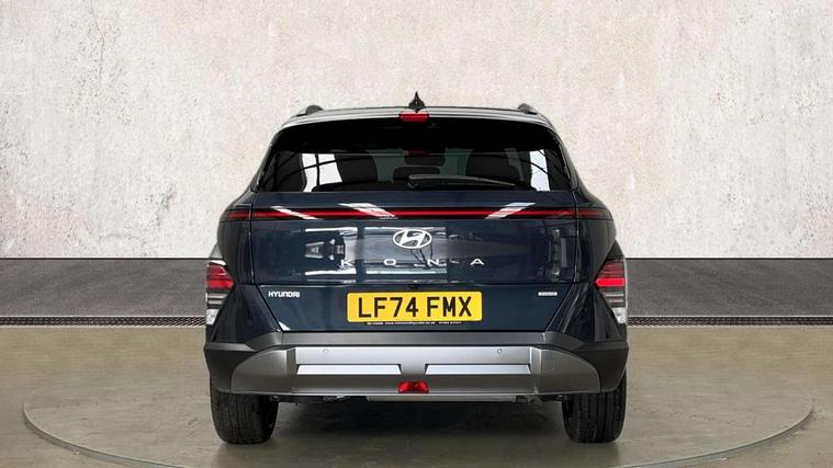 12.3" touchscreen centre console display satellite navigation with bluelink, live services and mapcare, Blind spot collision avoidance assist, Blind spot view monitor, Bluetooth connectivity with voice recognition, Digital clock, Driver status monitor (DSM), Driver supervision instrument cluster with 12.3" LCD display, eCall emergency call system, Feature on demand - Enabled, Forward collision avoidance assist (FCA 1.5) - Car, pededstrian, cycle and junction turning, Front parking sensor, HDA - Highway Drive Assist Level 1.5, Height adjustable power tailgate, Intelligent speed limit assist, Lane follow assist, Lane keep assist, Leading vehicle departure alert (LVDA), Parking Collision Avoidance Assist-Reverse (PCA-R), Parking distance warning - side, Parking system with rear camera and guidance system, PAS, Rear cross traffic collision avoidance (RCCA), Rear parking sensor, Roadside assistance, Safe exit warning (SEW), Smart cruise control with stop and go functionality, Surround view monitor, Windscreen washer fluid sensor and warning indicator, Wireless phone charging pad, Wireless Smartphone Integration includes Apple CarPlay and Android auto, 2 front USB C and 2 rear USB C charging points, Bose Premium Audio system with 7 premium speakers + subwoofer, DAB Digital radio, Steering wheel audio, phone and cruise controls, Auto dimming rear view mirror, Automatic headlights with dusk sensor, Automatic windscreen wipers with rain sensor, Black painted wheel arch inserts, Body colour bumpers, Body colour exterior door handles, Body coloured door mirrors, Door mirror LED indicator lights, Electric front windows with anti-trap mechanism and one touch control, Electric rear windows, Electric sunroof, Electrically adjustable and heated door mirrors, Horizon centre LED DRL, LED projector headlights, LED upper and lower rear lights, Power folding door mirrors, Privacy glass - Rear windows and tailgate, Rear roof spoiler with integrated LED brake light, Rear side wing doors, Rear skid plate - silver, Rear wiper, Roof rails, Solar glass with front door glass and windscreen, Tinted glass in front and rear doors, Windscreen auto defog function, 12V power outlet in front console, 2 zone climate control, 3 seat bench in 2nd row, 40/20/40 split folding rear seat, Adjustable head restraints, Ambient lighting, Driver and passenger front seat pockets, Driver's seat electric adjustments, Driver's seat lumbar support, Driver/passenger sunvisors and illuminated vanity mirrors, Floor mats, Front passenger's seat electric adjustments, Heated front seats, Heated rear seats, Heated steering wheel, Height/reach adjustable steering column, Isofix rear child seat fastenings, Leather upholstery, Leather wrapped steering wheel, LED centre interior light, LED front interior light, Luggage compartment LED lighting, Luggage net, Luggage shelf, Metal paint effect interior door handles, Parcel shelf, Rear centre armrest with cupholders, Rear centre console with air vents, Shift by wire SBW, Single front passenger seat, Ventilated front seats, Vertical adjustment rear head restraints, Trailer wiring package - Kona, Airbag - front, front side, curtain and centre front airbag, Anti-lock brake system (ABS), Childproof rear door locks, Downhill brake control, EBD + Brake Assist, Electric parking brake, Electronic stability control, Fasten seatbelt reminder, Fixed 3 point for second row centre passenger seatbelt, Front seatbelt pretensioners, Height adjustable front seatbelts, Hill start assist control (HAC), Passenger airbag deactivate switch, Rear seat alert, Traction control, Tyre pressure monitoring system, Alarm/immobiliser, Deadlocks, Folding key, Locking wheel nuts, Rear occupant alert, Remote central locking, Smart key with keyless entry and start/stop button, Five year annual vehicle health checks, 18" Alloy wheels, Temporary mobility kit (TMK),