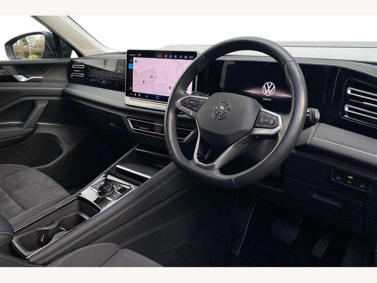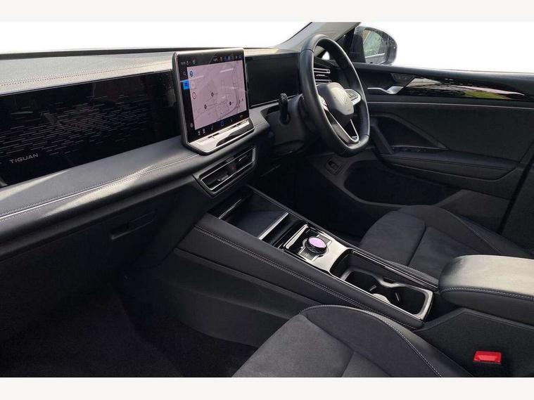 Adaptive cruise control (ACC), Advanced driver attention and drowsiness monitor, Bluetooth mobile phone interface, Comfort drive travel assist, lane keeping system, lane assist and emergency assist, Digital Cockpit Pro - 10.25" high resolution dash display screen with customisable menus and information, Dynamic road sign display, E-Sim card for online connectivity, eCall emergency call service, Front Assist - Autonomous emergency braking with pedestrian and cyclist monitoring, Lane change system, Side assist, Rear traffic alert and Exit warning system, Multifunction front facing camera, Oncoming vehicle braking when turning including swerve support, Park assistance plus with front and rear parking sensors, Power assisted steering with speed sensitive, Start/stop system with regenerative braking, Warning signal and warning light for front and rear seatbelts not fastened, Wireless App-Connect, Front wheel drive, Digital radio reception (DAB), Diversity antenna for FM reception, Ambient lighting with logo projection, Auto dimming interior rear view mirror, Automatic headlight control system, Body colored bumpers in R-Line style, Body coloured door handles, Body-coloured exterior mirror housings, Chrome moldings on the side windows, Coming/leaving home lighting function, Heat insulating glass in side and rear windows, Heated rear window, Heated windscreen washer jets, High level 3rd brake light, Illuminated door handle recesses, Illuminated lightline between headlamps, Laminated safety glass from B-pillar backwards 90% tinted, Laminated safety glass windshield, Rain sensor windscreen wipers, Rear fog light on one side, reversing light on both sides, Rear side wing doors, Rear wiper, Silver roof rails, 12V outlet in center console rear and in luggage compartment, 12V socket in centre console, 3 bench rear seats in 2nd row, Air care climatronic 3 zone air conditioning system with rear air conditioning control panel, Carpet mats, front and rear, Centre console with illuminated storage compartment with sliding cover and two drinks holders, Ceramique headlining, Chrome elements on the mirror switch and power window switches and door pulls, Door and side trim panel with leatherette insert, Door sill protectors, Front centre armrest, Interior ambient lighting with 30 colour options, ISOFIX anchors for child seats on outer rear seats and front passenger seat compatible with i-Size, Mechanical rear seat release, Power adjustable lumbar support in front, Rear bench seat, split folding, longitudinally movable and folding with load-through hatch and centre armrest, Safety optimised front head restraints, Single front passenger seat, Sports comfort seats in front, Sun visors with illuminated vanity mirrors, Three rear head restraints, Variable luggage compartment floor, Comfort package incl. Memory feature for Park assist and Safelock - Tiguan, Driver assistance package - Tiguan, 3 point seat belt for centre rear seats, 3 Point seat belts in front with pretensioners, 3 point seatbelts in outer rear with ECE label, Driver and front passenger airbag with front passenger airbag deactivation, Electronic parking brake with auto hold, Front and rear curtain airbags, Front and rear side airbags, Front centre airbag, Front disc brakes, Manual child proof rear door locks, Rear disc brakes, Two tone horn, Warning triangle, Anti theft wheel bolts, Decorative inserts Cross in dash and front door panels, Interior door handle in matte chrome, Soul instrument panel,