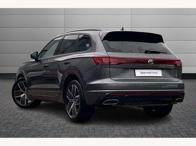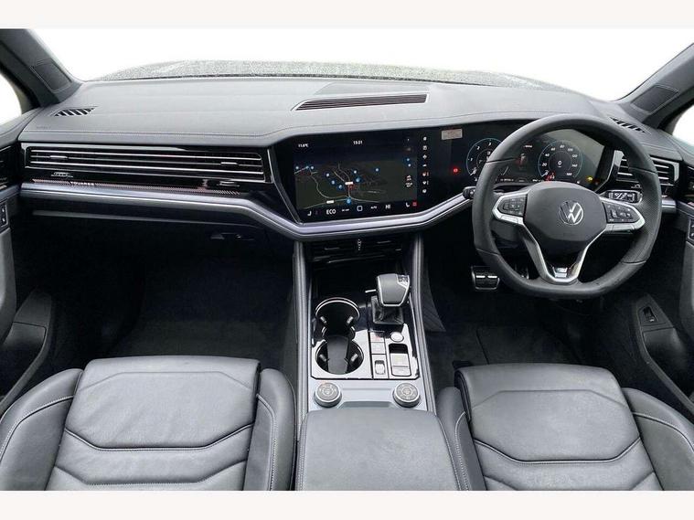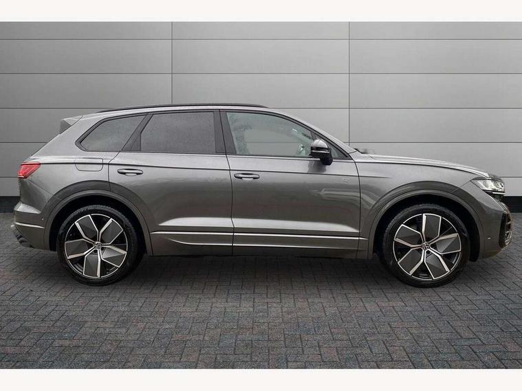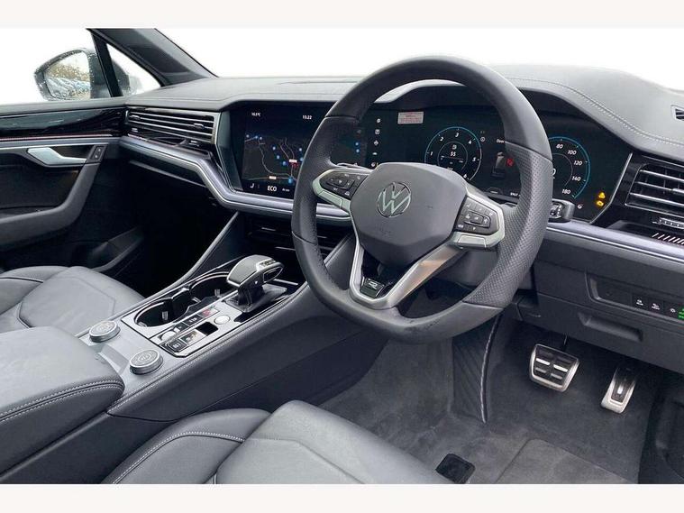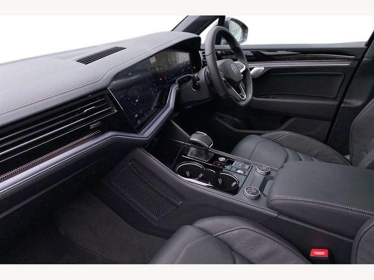 15" Screen Top infotainment system Premium (MIB3), Adaptive cruise control, Advanced driver attention and drowsiness monitor, Driver profile selection, Dynamic road sign display, E-Sim card for online connectivity, eCall emergency system, Innovision cockpit, Intelligent park assist, Mobile phone interface with inductive charging, Multi-colour Active Info display, Park Assist - Sensor controlled steering aid to assist parallel or bay parking, PAS, Warning signal and warning light for front and rear seatbelts not fastened, Wireless app connect, Adaptive chassis control, DAB Digital radio, Diversity antenna for AM/ FM reception, We Connect and We Connect Plus functionality, Automatic coming/leaving home lighting function, Automatic headlights, Black door mirrors, Black style comfort bumpers, Dynamic headlight range control with dynamic cornering light, Electric front tilt/slide panoramic sunroof and fixed rear sunroof, Electrically power adjustable, heated, folding, auto dimming, front passenger exterior door mirror lowering function, External USB type C socket and charging sockets, Gloss black roof rails, HD LED Matrix beam plus digital headlight projection with variable light distribution, Headlight washers, Highway light, LED 3rd brake light, LED daytime running lights, LED rear combination lamp with variable lighting functions and special styling, Poor weather light, Rain sensor, Rear exhaust tailpipe, Rear fog light with back up light on both sides, Rear light bar and illuminated logo, Rear side wing doors, Rear wiper, Stainless steel door sill protection, 12V socket in centre console, 3 rear headrests, 3 seat bench in 2nd row, 4 zone climate control, Airbag label on sun visor and B-pillar, Brushed stainless steel pedals, Double sun visors with illuminated vanity mirrors, Front + rear carpet mats, Front centre armrest, Leather wrapped multifunction sports steering wheel, heated, with touch control and shift paddles, Mechanical rear seat release, Power adjustable lumbar support in front, Power seats in front, right side with memory features and seat cushion depth adjustment, Rear seat backrest and split folding with center armrest, Single front passenger seat, Memory pack plus - Touareg, 3 point seatbelts, outer rear with ECE lable, ABS, Child locks on rear doors, Curtain airbags, Driver and front passenger safety-optimised head restraints, Driver/Front Passenger airbags, Extended pedestrian protection measures, Front assist, Front seat side impact airbags, Generative braking with start and stop system, Height adjustable 3 point front seatbelts with pre tensioners, Passenger airbag deactivate switch, Three 3 point rear seatbelts, Two tone horn, Warning triangle and first aid kit, Alarm system with interior protection, Easy open and close sensor controlled luggage compartment opening and closing with remote unlocking, Keyless Access Keyless locking and starting system with SAFELOCK, Aluminium decorative inserts, Black decorative trims, Gloss black decorative inserts in centre console, Tool kit,