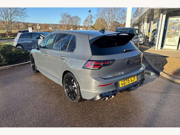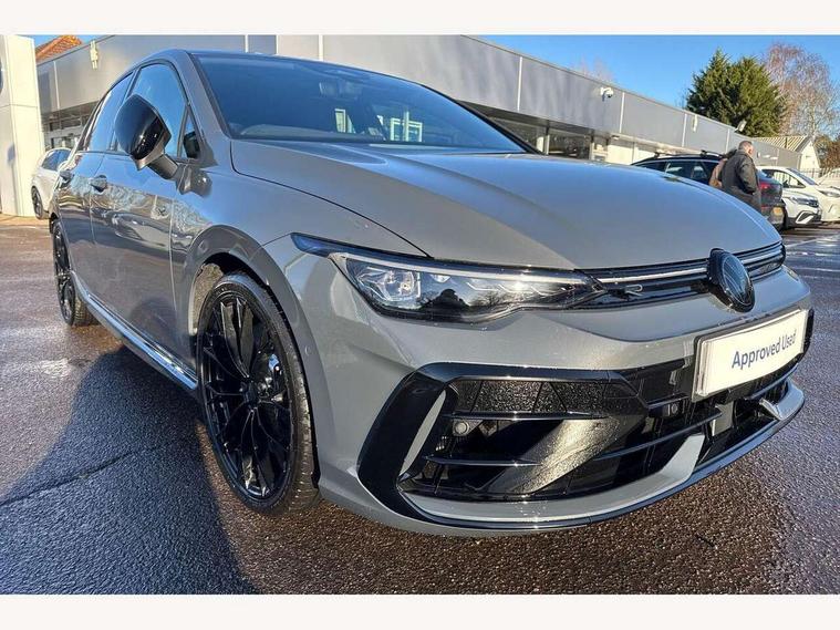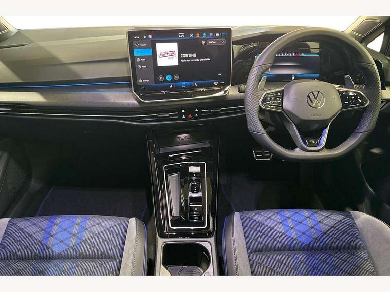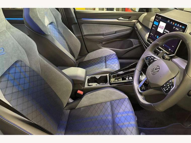 Activated carbon canister, Adaptive cruise control (ACC), Advanced driver attention and drowsiness monitor, Dynamic road sign display, E-Sim card for online connectivity, eCall emergency call system, Electronic maximum speed limit increased to 270 km/h, includes driving Modes 'drift' and 'special', larger roof spolier and GPS laptimer + G-Meter, Multi-color Digital cockpit pro, selection of different info profile possible, Multifunction front facing camera for distance control, Navigation system, Oncoming vehicle braking when turning including swerve support, Progressive steering, Side assist blind spot lane change system, rear traffic alert and exit warning system, Speed limiter, Speedo, rev counter, electronic odometer, trip, service interval display, exterior temperature and fuel gauge, Traffic jam assist, Voice enhancer and voice control, Warning signal and warning light for front and rear seatbelts not fastened, We connect plus preparation, We connect preparation, Wireless app connect, All wheel drive - 4Motion, Petrol Particulate Filter, Start-stop system with battery regeneration (recuperation - energy recovery during braking), XDS electronic differential lock for improved traction and handling, 2 USB C ports in front, 2 USB charging sockets on the centre console in the rear charging capacity upto 45W, Digital radio reception (DAB), Diversity antenna for FM reception, Gaming platform via car app, Infotainment system with 12.9" display, Mobile phone interface with inductive charging feature, 3rd brake light, Auto dimming rear view mirror, Automatic headlamp activation with Coming home and Leaving home feature, Black badge on B-pillar, Black mirror caps, Black strips on radiator grille and headlights, Body colour door handles, Darkened headlights, Darkened R Logos and VW logos in front, rear and on fender, Exterior mirrors convex on the left and aspherical on the right, Front and rear electric windows, Front fog lamps and cornering light, Heat insulating windshield made of laminated glass, Illuminated lighting animation with wake up/goodbye scenario, LED matrix headlights with ambient light V2, advanced high beam, dynamic range contol with cornering, LED rear lamp with indicator, poor weather, LED separate daytime running light, Light assist with High beam control, R name plate, Rain sensor, Rear fog light on one side and reversing lights on both sides, Rear side wing doors, Rear tinted glass 65% light absorbing from B pillar backwards, Rear windscreen washer and wiper with interval delay, Remote electrically foldable door mirrors, puddle lights and reverse activated passenger's door mirror, Welcome light with surround lighting, 12V socket in front centre console, 12V socket in luggage compartment, 3 rear head restraints, 3 seat bench in 2nd row, 30 colour ambient lighting, illuminated center console storage compartment in front, Air care climatronic 3 Zone automatic climate control with rear air conditioning control panel, Aluminium gearshift handle, Brushed stainless steel pedals, Chrome plated radiator grille inserts, air vent surrounds and light switch surrounds, Entry lights, Front + rear black carpet mats, Front centre armrest, Integrated front head restraints, ISOFIX anchors for child seats on outer rear bench seats and on front passanger seat compatible for i-Size, Luggage compartment lighting, Rear cupholder and loadthough, Single front passenger seat, Soul black instrument panel, Soul black roof lining, Split folding backrest with centre armrest and unsplit rear seat bench, Sun visors with illuminated vanity mirrors, Driver assistance pack - Golf Estate/Hatchback Auto, R styling pack - Golf, Technology park and comfort pro package - Golf Hatchback, 3 point height adj front seatbelts + pretensioners, 3 rear three point seatbelts, ABS, Autonomous emergency braking front assist with pedestrian and cyclist monitoring, Child locks on rear doors, Driver and front passenger airbag with front passenger airbag deactivation, Electronic parking brake with auto hold, ESC (Electronic Stability Control), Extended pedestrian protection measures, Front and rear black brake calipers with darkened R-logo, Hill start assist, Rear disc brakes, Two tone horn, Tyre pressure loss indicator, Volkswagen roadside assistance, Anti theft wheel bolts, Preparation for alcohol interlock, Sporty vehicle dynamics, Tool kit for tyre mobility set, Tyre mobility kit Includes 12V compressor and tyre sealant, Wheel hub cover with darkened R-logo,