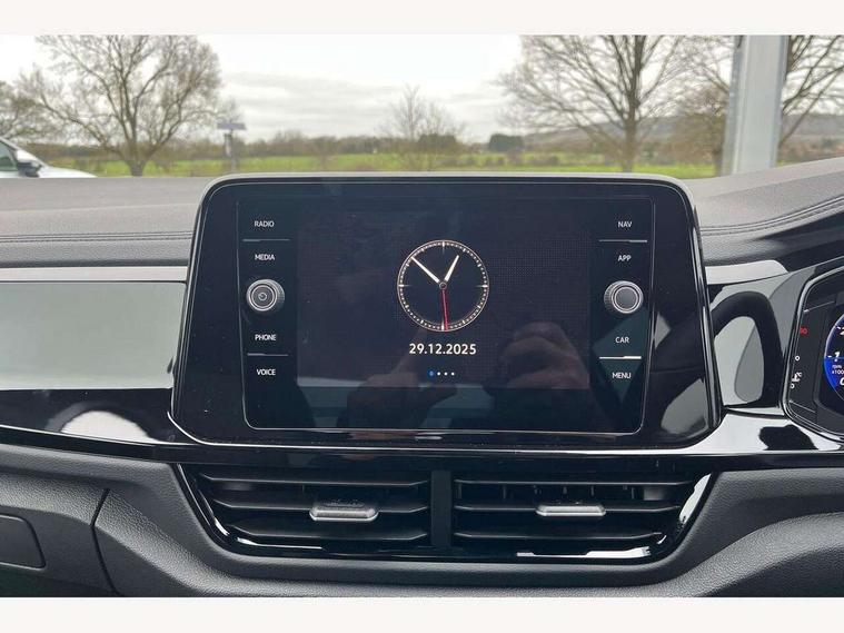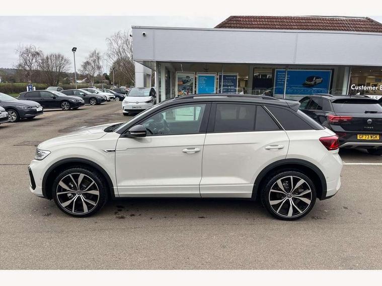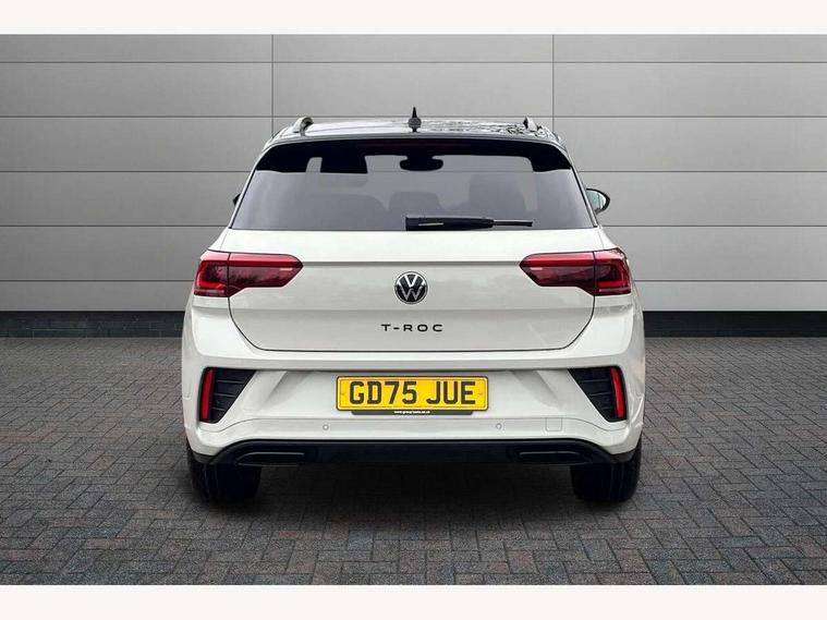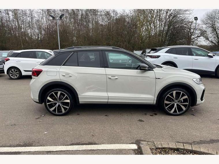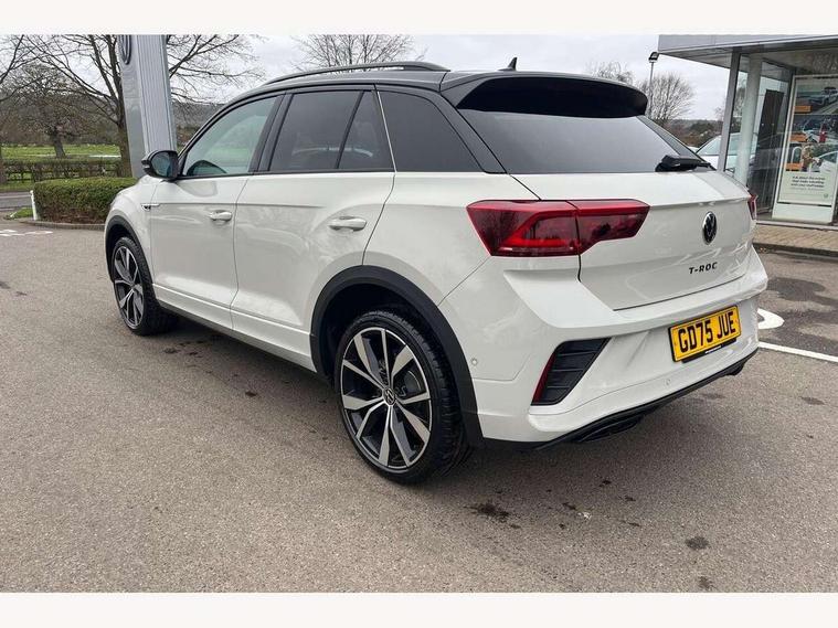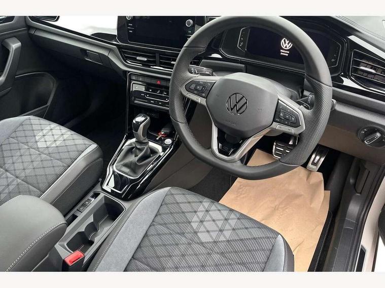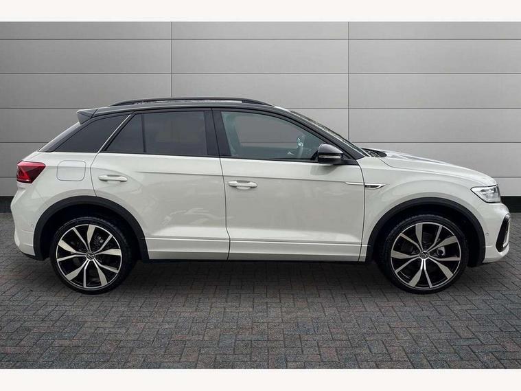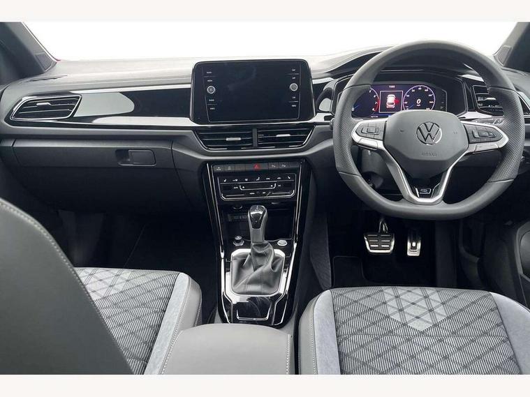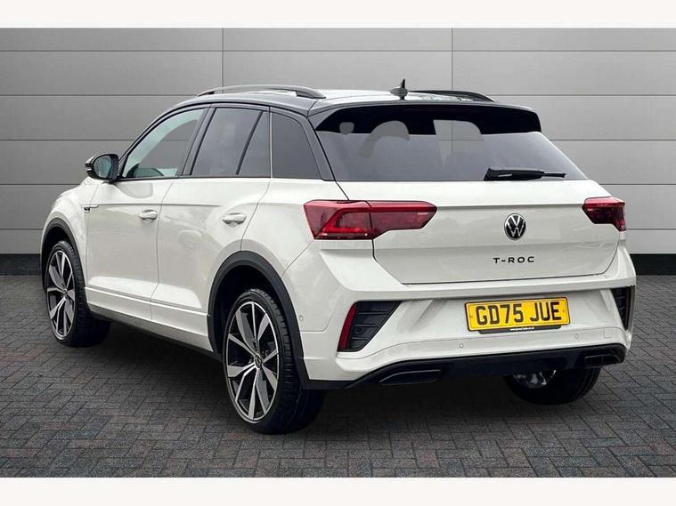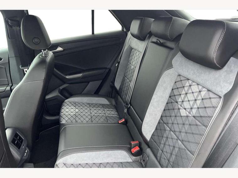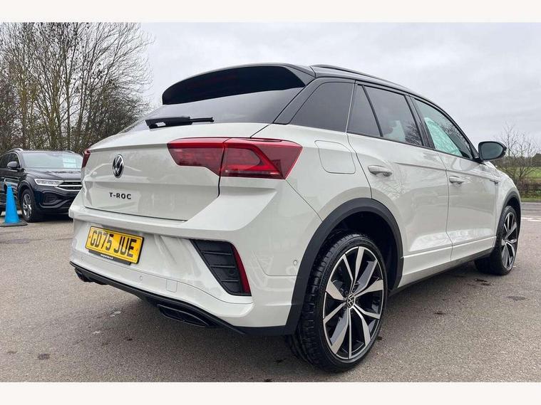10.25" Digital cockpit pro, Advanced driver attention and drowsiness monitor, Emergency call service, Lane keeping system Lane Assist, Mobile phone interface, Modified key software - reduce switch off time for key status change to Long no motion, Online services, Park assist including front and rear parking sensors, Power assisted speed sensitive steering, Rear view camera, Service interval indicator, Tailgate/trunk lid release from outside, Think blue trainer driver tips and journey analysis, Warning sound and light for front seatbelts unfastened, Wireless app connect, Battery regeneration during braking, Rear shock absorption chassis with increased ride height, Start/stop function with battery regeneration, DAB Digital radio, Diversity antenna for FM reception, Music playback - MP3, WMA and AAC files, SD card slot, Simultaneous pairing of 2 compatible mobile devices, Title and cover art display, We Connect and We Connect Plus functionality, Advanced dynamic light assist for LED matrix headlights, Auto dimming interior rear view mirror, Automatic hazard lights activation under emergency braking, Black roof rails, Dynamic cornering light, Dynamic headlight range control with self adjusting whilst driving, Electrically adjustable and heated door mirrors, Extended roof spoiler, Exterior ambient lighting, Exterior mirrors aspherical on driver side, convex on front passenger side, External USB type C socket and charging sockets, Front windscreen wiper with intermittent wipe and 4 position delay, Heated rear window, Illuminated front grille, IQ LED matrix headlights, LED 3rd brake light, LED rear number plate lights, LED rear tail lights with dynamic turn signal, LED separate daytime running light, Light mode for poor weather, rain, fog or snow, Power windows with comfort operation and circuit breaker, Privacy glass for rear side windows and rear window, R-Line design body coloured bumpers, Rain sensor, Rear exhaust tailpipe, Rear fog light on one side and reversing lights on both sides, Rear side wing doors, Rear wash/wipe with intermittent wipe setting, Remote electrically foldable door mirrors, puddle lights and reverse activated passenger's door mirror, Tilting and sliding panoramic sunroof with rear panoramic sunroof, 12V power socket in centre console, 3 rear head restraints, 3 seat bench in 2nd row, 4 load lashing points in luggage compartment, Air care climatronic air conditoning system with active combination filter and 2-zone temperature control, Chrome plated radiator grille inserts, air vent surrounds and light switch surrounds, Door and side trim panel with leatherette insert, Drawer under drivers seat, Front + rear carpet mats, Front centre armrest, Front comfort sports seats, Front cupholders x 2, Front footwell illumination, Front reading light, Front scuff plates with R Line logo, Front seat back storage pockets, Glove compartment door with light, Instrument lighting, white adjustable panel illumination, Interior ambient lighting and surround lighting, Interior light delay, Isofix child seat preparation, Leather gearshift handle, Load-through provision with cup holder when folded down ('Unsplit rear seat bench, split folding backrest, with centre armrest), Luggage compartment lighting, Non-folding front passenger seat backrest, Single front passenger seat, Stainless steel pedals, Storage compartment in left and right luggage area, Storage compartment in rear doors, Storage compartments in driver and front passenger doors, Sunvisors with illuminated vanity mirrors, Variable boot floor, height adjustable and removable, Black design pack - T-Roc black edition plus, Easy open package with safelock - T-Roc, Sport pack with sports suspension - T-Roc, 3 point height adj front seatbelts + pretensioners, 3 point seatbelts in outer rear with ECE label, ABS, Child locks on rear doors, City emergency braking and pedestrian monitoring, Driver and front passenger airbag with front passenger airbag deactivation, Driver and front passenger safety-optimised head restraints, Drivers seatbelt reminder, Electronic parking brake, Electronic Stability Control (ESC) inc EDL (Electronic Differential Lock) and ASR (Traction Control), Front and rear passengers curtain airbag system including front side airbags, Front disc brakes, Hill start assist, Predictive pedestrian protection, Rear disc brakes, Two tone horn, Tyre pressure loss indicator, Volkswagen roadside assistance, Keyless locking and starting system keyless access with safelock, Gloss deep iron dash trim, 19" Misano black diamond turned alloy wheels with low rolling resistance and anti theft wheel bolts, Tool kit, Trims for alloy wheels, Tyre mobility kit including compressor and sealing foam,