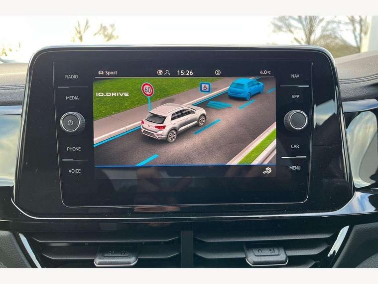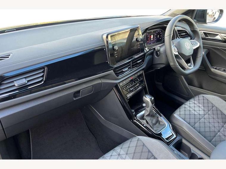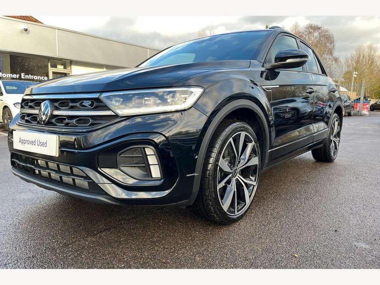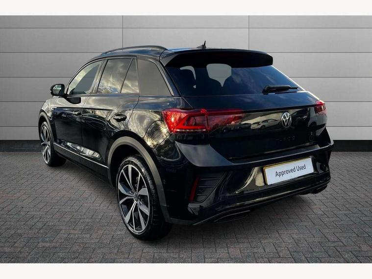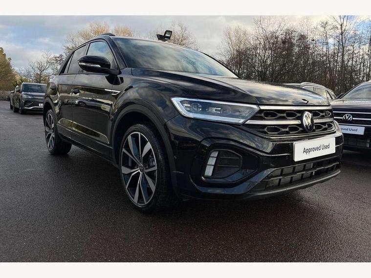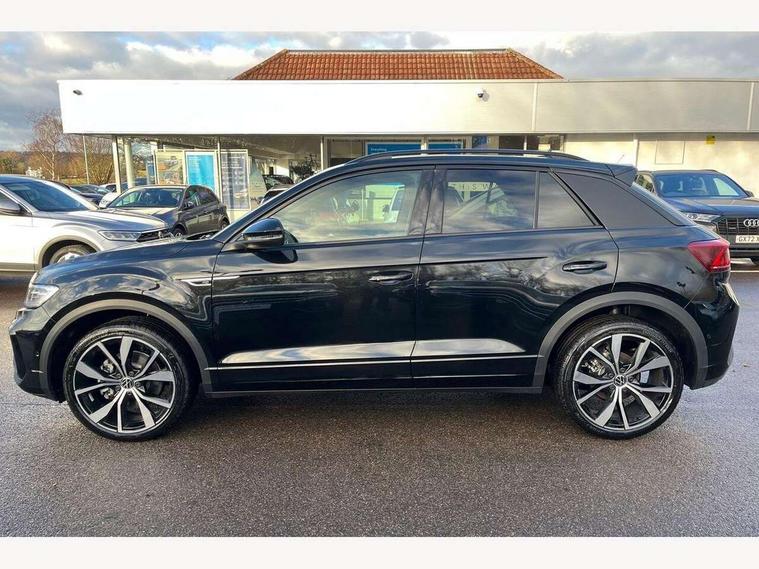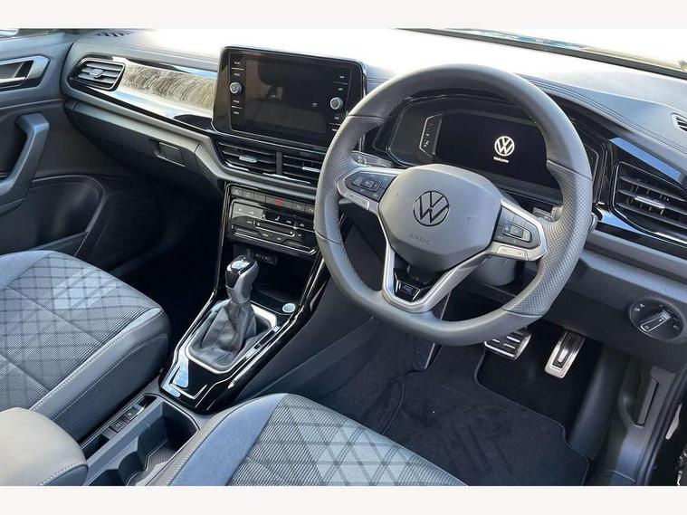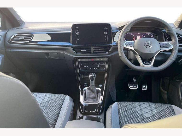 10.25" Digital cockpit pro, Advanced driver attention and drowsiness monitor, Emergency call service, Lane keeping system Lane Assist, Mobile phone interface, Modified key software - reduce switch off time for key status change to Long no motion, Online services, Park assist including front and rear parking sensors, Power assisted speed sensitive steering, Rear view camera, Service interval indicator, Tailgate/trunk lid release from outside, Think blue trainer driver tips and journey analysis, Warning sound and light for front seatbelts unfastened, Wireless app connect, Battery regeneration during braking, Rear shock absorption chassis with increased ride height, Start/stop function with battery regeneration, DAB Digital radio, Diversity antenna for FM reception, Music playback - MP3, WMA and AAC files, SD card slot, Simultaneous pairing of 2 compatible mobile devices, Title and cover art display, We Connect and We Connect Plus functionality, Advanced dynamic light assist for LED matrix headlights, Auto dimming interior rear view mirror, Automatic hazard lights activation under emergency braking, Black roof rails, Dynamic cornering light, Dynamic headlight range control with self adjusting whilst driving, Electrically adjustable and heated door mirrors, Extended roof spoiler, Exterior ambient lighting, Exterior mirrors aspherical on driver side, convex on front passenger side, External USB type C socket and charging sockets, Front windscreen wiper with intermittent wipe and 4 position delay, Heated rear window, Illuminated front grille, IQ LED matrix headlights, LED 3rd brake light, LED rear number plate lights, LED rear tail lights with dynamic turn signal, LED separate daytime running light, Light mode for poor weather, rain, fog or snow, Power windows with comfort operation and circuit breaker, Privacy glass for rear side windows and rear window, R-Line design body coloured bumpers, Rain sensor, Rear exhaust tailpipe, Rear fog light on one side and reversing lights on both sides, Rear side wing doors, Rear wash/wipe with intermittent wipe setting, Remote electrically foldable door mirrors, puddle lights and reverse activated passenger's door mirror, Tilting and sliding panoramic sunroof with rear panoramic sunroof, 12V power socket in centre console, 3 rear head restraints, 3 seat bench in 2nd row, 4 load lashing points in luggage compartment, Air care climatronic air conditoning system with active combination filter and 2-zone temperature control, Chrome plated radiator grille inserts, air vent surrounds and light switch surrounds, Door and side trim panel with leatherette insert, Drawer under drivers seat, Front + rear carpet mats, Front centre armrest, Front comfort sports seats, Front cupholders x 2, Front footwell illumination, Front reading light, Front scuff plates with R Line logo, Front seat back storage pockets, Glove compartment door with light, Instrument lighting, white adjustable panel illumination, Interior ambient lighting and surround lighting, Interior light delay, Isofix child seat preparation, Leather gearshift handle, Load-through provision with cup holder when folded down ('Unsplit rear seat bench, split folding backrest, with centre armrest), Luggage compartment lighting, Non-folding front passenger seat backrest, Single front passenger seat, Stainless steel pedals, Storage compartment in left and right luggage area, Storage compartment in rear doors, Storage compartments in driver and front passenger doors, Sunvisors with illuminated vanity mirrors, Variable boot floor, height adjustable and removable, Black design pack - T-Roc black edition plus, Easy open package with safelock - T-Roc, Sport pack with sports suspension - T-Roc, 3 point height adj front seatbelts + pretensioners, 3 point seatbelts in outer rear with ECE label, ABS, Child locks on rear doors, City emergency braking and pedestrian monitoring, Driver and front passenger airbag with front passenger airbag deactivation, Driver and front passenger safety-optimised head restraints, Drivers seatbelt reminder, Electronic parking brake, Electronic Stability Control (ESC) inc EDL (Electronic Differential Lock) and ASR (Traction Control), Front and rear passengers curtain airbag system including front side airbags, Front disc brakes, Hill start assist, Predictive pedestrian protection, Rear disc brakes, Two tone horn, Tyre pressure loss indicator, Volkswagen roadside assistance, Keyless locking and starting system keyless access with safelock, Gloss deep iron dash trim, 19" Misano black diamond turned alloy wheels with low rolling resistance and anti theft wheel bolts, Tool kit, Trims for alloy wheels, Tyre mobility kit including compressor and sealing foam,
