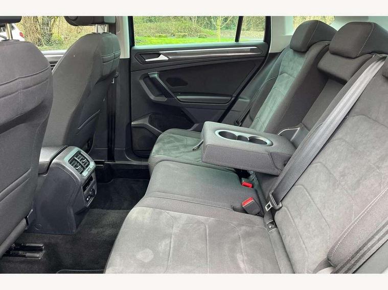 Adaptive cruise control ACC stop and go including speed limiter, App-Connect incl. App-Connect Wireless for Apple CarPlay and Android Auto, Bluetooth phone integration system, Distance control assist, Driver alert system, Driver profile selection, Dynamic road sign display, eCall emergency call system, Electromechanical speed sensitive power steering, Engine start/stop button, Lane keeping system Lane Assist, Lights on warning, Motorised electric tailgate operated via key fob, drivers door and foot movement under tailgate, Multifunction front facing camera, Outside temperature display, Premium multifunction display with multi colour display, Remote control boot opening, Rev counter, Revision / skills operating concept travel assistant, Service interval indicator, Speed limit display, Start/stop system with regenerative braking, Tailgate/trunk lid unlocking from outside, Trip computer, Warning sound and light for doors and tailgate open, Battery regeneration during braking, Diesel particulate filter, Misfuel prevention device for diesel engine, Selective Catalytic Reduction, XDS electronic differential lock for improved traction and handling, 4 X 20 watt output, 8 Speakers, Diversity antenna for FM reception, Radio, SD card slot, Simultaneous pairing of 2 compatible mobile devices, SMS functionality - read, compose and send SMS messages using touch-screen display, Title and cover art display, USB C ports, Aluminium door sill protectors, Auto dimming interior rear view mirror, Automatic headlight control system, Body colour door handles, Body coloured bumpers, Body coloured door mirrors with integrated indicators, Coming/leaving home lighting function, Dynamic headlight range control, Front and rear electric windows, Heated rear window, High level 3rd brake light, IQ light-Adv high beam, Dynamic light assist for LED matrix headlamp+LED separate DRL+DCL, dark red rear LED tech, Poor weather light+ cornering light, Laminated safety glass windshield, heat and sound insulating, LED rear number plate lights, Poor weather light and cornering light, Privacy glass for rear side windows and rear window, Rain sensor windscreen wipers, Rear exhaust tailpipe, Rear fog lamp, Rear side wing doors, Rear windscreen washer and wiper with interval delay, Side and rear windows in heat insulating glass, Tilting and sliding panoramic sunroof with rear panoramic sunroof, Trailer Stability Programme, Windscreen wipers/ intermittent wipe + 4 position delay, 12V outlet in center console rear and in luggage compartment, 12V outlet in front and tray, 2 cup holders in front, 2 LED front reading lights, 2 LED rear reading lights, 3 bench rear seats in 2nd row, 3 rear headrests, 4 load lashing points, 40:20:40 split folding rear seats, Air Care Climatronic 3 zone automatic climate control with enhanced air filter and controls in the rear, Backrest release for left front seat, Climate control unit rear with touch function, Door and side trim panel in foam film and woven fabric, Front centre armrest, Front footwell illumination, Front seats head restraints (x-adjustment), Height adjustable front seats, Height/reach adjust steering wheel, Instrument lighting white adjustable panel illumination, Interior light with delay, Isofix Preparation 2 Rear child seats, Leather gear knob, Lockable cooled glovebox, Luggage compartment lighting, Luggage net, Rear bench seat asymetrically split folding, longitudinally movable and folding with load-through hatch and center armrest, Remote unlocking for rear seat backrest, Removable luggage cover, Removable rear headrests, Safety optimised front head restraints, Single front passenger seat, Sliding/reclining rear seats, Standard rear seat release, Storage compartment in driver's door, Storage compartment in passenger's door, Storage compartment in rear doors, Storage compartments in luggage area left and right, Storage tray on dashboard, Sun visors with illuminated vanity mirrors, Top front comfort seats, Variable boot floor, height adjustable and removable, Easy open and close pack with safelock - Tiguan, 3 point seat belt for centre rear seats, 3 point seat belts with seat belt pretensioners for the outer rear seats, Active bonnet, Curtain airbags for front and rear passengers, Driver/Front Passenger airbags, Drivers knee airbag, Electronic parking brake with auto hold, Electronic Stability Control with driver steering recommendation, ABS, ASR, EDL, EDTC and trailer stabilization, Front assist with autonomous emergency braking (for Adaptive Cruise Control ACC up to 130 mph), Front disc brakes, Front passenger airbag deactivation, Front side airbags, Height adjustable front 3 point seatbelts + pretensioners, Hill hold control, Manual child proof rear door locks, Pedestrian monitoring system, Power assisted brakes, Proactive passenger protection system in combination with front assist, Rear disc brakes, Rigid safety cell with front and rear crumple zones, Two tone horn, Warning sound and light for front seat belts if unfastened, Anti theft alarm system with interior monitoring, backup horn and towing protection, Anti theft wheel bolts, Central locking system with safelock radio remote control and 2 remote control folding keys, Electronic engine immobiliser, Tool kit,