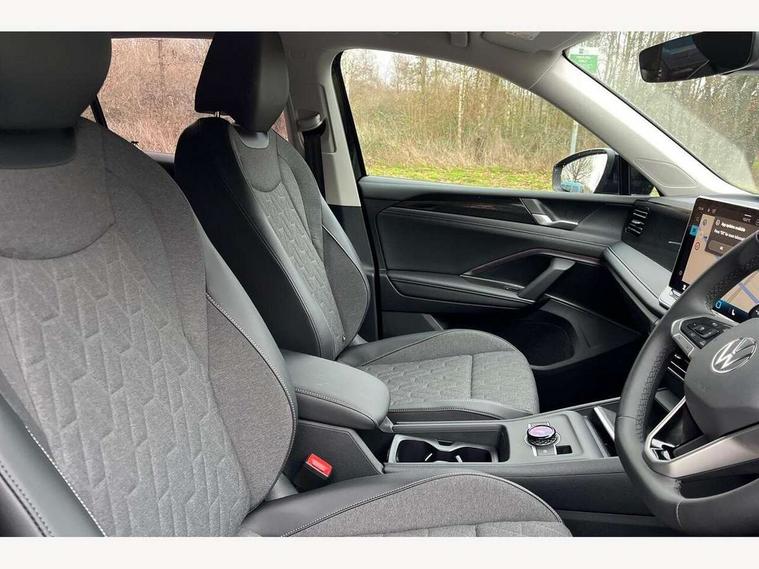 Adaptive cruise control (ACC), Advanced driver attention and drowsiness monitor, Bluetooth mobile phone interface, Car2X technology, Digital Cockpit Pro - 10.25" high resolution dash display screen with customisable menus and information, Dynamic road sign display, E-Sim card for online connectivity, eCall emergency call service, Front Assist - Autonomous emergency braking with pedestrian and cyclist monitoring, Lane change system, Side assist, Rear traffic alert and Exit warning system, Lane keeping system Lane Assist, Oncoming vehicle braking when turning including swerve support, Park assistance plus with front and rear parking sensors, Power assisted steering with speed sensitive, Start/stop system with regenerative braking, Warning signal and warning light for front and rear seatbelts not fastened, Wireless App-Connect, Front wheel drive, Digital radio reception (DAB), Diversity antenna for FM reception, Auto dimming interior rear view mirror, Automatic headlight control system, Body coloured bumpers and air intake with chrome trim, Body coloured door handles, Body-coloured exterior mirror housings, Coming/leaving home lighting function, Heat insulating glass in side and rear windows, Heat insulating windshield, Heated rear window, High level 3rd brake light, Illuminated door handle recesses, Illuminated lightline between headlamps, Puddle lights and reverse activated passengers door mirror, Rain sensor windscreen wipers, Rear fog light on one side, reversing light on both sides, Rear side wing doors, Rear wiper, 12V outlet in center console rear and in luggage compartment, 12V socket in centre console, 3 bench rear seats in 2nd row, Air care climatronic 3 zone air conditioning system with rear air conditioning control panel, Carpet mats, front and rear, Ceramique headlining, Door and side trim panel in foam film and woven fabric, Front centre armrest, ISOFIX anchors for child seats on outer rear seats and front passenger seat compatible with i-Size, Mechanical rear seat release, Power adjustable lumbar support in front, Rear bench seat, split folding, longitudinally movable and folding with load-through hatch and centre armrest, Safety optimised front head restraints, Single front passenger seat, Sun visors with illuminated vanity mirrors, Three rear head restraints, Variable luggage compartment floor, Comfort package with park assist plus and Safelock - Tiguan, Design package - Tiguan Life/Match, 3 point seat belt for centre rear seats, 3 Point seat belts in front with pretensioners, 3 point seatbelts in outer rear with ECE label, Driver and front passenger airbag with front passenger airbag deactivation, Electronic parking brake with auto hold, Front and rear curtain airbags, Front and rear side airbags, Front centre airbag, Front disc brakes, Hill start assist, Manual child proof rear door locks, Rear disc brakes, Two tone horn, Warning triangle, Soul instrument panel,