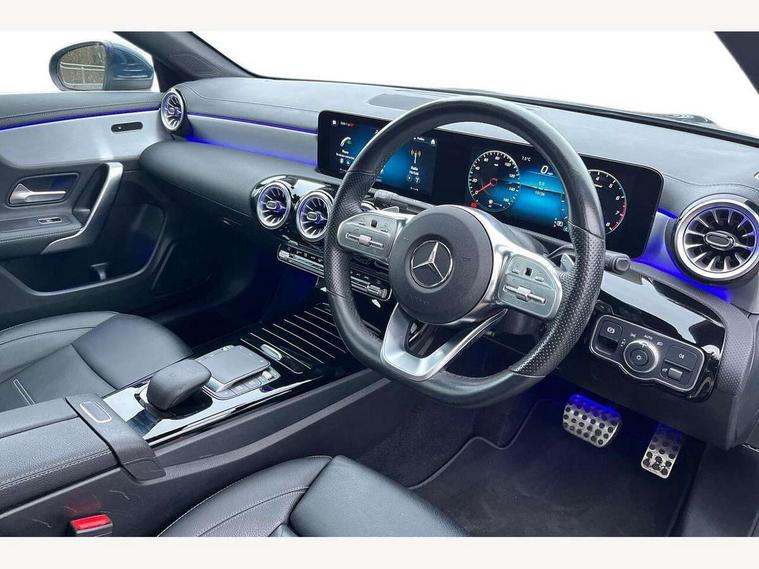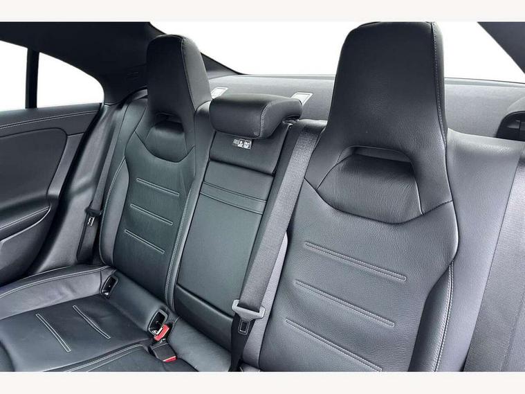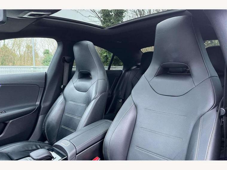 10.25 inch Instrument display with digital cockpit, 10.25 inch touchscreen central media display, Attention assist - Monitors steering behaviour and long journey fatigue, Bluetooth connection, Car wash mode, DYNAMIC SELECT with a choice of driving modes (ECO, Comfort, Sport and Individual), ECO start/stop function, Fluid level warning indicator for fuel, oil, coolant and washer fluid, Hard-disk navigation, Hey Mercedes Voice activation, Lamp failure indicator, Mercedes me connect including emergency call system, accident recovery, breakdown and maintenance management, Mercedes me remote services, Outside temperature gauge, Owners manual and service booklet in English, Pre-installation of private car share, Preinstallation for Mercedes Benz link, Radio aerial integrated into front and rear windshields, Service indicator (ASSYST), Smartphone integration with Apple CarPlay and Android auto, Traffic sign assist, Trip computer in multifunction display with current consumption indicator, 7G-DCT 7 speed automatic transmission, Lowered comfort suspension, Rear axle multi-link, DAB digital radio tuner, MBUX multimedia system with DAB digital radio and touchpad including satellite navigation, Mid-range sound system, USB (type C) ports (2) in stowage compartment and 1 in front of centre console, Adaptive brake lights, AMG body styling with AMG front apron and rear apron and visible exhaust tailpipe in chrome trim elements, AMG bodystyling side skirts, Auto headlights, Body colour bumpers, Body colour door handles, Chrome beltline strips, Chrome weather strip, Diamond radiator grille pins in chrome with silver painted louvres and chrome insert, Electric panoramic sliding sunroof, Electric windows, Electrically adjustable and heated door mirrors with integrated LED indicators, Exhaust system with 2 Visible tailpipe trim elements and rear apron with trim in chrome, Headlamp assist automatic headlamp activation, Heated glass rear windscreen + timer control, High level LED third brake light, Integrated LED daytime running lights, Interior mirror with black reading lamps and frameless, LED tail lamp, Multibeam LED headlamps with adaptive highbeam assist plus, Privacy glass with dark tinting on rear side windows and rear window, Rain sensing windscreen wipers with two sensitivity settings, Rear boot, Rear fog lamp, Rear side wing doors, Window line trim strip in chrome, 3 seat bench in 2nd row, 3 spoke flattened bottom nappa leather multifunction steering wheel with perforated leather in grip area, 40:20:40 split folding rear seat backrests, Air conditioning - Two zone thermotronic luxury automatic climate control with display, Air vents with surround in silver chrome, Automatic child seat recognition sensor, Black roof lining, Brushed stainless steel sports pedals with rubber studs, Floor mats with stitched AMG lettering, Front centre armrest with stowage, Galvanished gear shift paddles on steering wheel, Heated front seats, Illuminated front door sills with changeable cover, Illuminated glove compartment stowage, Interior lighting - 64 colour Ambient lighting, Luggage net on driver/front passenger seat backrest, Manually height and reach adjustable steering column, Rear armrest with two integral cup holders for drinks, Rear head restraints, Single front passenger seat, Sport seats with fixed head restraints, Stowage compartment in centre console with retractable cover, Sunvisors with illuminated vanity mirrors, Touchpad on center console, Twin front cupholders, Two outer rear seat isofix and top tether child seat fixing points, Keyless go pack - CLA, Light and sight pack - CLA, Mirror pack - CLA, Parking package - CLA, Seat comfort pack - CLA, Active bonnet pedestrain safety measure which detects an impact and raises bonnet by 65mm, Adaptive brake assist with hold function and hill start assist, Anti-lock braking system (ABS), Black seat belts, Bonnet with power domes, Brake pad wear warning indicator, Childproof locks manually operated for rear doors and electrically operated for rear power windows, Crash responsive emergency lighting, Driver and front passenger head and sidebags, Driver and front passenger windowbags, Drivers knee airbag, Dual stage driver and front passenger airbags, Electric parking brake, Electronic stability programme with acceleration skid control, ESP curve dynamic assist, Front and rear seatbelt reminder, Front passenger seat occupancy sensor, Perforated front brake discs, Three point rear seat belts, Tyre pressure monitoring system, Warning triangle and first aid kit, Remote central locking and crash sensor with emergency opening function, Urban guard vehicle protection system with immobiliser and interior protection, Light aluminium with longitudinal grain interior trim, 18" 5 twin spoke design alloy wheels painted in titanium grey with high sheen finish, Summer tyres, Tirefit tyre sealant kit,