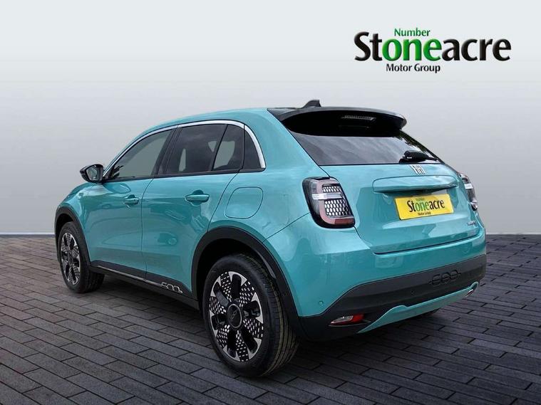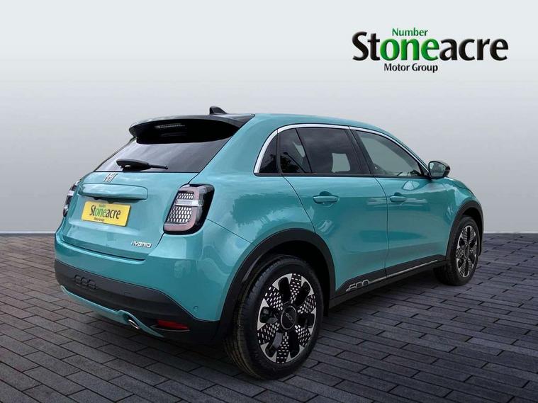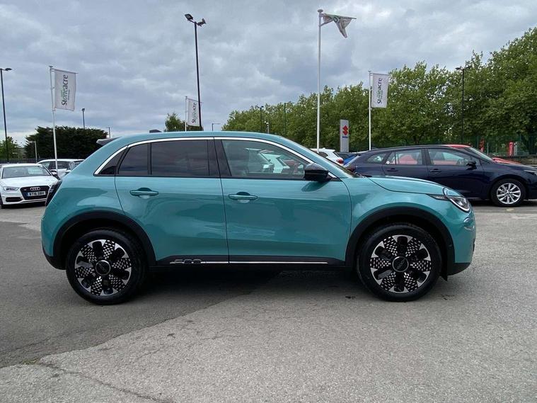 7" TFT digital cluster, Bluetooth connectivity, BSRF connectivity box, Connected services, Cruise control, Drowsy driver detection, Emergency E-call assist, Engine emission level default, GSR II step 1, Intelligent speed assist, Lane keeping assistant (LKA), Odometer, Power assist steering, Rain and dusk sensors, Rear parking sensors, Traffic sign recognition, Wireless apple car play/android Auto, Without drive mode selector, L2-AGM 12V battery, 1st Row USB type-A and USB type-C, 4 speaker audio system, Radio, Uconnect infotainment 10.25" touchscreen with DAB, All power windows express Up/Down, Auto dimming frameless rear view mirror, Automatic headlights, Body coloured door handles, Chrome day light openings, Electric adjustable door mirrors, Exterior chrome accents, Front and rear Chromed 600 logo, Gloss black finish B pillar, Gloss black shark fin antenna, Glossy black door mirrors, Heated windscreen wiper blade area, LED 3rd brake light, LED daytime running lights, LED Fog lamps with cornering function, LED front signature lighting, LED front turn indicators and position lights, LED rear lights, LED rear signature lighting, LED reflector headlamps, Matt black side skirts with 600 chromed logo, Rear bumper embossed 600 logo, Rear roof spoiler, Rear side wing doors, Rear wiper, 2 Spoke synthetic leather steering wheel with audio control, 3 rear headrests, 3 seat bench in 2nd row, 4 way manually adjustable passenger seat, 6 way manually adjustable drivers seat, Auxilliary 12V power socket, Body colour dashboard fascia, Chrome interior door handles, Dark metachrome dashboard ring, English handbook, Front centre armrest, Front headrests, Front passenger grab handle, Front seatback pockets, ISOFIX attachment on front passenger and rear passenger seats, Manual climate control, Metachrome central compartment bezel, Monogram fabric upholstery, Paddle shifts, Partial body cover for shipment, Predisposal for accessory upgrade to default tunnel pad cover (dedicated prnd bezel), Rear seat 40/60 split, Single front passenger seat, Smart 15L storage central tunnel with tunnel pad cover, Sunvisor label ciao Fiat, Sunvisors with vanity mirrors, 3x3 point rear seatbelts, 6 airbags, ABS, Autonomous Emergency Brake (AEB) & Vulnerable Road User (VRU) Protection, Child locks on rear doors, Electronic parking brake with auto hold, ESC (Electronic Stability Control), Front passenger airbag deactivation, Seatbelt reminder and pretensioners for all seats, Anti-theft volumetric alarm, Anti-theft wheel bolts, Keyless Go, 17" Diamond cut alloy wheels, Fix and go puncture repair kit,