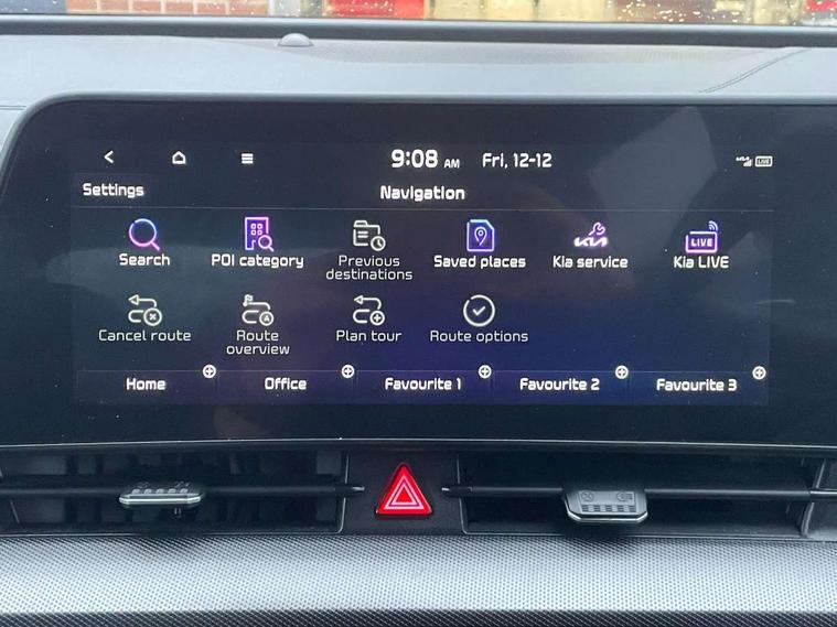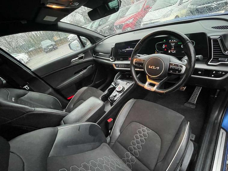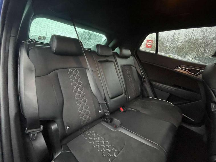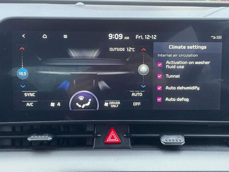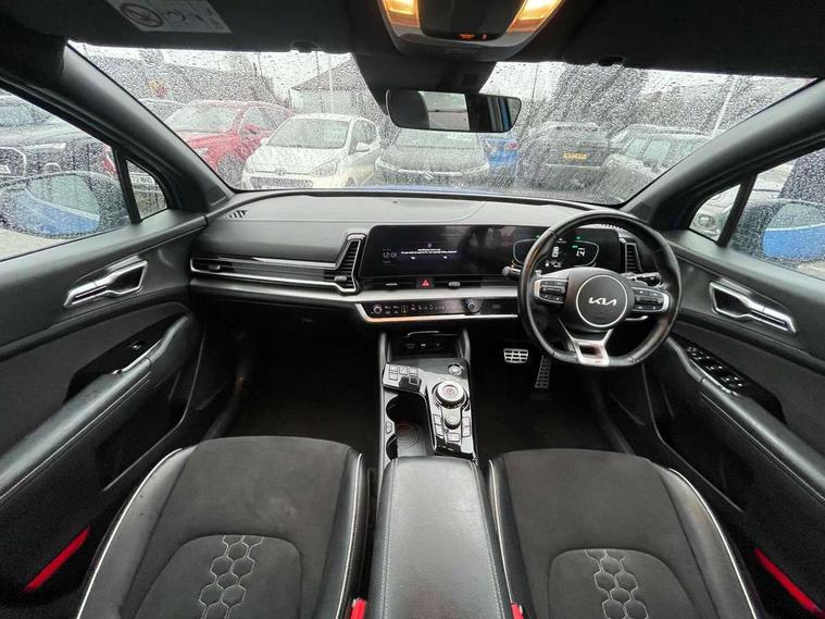 12.3" Display with navigation, 4.2" supervision colour cluster display, Apple car play/Android Auto with voice control, Drive mode selector, E-call, Forward collision avoidance assist (FCA) - city/pedestrian/cyclist/junction covering, Front and rear parking sensors, Highway Driving Assist (HDA), Intelligent speed limit assist, Kia Connect (UVO), Lane Following Assist (LFA), Lane keep assist, Low washer fluid warning, Rear view monitor, Reversing camera system integrated into centre fascia screen, Smart cruise control with stop and go functionality, Speed sensitive power steering, Trip computer, Windscreen washer level indicator, Intelligent Stop and Go, 6 speaker audio system, Bluetooth audio streaming, DAB Radio with MP3, Rear USB port, Steering wheel mounted audio controls, USB C type charging ports on centre console, USB C type charging ports on side of front seats, USB port for connection of a media device, All round electric windows with drivers and front passenger auto up/down function, Automatic headlight control system, Automatic window defogger, Backlite glass heated with timer, Body colour and black bumper with silver accents, Body colour exterior door handles, Body colour radiator upper garnish and door garnish, Electrically adjustable/heated/folding door mirrors with LED indicators, Front and rear skid plate - chrome, Gloss black door mirrors, Gloss black radiator grille, Gloss black side sill and wheel arch body mouldings, Glossy black roof rack, High beam assist, Interior electrochromic mirror, LED daytime running lights, LED front fog lamps, LED headlamps (low and high beam - MFR type), LED High mounted stop light, LED rear combination lamp, Rain sensing wipers with aero blades, Rear fog lamp, Rear privacy glass, Rear side wing doors, Rear spoiler, Rear wiper, Satin finished beltline, Silver coloured inserts to bumpers, Tinted rear glass, Trailer stability assist, 12V power socket in front centre fascia and luggage compartment, 2nd row personal lamps, 3 seat bench in 2nd row, 3 x passenger assist grips, 40/20/40 split folding rear seat, All-round height adjustable headrests, Black headlining, Centre console storage box, Cupholders in rear armrest, D-Shaped sports leather steering wheel and perforated inserts with GT-Line logo, Door courtesy lamps, Drink holder at centre armrest, Driver and front passenger side sunvisors with illuminated vanity mirrors, Driver's seat manual height adjust, Drivers seat power lumbar support, Front and rear door storage, Front seat and rear pockets, Front/rear centre armrests, Gear shift indicator, Glovebox illumination, Heated front seats, Heated steering wheel, Interior door lock/unlock function, ISOFIX Child seat top tethers and anchor fixings outer rear seats, Luggage area light, Luggage area load cover, Luggage net hooks, Metal paint interior door handles, Overhead console lamp, Paddle shift controls, Rear cabin light, Rear coat hooks, Single front passenger seat, Sports pedals, Suede leather upholstery, Three zone climate control, Tilt/telescopic adjustable steering wheel, Ventilation ducts to rear compartment, Active front headrests, All round 3-point seatbelts, Anti-lock braking system (ABS), Dual front side airbags, Dual horn, Electronic parking brake, Electronic stability control with downhill brake control, Front passenger airbag cut-off switch, Front seatbelt pretensioners + load limiters, Height adjustable front seatbelts, Hill start assist control (HAC), Impact sensing auto door unlocking, Multi collision brake assist, Rear door child safety locks, Rear seat alert system, Traction control, Twin curtain airbags, Twin front airbags, Tyre pressure monitoring system, Advanced anti-theft system including immobiliser and alarm, Door deadlocks, Engine Start/Stop Button with Smart Entry System, Locking wheel nuts, Speed sensitive auto door locking, Visible vehicle identification number, Aluminium pattern finish centre fascia and door garnish, 19" GT-Line alloy wheels, Tyre mobility kit,