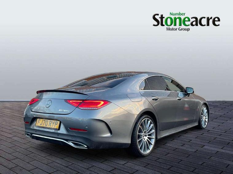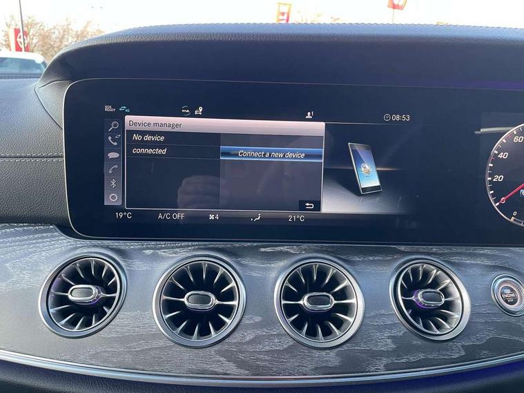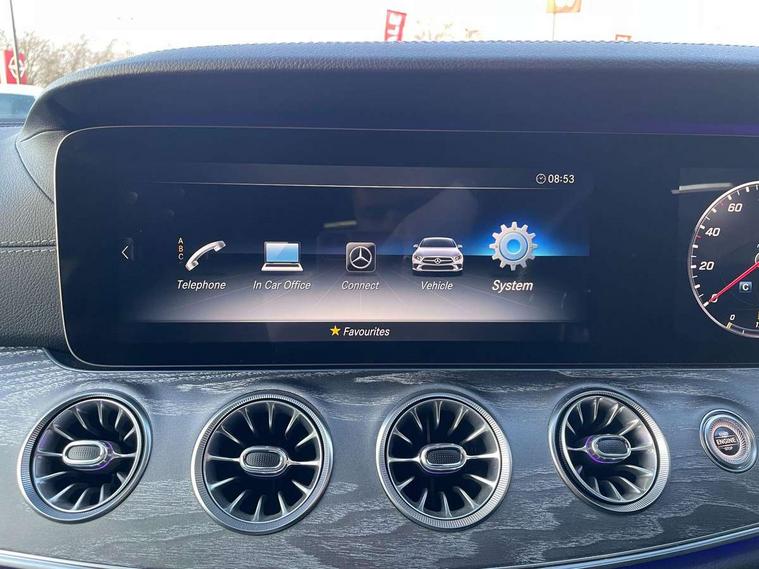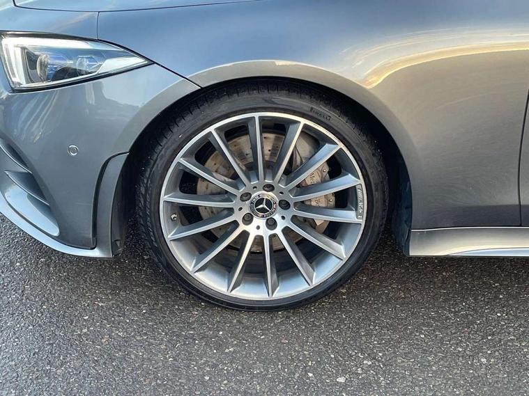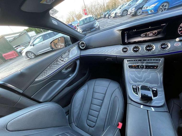 360 camera with remote parking assist, Active park assist, Analogue clock on centre console, Attention assist, Bluetooth interface for hands free telephone, Brake wear warning light, Cockpit display 12.3" widescreen digital instrument cluster, Collision prevention assist plus, COMAND HDD navigation with 12.3" central display, Cruise control + speed limiter, DYNAMIC SELECT with a choice of driving modes (ECO, Comfort, Sport, Sport+ and Individual), ECO start/stop function, Front and rear parking sensors, Mercedes connect me, Outside temperature gauge, Remote boot release, Service indicator (ASSYST), Smartphone integration with Apple CarPlay and Android auto, Status display for rear seat belts in instrument cluster, Touchpad with control wheel, Traffic sign assist, Trip computer in multifunction display showing current fuel consumption, Wireless charging, WLAN with Wi-Fi hotspot on on board access, 25 litre AdBlue tank, 66 litre fuel tank, Agility control lowered suspension with selective damping system, Diesel particulate filter, Incorrect fuelling protection, 2 USB ports in centre console, Burmester surround sound system with 13 speakers, DAB Digital radio, Adaptive brake lights, AMG bodystyling front and rear aprons and side skirts in polished aluminium, Body colour door mirrors, Body coloured bumpers, Chrome door handles, Dark privacy glass from B-pillar backwards, Electric adjustable heated door mirrors, Electric front/rear windows with one touch opening and closing, including obstruction sensors, Electric sliding sunroof, Green tinted glass, Heated windscreen wash system, LED daytime running lights, LED rear lights, Lip spoiler, Multi beam intelligent LED headlight system with adaptive high beam assist plus and ultra range high beam, Polished aluminium waistline, Pre-installation for roof rail systems, Radiator grille with integral star and 1 louvre in matt iridium silver with chrome trim, Radio aerial in rear window, Rain sensor windscreen wipers, Rain sensor with automatic headlight activation, Side windows surround in polished aluminium, Sports tyres with noise reducing absorber, Visible twin exhaust tailpipe in bumper, Welcome lighting, 12V Accessory socket in centre console, 3 rear seats, 3 spoke flat bottom multi function steering wheel trimmed in black nappa leather with touch control buttons, 40:20:40 split folding rear seats, AMG brushed stainless steel sports pedals with aluminium rubber studs, AMG floormats, Artico man-made leather upper dashboard and beltlines with contrast stitching, Auto Mercedes-Benz child seat recognition sensor, Automatic two zone climate control, Black roof liner, Centre armrest and door handle illumination, Chrome door pins, Courtesy lights in rear grab handles with reading light functionality, Front and rear door pockets, Front centre armrest with storage compartment, Glasses compartment in overhead control panel, Head restraints for driver and front passenger (four-way adjustability) and in rear (two-way), Heated front seats, Height/reach adjust steering wheel, Interior lighting - 64 colour Ambient lighting, Interior rear light/integral reading lights, Leather gear knob, Leather upholstery, Lockable/illuminated air conditioned glovebox, Rear armrest with storage + cupholders, Seat occupancy sensor for front passenger seat, Steering wheel gearshift paddles, Steering wheel touch control buttons for audio and onboard settings, Storage compartment under load area floor, Sunvisors with illuminated vanity mirrors, Keyless Go comfort package - CLS, Memory pack - CLS, Mirror pack - CLS, Seat Comfort Pack - CLS, Stowage Pack - CLS, 3 point seatbelts, 3x3 point rear seat belts, ABS, Active bonnet pedestrian safety measure which detects an impact and raises bonnet, Adaptive brake system with HOLD function and brake drying in the wet, Airbags - driver and front passenger, with extended adaptivity for front passenger airbag, Airbags - sidebag for driver and front passenger with combined thorax/pelvis bag, Brake calipers with Mercedes-Benz lettering + perforated brake discs, Childproof locks manually operated for rear doors and electrically operated for rear power windows, Drivers knee airbag, Electronic parking brake, Electronic Stability Programme, Front and rear curtain airbags, Hill start assist, ISOFIX child seat attachment points two outer rear seats, Pre-Safe anticipatory safety system, Rear seatbelt warning indicator, Tyre pressure monitoring system, Warning triangle and first aid kit, Window airbags, Alarm system/interior protection/immobiliser, Central locking with interior switch, automatic locking and crash sensor with emergency opening function, Chrome surround in electric key, Locking wheel bolts, Remote central locking, Open pore grey ash wood centre console, Open pore grey ash wood dashboard and door trim, 20" Multi spoke design alloy wheels painted titanium grey with a high sheen finish includes run flat tyre - RVO,