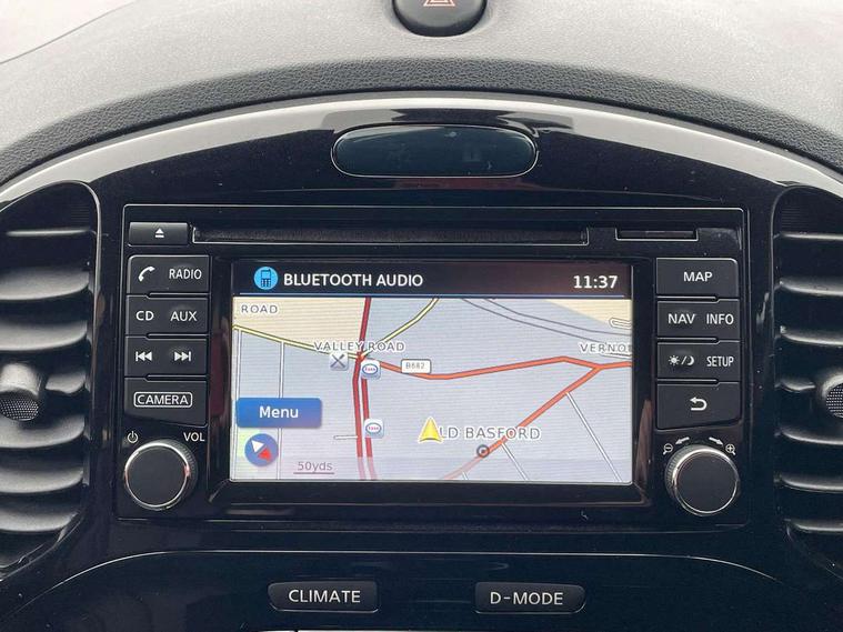 Around View Monitor, Blind spot monitoring, Bluetooth system, Colour rear view camera, Cruise control + speed limiter, Electric speed sensitive power steering, Lane departure warning system, Moving object detection, Nissan connect sat nav system, Push button starter, Service interval indicator, Trip computer, 6 speakers, Aux input, DAB Digital radio, Steering wheel mounted audio controls, Stereo radio/CD player and MP3 facility, USB port, 2 speed wipers+variable intermittent wipe, Automatic headlights, Body colour bumpers, Body colour door handles, Dusk sensor, Electric door mirrors, Electric folding door mirrors, Electric front/rear windows, Front fog lights, Heated door mirrors, LED daytime running lights, Privacy glass, Rain sensor, Rear wiper, 12V socket, 60/40 split folding rear seat, Climate control, Front armrest, Front cupholders x 2, Front door pockets with bottle holders, Front head restraints, Front seat belt pre-tensioners with load limiters, Gear shift indicator, Glovebox, Heated front seats, Height adjustable driver's seat, Internal chrome door handles, Isofix child seat preparation, Leather steering wheel and gear knob, Leather upholstery, Luggage area under floor storage box, Map reading lamp, Passenger seat back pocket, Pollen filter, Rear headrests, Rear tonneau cover integrated into tailgate, Sports seats, Steering wheel rake adjustment, ABS + EBD + EBA, Child locks on rear doors, Driver and passenger airbags, Driver and passenger side airbags, ESP + traction control, Front and rear curtain airbags, Height adjustable front seatbelts, Passenger airbag deactivate switch, Three 3 point rear seatbelts, Tyre pressure monitoring system, VDC Dynamic Vehicle Control, Warning triangle and first aid kit, Alarm, Immobiliser, Intelligent Key, Remote central locking, 17" Urban alloy wheels, Tyre repair kit,