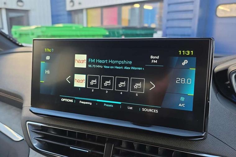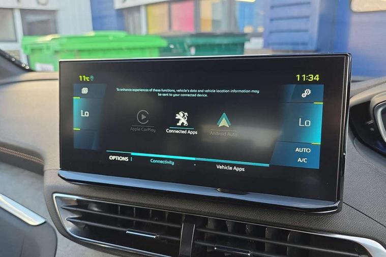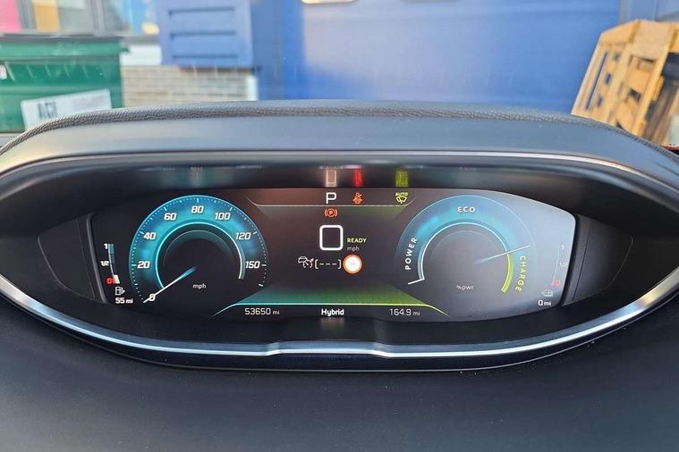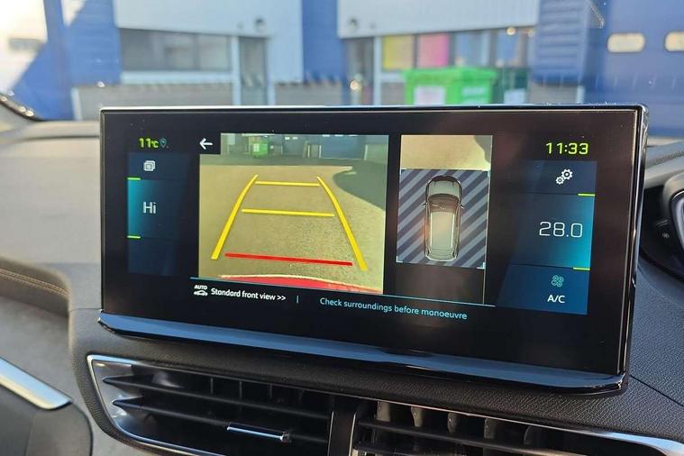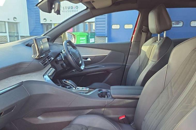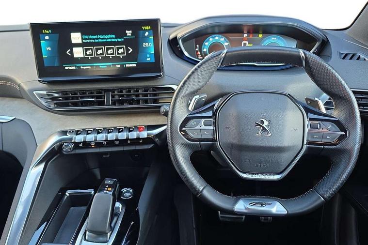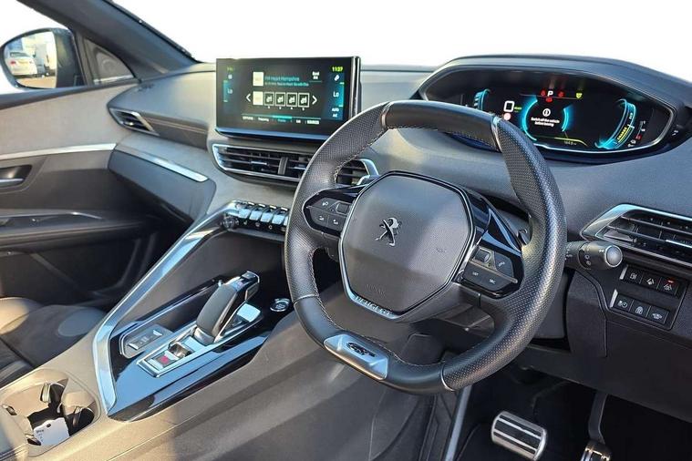 3D connected navigation with 10" HD touchscreen, Bluetooth telephone facility, Drive mode selector (Electric, Hybrid, Sport, 4WD) & Hill Assist Descent Control, Driving Time Warning (DAA1), Emergency services call system, Extended traffic sign recognition, Exterior temperature indicator with ice warning, Front and rear parking sensors, Mirror screen with mirror link, apple carplay and android auto, Multi function trip computer, Passive blind spot monitoring without Steering correction, PEUGEOT i-Cockpit with 10" high definition capacitive touchscreen, Peugeot i-cockpit with compact multi-function sports steering wheel, PEUGEOT i-Cockpit with configurable 12.3" Head-up digital instrument panel, PEUGEOT SOS and assistance, Rear passenger USB charging sockets (x2) (type A), Speed limit recognition and recommendation, Visio park assist 360 with colour camera system + automatic parking assist, Voice recognition, Deferred charging option, configurable in car or via My PEUGEOT App, Dynamic stability control and electronic anti-skid system, Mode 3 type 2 cable for wallbox charging, 6 speakers radio with mp3 compatible, DAB Digital radio, USB socket, Auto self levelling headlights, Automatic hazard light activation upon heavy brake application, Automatic triggered rear windscreen wiper in reverse gear, Black with chrome detailed front wing trim, Body colour door handles, Body colour rear roof spoiler with stainless steel edging trim, Body protectors (bottom of front and rear bumpers + wheel arches + protection at bottom of doors) in black, Dark tinted rear side windows + tailgate window, Diamond Black door mirror shells, Door mirror mounted LED courtesy floor lighting, Electric folding door mirrors with exterior courtesy LED lighting, Electric operated/heated door mirrors, Fog Mode, Front windscreen wiper with magic wash cleaning system, Full LED headlights with LED fog lights with static cornering function, Gloss black B and C pillar and aerodynamic deflector trim, Gloss black front bumper air scoops, Gloss black rear cluster connecting strip, Gloss black windscreen trim, Headlights left on audible warning, Heated rear windscreen with integrated antenna, HYBRID emblem on front wings and tailgate, LED daytime running lights, LED front indicator, LED rear number plate lighting, LED side indicator lights integrated into door mirrors, LED third brake light, One touch electric front/rear windows with pinch protection, Rear LED Peugeot signature 'Claw Effect' lights, Rear side wing doors, Stainless steel roof arches, Twin exhaust tailpipe, 1/3 to 2/3 split folding rear seats, 12V Sockets in dashboard, rear cabin and load area, 2 cupholders in front centre console, 2 cupholders in rear armrest, 2 x Rear reading spotlights, 2x Rear coat hooks, 3x Isofix child seat fittings in the front passenger and outer rear seats, 4 Grab handles retractable and damped, Aikinite stitching in armrest, gear lever and dashboard facia, Aluminium pedals, Blue ambient lighting for connecting zone, Blue ambient lighting to front door panels, central storage and cupholders, Blue ambient lighting to headup instrument panel, Cabin pre-conditioning, Centre front armrest with butterfly wing opening and illuminated storage compartment, Dual zone automatic climate control, Electric power steering with reach and rake adjustable steering column, Fixed boot floor with access to the charging cable storage box, Flocked front door pocket interior with blue ambient lighting, Flocked glovebox interior, Focal tweeter speaker grilles in Belem bronze metal effect finish, Foldable front passenger seat with picnic table, Footwell illumination, Front interior light with 2 reading spotlights and rear interior light with timer, Front passenger seat manual adjustment (longitudinal and back rest angle), Front seat back map pockets, Gear shift indicator, Illuminated glovebox, Individual left and right controls in boot for seat folding, LED interior lighting in storage spaces and load area, LED roof interior lighting, Mistral floor mats with Aikinite contrast stitching, Mistral full grain perforated leather steering wheel with aikinite stitch detail and satin chrome 'GT' emblem, Rear bench seat with central armrest and ski hatch, Rear centre console ventilation system, Roof lining - Mistral black, Satin chrome dashboard trim, Satin chrome digital instrument panel and touchscreen trim, Satin chrome front door panel recess trim, Satin chrome interior door handles, Satin chrome scorpion's tail and toggle switch trim, Seatbelt not fastened audible and visual alert for front seats, Seatbelt unfastened on the move audible and visual alert for front and rear seats, Sunvisors with illuminated vanity mirrors, Drive assist plus pack - 3008, Driver sport pack - 3008 Auto, Safety plus pack - 3008 hybrid, Visibility pack - 3008 PHEV, 3x Rear three-point retractable seatbelts with force limiters in the outer rear seats, ABS (Anti-lock Braking System) with EBD (Electronic Brakeforce Distribution) and EBA (Emergency Braking Assistance), Acoustic vehicle alerting system, Adaptive driver and front passenger airbags with passenger airbag deactivation function, Driver and front passenger side airbags, Electric child locking functionality on rear windows and doors, Electric parking brake, Front and rear curtain airbags, Front optimised safety headrests and 3 x rear retractable headrests with height adjustable, Front three point retractable seatbelts with pre tensioners and force limiters, Front ventilated disc brakes and rear disc brakes, Hill start assist, Two tone horn, Automatic door locking when moving off, Electronic immobiliser, key operated exterior door lock from the left hand door, Perimetric and volumetric alarm with lift and tilt sensor, Peugeot Open and Go System, Remote control central locking with two plip keys, Puncture repair kit including compressor, sealant cartridge and towing eye,