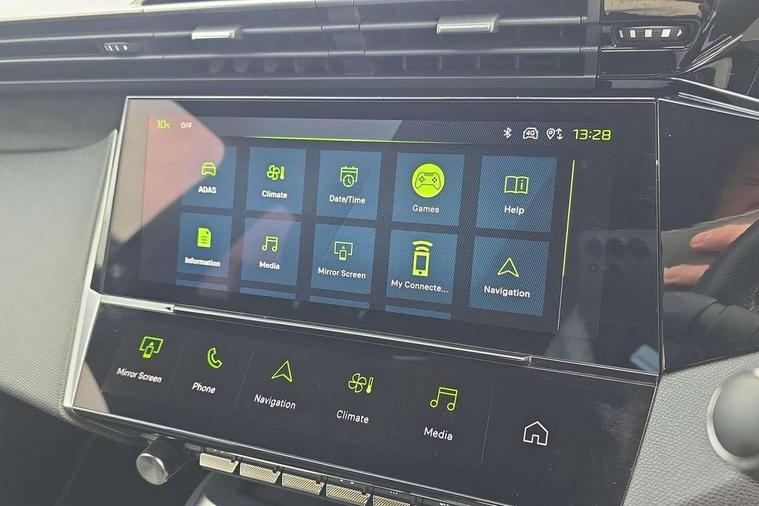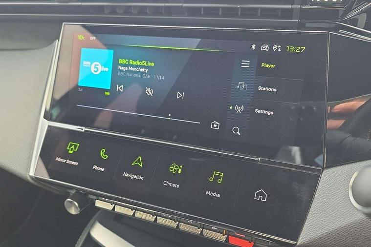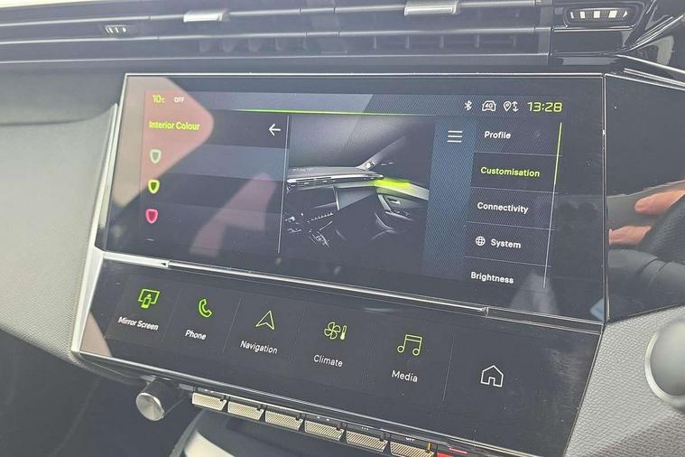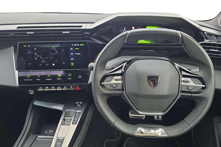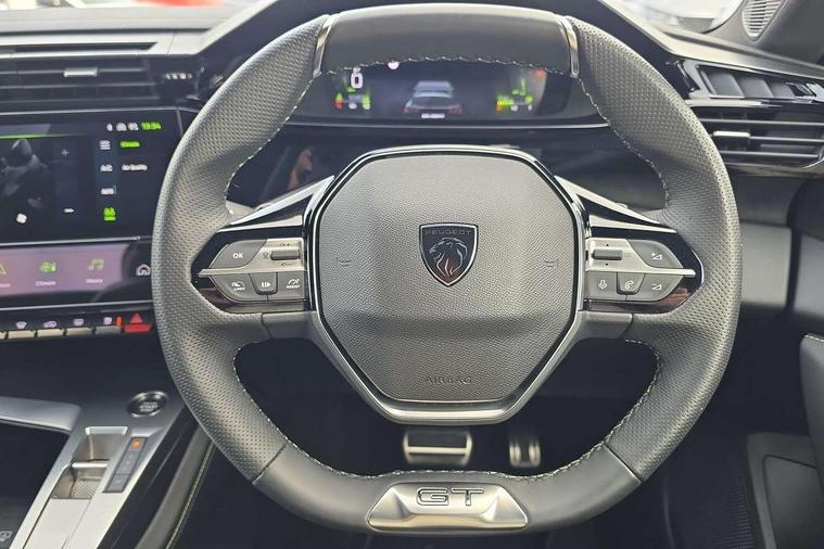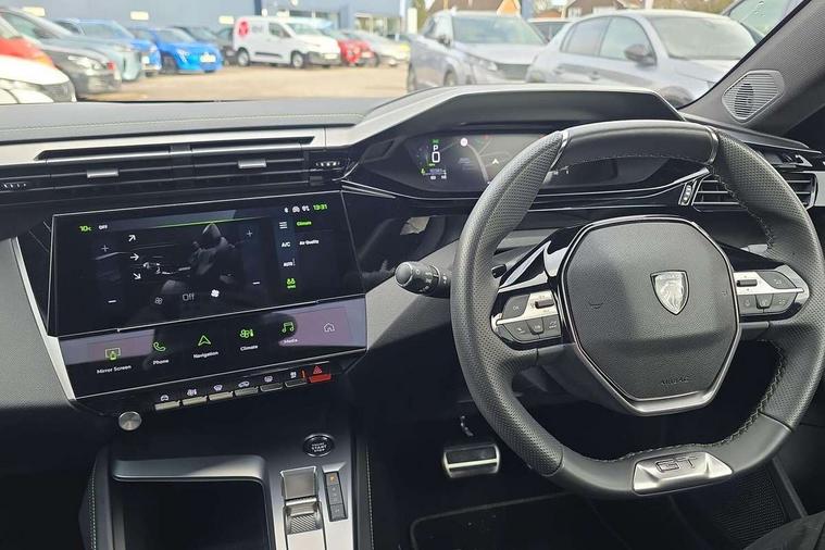Bluetooth telephone facility, Compact drive selector, Driver attention warning, Emergency call service, Exterior temperature indicator with ice warning, Front and rear parking sensors, Intelligent speed adaptation, Lane keep assist, Mirror screen with wireless apple carplay and android auto, Multi driving mode selector - Eco / Normal / Sport mode selector, Multi function trip computer, Peugeot connect advanced with connected 3D navigation, PEUGEOT i-Cockpit - compact steering wheel, 10" HD colour touchscreen with configurable 3D headup instrument panel, PEUGEOT SOS and assistance, Service interval indicator, Speed limit recognition and recommendation, Sport pedals with foot rest, DAB Digital radio, Peugeot customisable iToggles, Voice recognition for radio, navigation and telephony features, 2 X LED rear number plate lights, Acoustic and tinted windscreen, Acoustic laminated front side windows, Automatic hazard light activation upon heavy brake application, Automatic triggered rear windscreen wiper in reverse gear, Bi-tone roof rails, Body colour door handles, Body colour rear roof spoiler, Dark chrome chequered radiator grille, Dark tinted rear side and tailgate windows, Electric operated/heated door mirrors, Extended lower body sills to the front and side, Frameless electrochrome rear view mirror, Front and rear electric windows with one touch/anti pinch, Full LED matrix headlights with automatic adjustment, Gloss black finish B pillar, Gloss black rear cluster connecting strip, GT model designation badging on tailgate, High beam assist, LED 3rd brake light, LED side indicator lights integrated into door mirrors, Lion emblem badging on front wings, Model designation badges on front and rear, Nera black door mirrors, Peugeot aluminium door sills, Peugeot signature LED daytime running lights, Power folding door mirrors, Rear full LED 3D Peugeot new claw effect lights with sequential welcome sequence upon unlocking the vehicle, Rear lower bumper gloss black diffuser effect trim, Rear reversing lights, Rear side wing doors, Tailgate with heated rear windscreen and wiper blade, Twin exhaust pipes with chrome surround, 12V socket, 2 front USB socket including 1 USB type c, 3 seat bench in 2nd row, 40/20/40 flat folding rear seats, 8 Colour personalisable ambient lighting, Automatic air conditioning with AQS 3, Carpet mats, Central front armrest with storage compartment, Dynamic front seats, Electric power steering with reach and rake adjustable steering column, Front central console with two cup holders, LED Glovebox light, Manual driving mode - change gear manually via steering mounted paddles, Multifunction full grain leather steering wheel with admite green stitching & GT badging, Piano keys gloss black plated toggle switches to access main functions of the vehicle, Rear centre armrest with cupholders, Roof lining - Mistral black, Seatbelt unfastened on the move audible and visual alert for front and rear seats, Single front passenger seat, Sunvisor with concealable mirrors and LED lighting, Twin USB charging ports in the rear (Type C), Two position boot floor, Driver sport pack with sports power steering - 308, Visibility pack with automatic magic wash windscreen wipers - 308, 2x Isofix child seat fitting on outer rear seats, 3x Rear three-point retractable seatbelts with force limiters in the outer rear seats, ABS + EBD + EBA, Active safety brake with night function/cyclists/pedestrians, Adaptive driver and front passenger airbags with passenger airbag deactivation function, Automatic post collision braking, Child locks on rear doors, Driver/front passenger side airbags, Electronic parking brake, ESP, Front and rear curtain airbags, Front optimised safety headrests and rear retractable headrests (x3), height adjustable, Front three point retractable seatbelts with force limiters, Front/rear disc brakes, Hill start assist, Tyre pressure sensor, Automatic door locking when moving off, Deadlocking system, Electronic code immobiliser, Locking wheel nuts, PEUGEOT Open and Go keyless entry system, Thatcham cat. 1 alarm with anti lift sensor, Tyre repair kit,