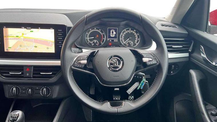 Amundsen satellite navigation with 9.2" glass colour touchscreen display, web radio, voice control and traffic sign recognition, Bluetooth system, E-call, Front assist system, Gesture control, PAS, Service indicator, Speed limiter, Wireless SmartLink for apple car play, android auto and mirrorlink, 8 Speakers, Auxiliary input socket, DAB Digital radio, Body colour bumpers, Body colour door mirrors and handles, Chrome grille surround, Dimming rear view mirror with black surround, Electrically adjustable and heated door mirrors, Front and rear electric windows, Headlight range control, Heated rear window, LED rear lights - low functionality, LED third brake light, Light sensors, Privacy glass, Rain sensor, Rear fog lights, Rear side wing doors, Rear wiper, 12V Accessory socket in centre console, 3 seat bench in 2nd row, Chrome inner door handles, Cloth upholstery, Front head restraints, Glove compartment with illumination, Height adjustable driver and front passenger seats - manual, Ice scraper, Isofix child seat fittings on outer rear seats, ISOFIX on front passenger seat, Manual lumbar support for front seats, Rake/reach adjustable steering wheel, Reading lights, Single front passenger seat, Sun visors with illumination on front passenger, Textile floor mats, Third rear headrest, Top tether for front passenger seat, Umbrella in driver's door, 3x3 point rear seatbelts, Airbags - driver and front passenger, ESP, Front passenger airbag deactivation switch, Front side airbags with curtain airbags, Hill hold control, Manual parking brake, Manual rear child locks, One tone horn, Rear disc brakes, Seatbelt reminder for driver an co-driver, Traction control, Tyre pressure monitor, Anti-theft alarm system with interior monitoring, backup horn, towing protection and remote central locking with SAFE system, Anti-theft wheel bolts, Electronic engine immobilizer, Silver haptic decorative insert on the dashboard with hot stamping in glossy black,