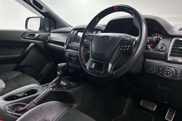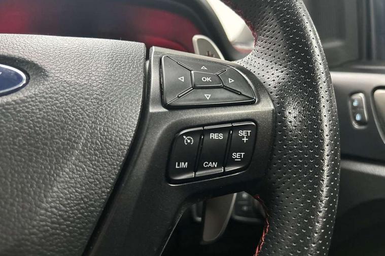 12.3" digital colour instrument cluster, Ford SYNC 3 with 8" TFT LCD touchscreen, App Link, andriod auto/apple carPlay, emergency assistance and navigation with Ford pass connect, Front and rear parking sensors, Hands free power tailgate, Lane keeping aid with lane departure warning, Power assist steering, Rear view camera, Selectable drive modes, 3-Pin Home charge cable (230V/16A Domestic socket), 3.7 kW monophase on board charger, Sports suspension, B&O premium audio system with 10 speakers and subwoofer, 2 USB ports, DAB radio/CD, Black roof rails, Exclusive paint, Large rear spoiler, LED daytime running lights, LED rear lights, Power folding heated door mirrors with puddle lights, Power front/rear windows with global close, Power opening panoramic roof, Quickclear heated windscreen, Rear privacy glass, Rear side wing doors, Rear wiper, Third brake light, 2nd row sliding seats with 60:40 split, Electronic automatic temperature control (EATC), Front and rear head restraints, Heated passenger and driver seats, Heated rear seats, Heated steering wheel, Partial premium touch Sensico with black cloth inserts and red stitching, Single front passenger seat, Driver assistance pack - Kuga with front camera system, Technology pack - Kuga with LED headlights, 3x3 point rear seatbelts, Electronic stability control (ESC) and ABS, Manual child proof rear door locks, Post collision braking, Pre collision assist with autonomous emergency braking, Red brake calipers, Keyless entry and Ford power start button (Keyless start),